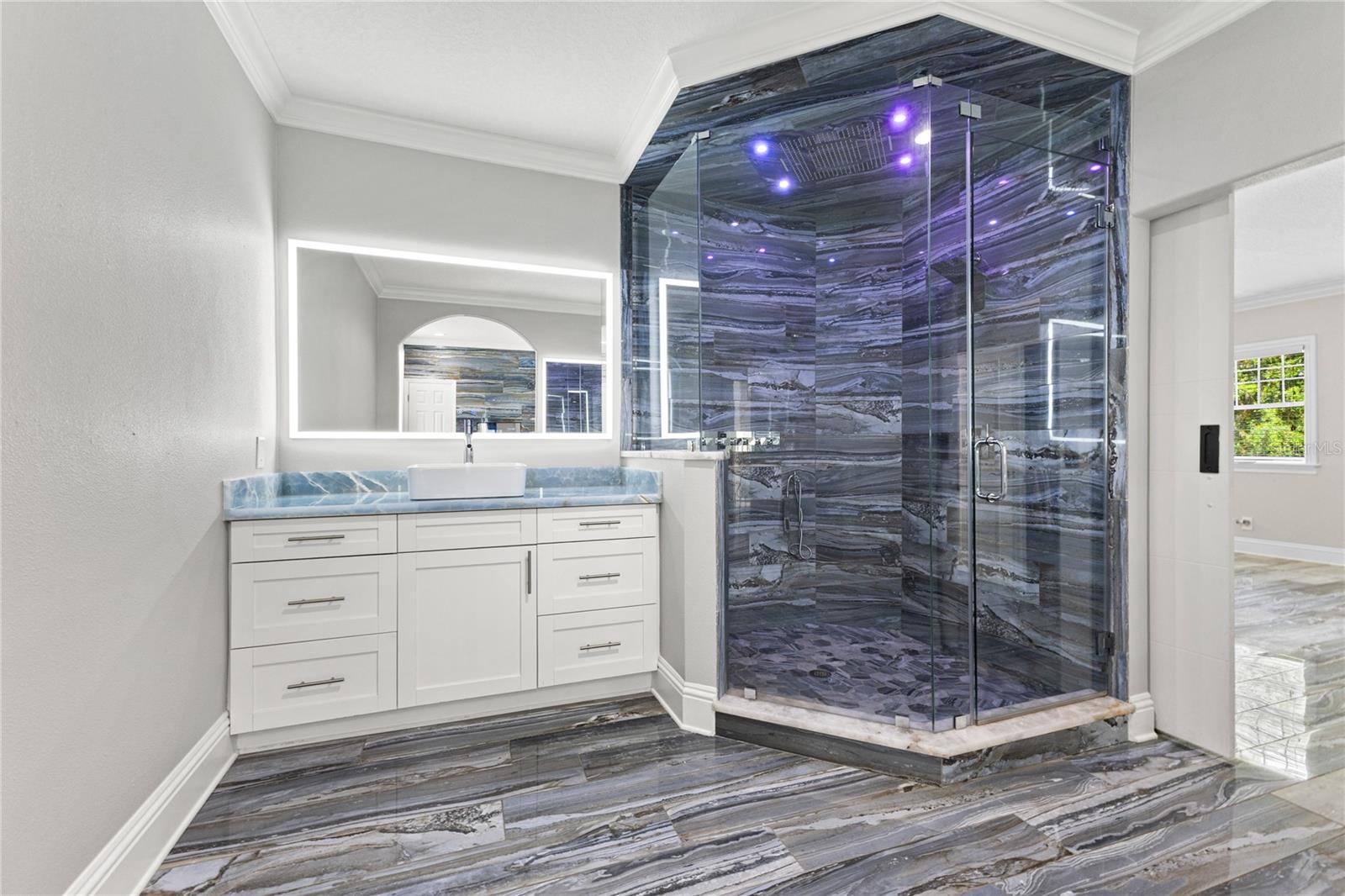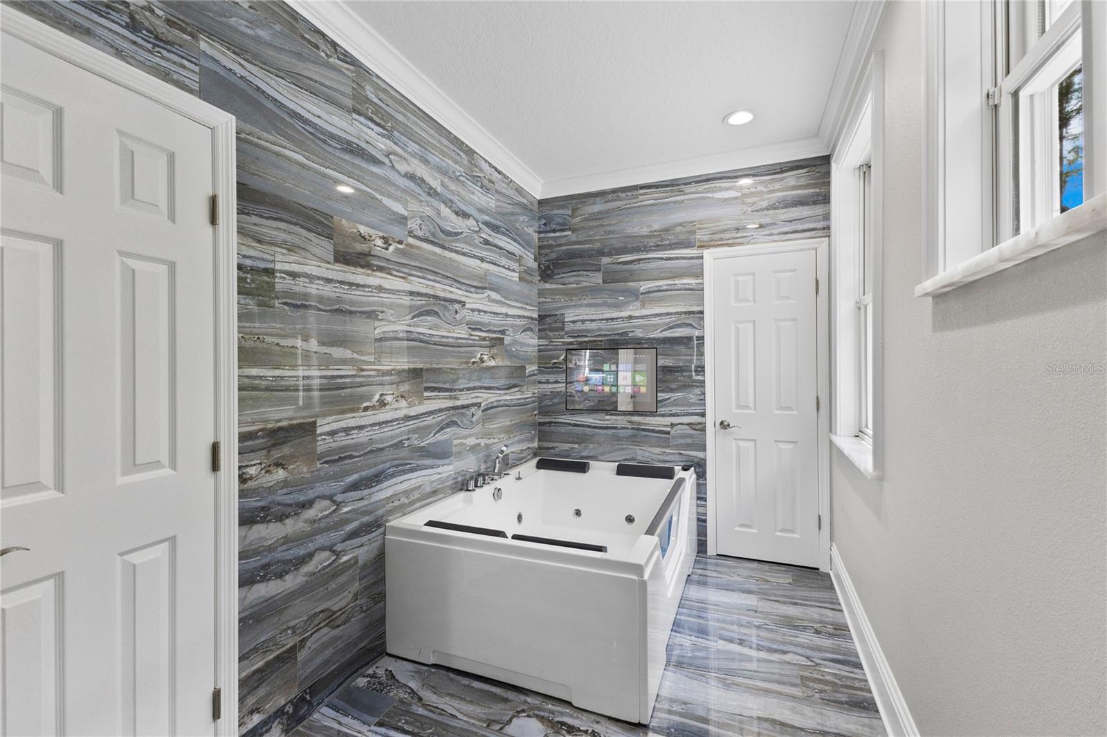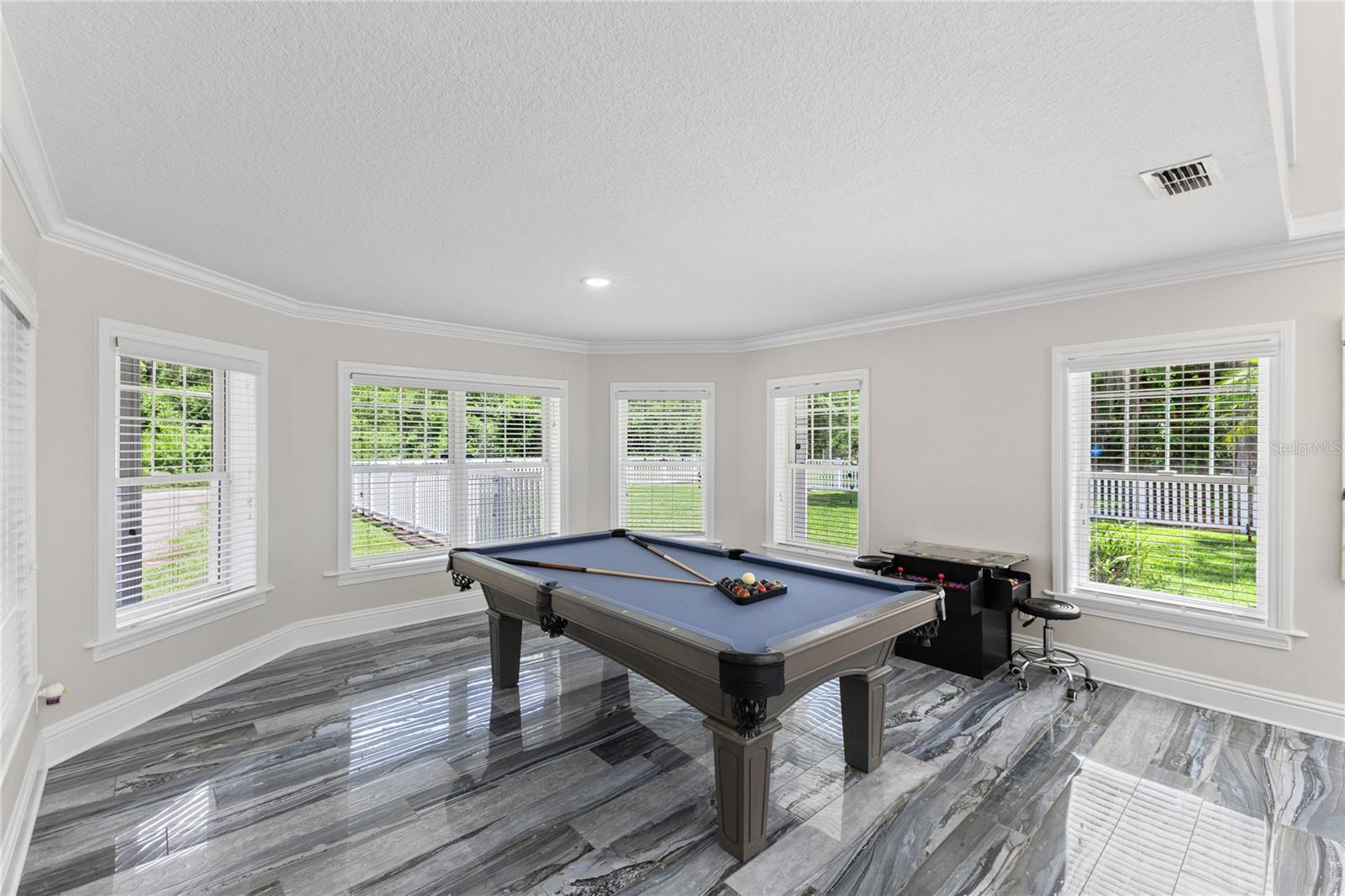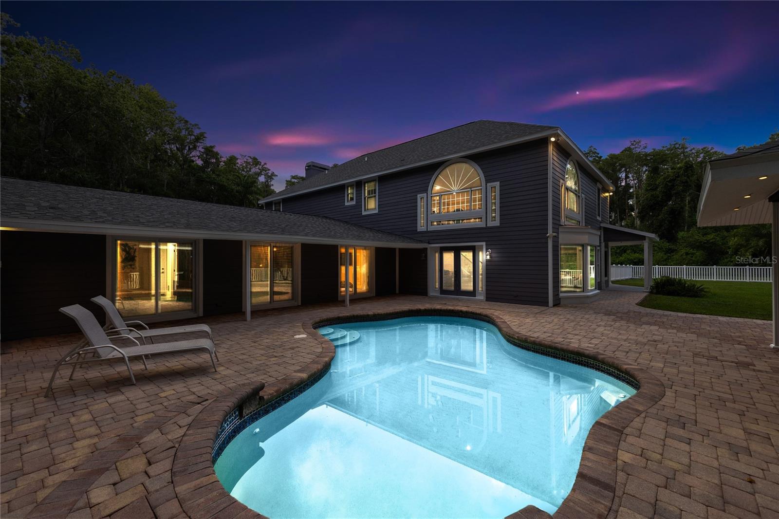 Welcome to 3663 Berger Rd in Lutz, FL – a hidden lakeside gem nestled on 2.36 private acres with direct access to Saddleback Lake, located in the highly sought-after Crenshaw Lakes neighborhood with no HOA or CDD. This beautifully updated 4-bedroom, 3.5 bath estate, offers 4,071 square feet of living space in a serene, tree-lined setting. Designed in a rare Contemporary Victorian style, this two-story residence exudes charm and character from the moment you arrive—complete with a wraparound front porch, second-story balcony off the primary suite, and a peaceful drive down a tucked-away road that feels like your own private retreat. Inside, you’ll find porcelain tile flooring, crown molding, soaring ceilings, and oversized windows that flood the home with natural light. The open-concept kitchen is anchored by a large island with onyx countertops and features a sleek, flush-mounted 350-gallon fish tank built right into the wall—an eye-catching feature that adds personality and style. All bathrooms have been fully upgraded with elegant onyx countertops and spa-inspired custom finishes throughout. The primary suite, located upstairs for added privacy, includes a custom walk-in closet, luxurious ensuite bath with a soaking tub and custom shower, and private balcony overlooking the peaceful backyard. A versatile bonus room upstairs offers the ideal space for a home office, gym, or playroom. Three additional bedrooms are located on the main level, along with a well-appointed laundry room for added convenience. Step outside to your own private oasis, featuring a spacious pool and patio area, along with a covered gazebo complete with a half bath and built-in bar—perfect for effortless entertaining. Follow the serene backyard path down to Saddleback Lake, where you can enjoy jet skiing, fishing, or simply relax and take in the peaceful water views. Additional highlights include a 3-car attached garage with epoxy flooring, a gated, private lot, and zoning for top-rated schools: Schwarzkopf Elementary, Martinez Middle, and Steinbrenner High School. All this, just minutes from shopping, dining, and major highways—offering the ideal balance of seclusion and convenience. Recent updates reflect the thoughtful care and investment poured into this home, including a new roof (2022), three newer AC units (2020), tankless water heater, and Culligan whole-home water filtration system. In 2020, the home also received porcelain tile flooring throughout, California Closet system in the primary suite, and fresh interior paint. More recent enhancements include a new energy-efficient pool pump (2024) and fresh exterior paint (2024). A security system with cameras offers added peace of mind—making this residence as functional and efficient as it is beautiful.