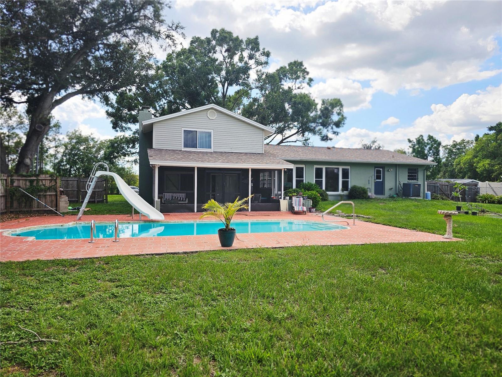 Back on the market! Welcome home to your waterfront oasis. Spend your days fishing, boating, jetskiing, or kayaking on beautiful Lake Brant. Perfect location less than a mile from a major hospital, shopping centers, and several dining options. This lovely 3 bedroom, 3 bathroom, split level home sits on over half of an acre canal front lot. As you walk through the front door you are welcomed by an open and airy great room floor plan that includes an updated kitchen with granite counter tops and wood look ceramic tile flooring that extends into the living and dining spaces. The laundry room is off of the kitchen and has a door that leads out to the lush backyard that boasts a huge firepit, in-ground swimming pool with slide, and a concrete boat/kayak launch. The massive den is located on the lower level of the home and has a full bathroom, wood burning stone fireplace, and sliding glass doors that lead out to the newly screened patio off of the pool. All 3 of the bedrooms are located on the upper level of the home. The master bedroom has a full bathroom and a walk-in closet. An additional full bathroom with tub/shower combo and separate sink with vanity is placed alongside the other two ample sized bedrooms. Bring your favorite water toys and enjoy soaking up the sun poolside or gather around the firepit and cozy up on cool evenings making smores as you admire the sparkling water views. This home is perfect for those who love the outdoors and waterfront Florida lifestyle!