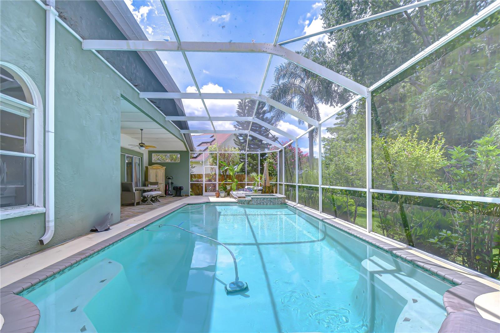Short Sale. Short Sale - Lender Approval Required! Tucked away on a quiet street in the coveted Villarosa neighborhood, this exceptional one-story home offers a rare combination of spacious living and serene natural beauty. Situated on a stunning pie-shaped premium conservation lot, the property delivers peaceful, tree-lined views and a level of privacy that’s hard to come by. With 2,907 square feet of thoughtfully designed living space, this 4-bedroom, 3-bath pool home with a 3-car garage has been crafted for comfort, elegance, and effortless entertaining. Notable updates include a newer roof (2021), A/C motor replaced in May 2024, a UV light for the HVAC system, and a generator pigtail set-up—providing enhanced efficiency, air quality, and peace of mind. From the moment you enter through the double glass front doors with a transom window above, natural light floods the interior, highlighting soaring ceilings, graceful archways, rounded corners, and a seamless, flowing floor plan. To the left of the foyer, the living/sitting room—currently used as an office—is surrounded by custom bookshelves. To the right, the formal dining room showcases refined crown molding, decorative columns, and Plantation shutters, which are also featured in the adjacent living room. The kitchen is artfully framed by a beam-topped colonnade, adding architectural character while subtly defining the space. This eye-catching kitchen features framed cabinetry with rope detail, Granite countertops, a tumbled marble backsplash, a center island, and a casual dining space. The breakfast bar lies beneath the beam structure outlining the kitchen, and opens to the expansive great room where a built-in entertainment wall is bathed in natural light from the triple sliding glass doors and transom window above, leading out to the lanai. The luxurious primary suite, entered through double doors and finished with crown molding, offers tranquil views of the pool and conservation area through sliding glass doors. It includes dual walk-in closets and a spa-like ensuite bath with separate vanities (including a dedicated makeup area), a tile surround soaking tub, walk-in tiled shower with glass block detail, a linen tower, and a private water closet. The secondary bedrooms are generously sized, with ample closet space. One features its own ensuite bath with direct access to the pool, perfect for guests or multigenerational living. Step outside to the show stopping outdoor living area—where a screened lanai, sparkling pool, and spacious patio invite year-round enjoyment. Backed by conservation with no rear neighbors, the backyard feels like a private retreat. Located in one of Hillsborough County’s top-rated school districts—including Steinbrenner High School—this home combines natural serenity with everyday convenience. Shopping, dining, and major commuter routes are just minutes away. Residents enjoy access to nearby Villa Rosa Park, a scenic 7-acre space featuring a playground, tennis courts, sand volleyball, basketball, picnic shelters, restrooms, open green space, and walking trails. With easy access to the Veterans/Suncoast Expressway, Tampa International Airport, downtown Tampa, medical facilities, top-rated golf courses, and entertainment venues, this location is ideal. Don’t miss your chance to live in Villarosa—one of Lutz’s most desirable communities. Schedule your private showing today!