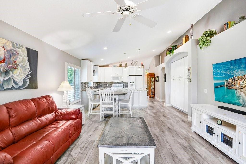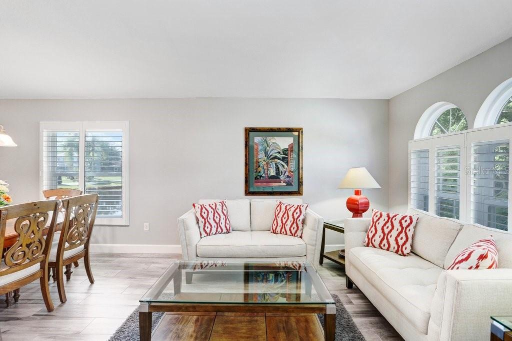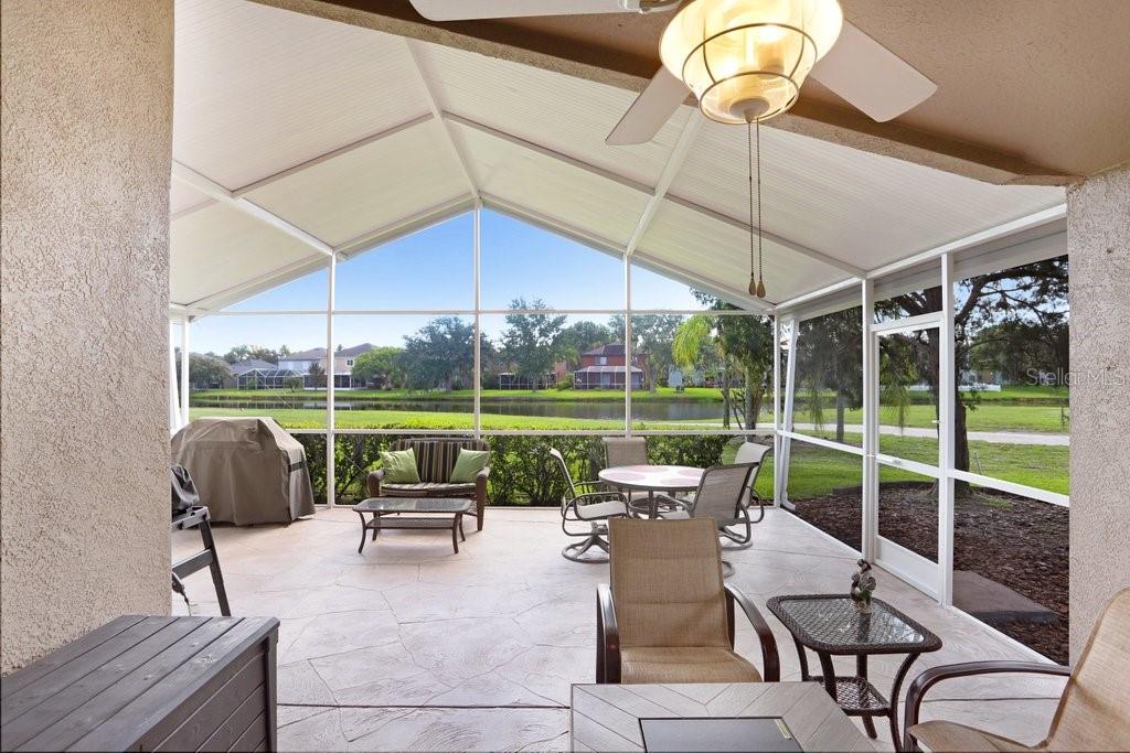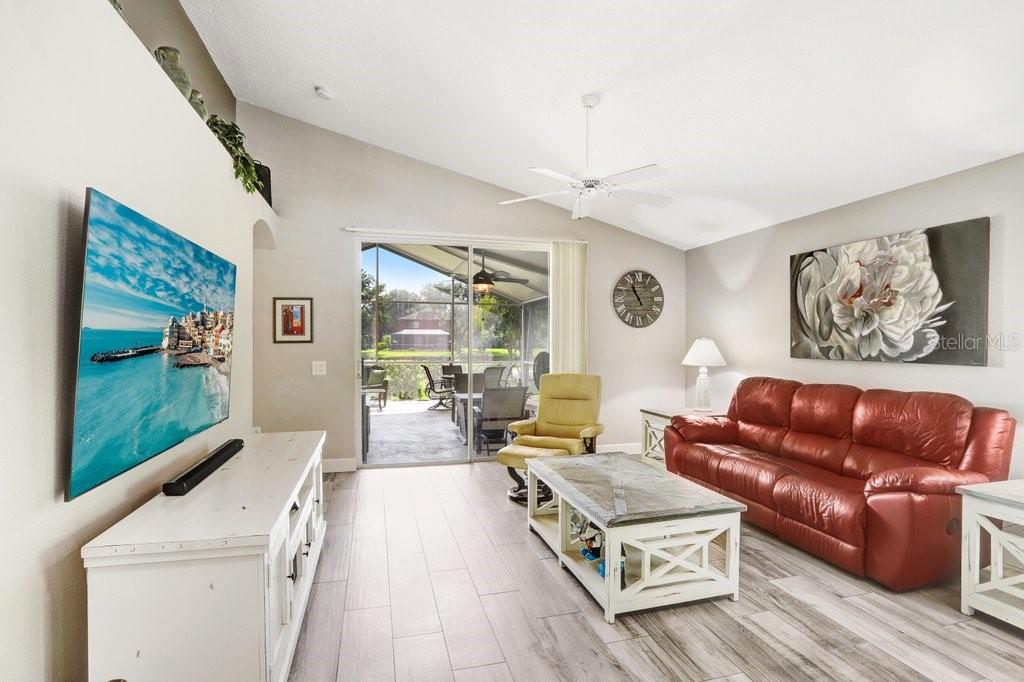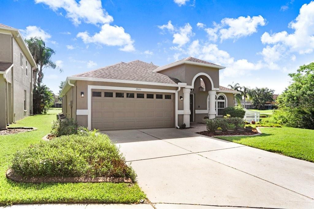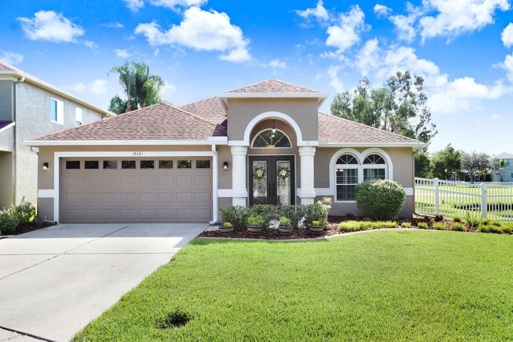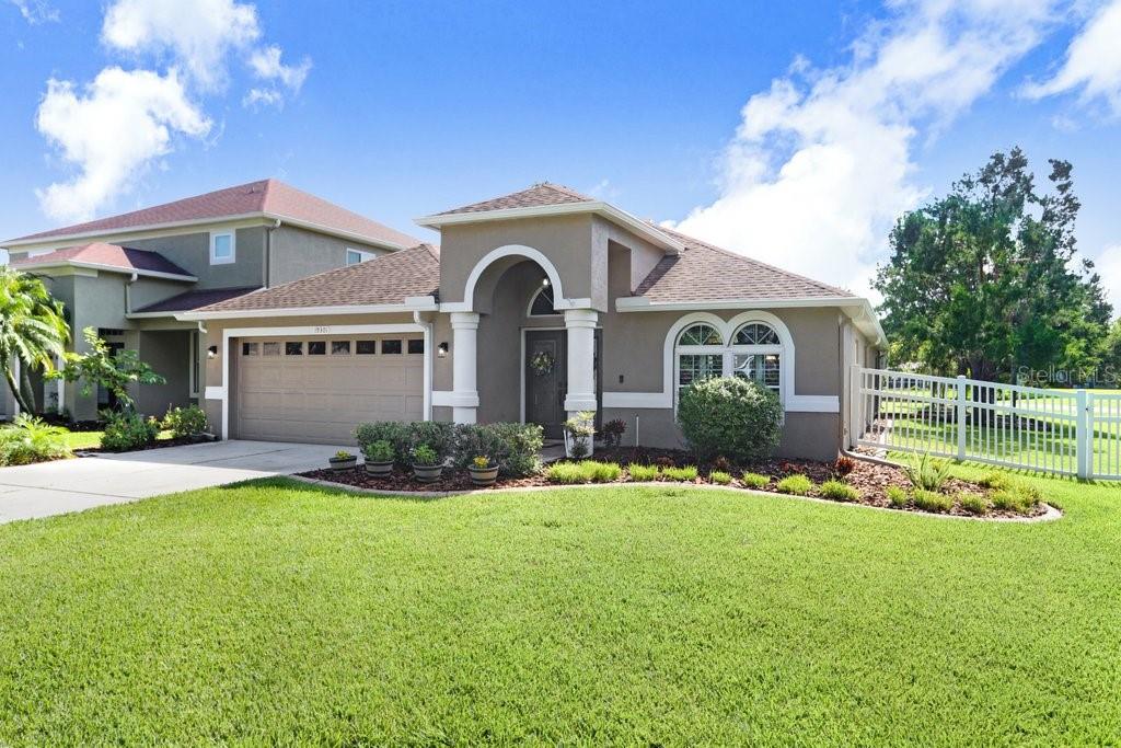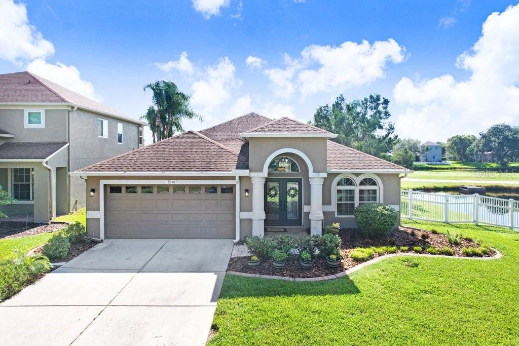 Experience Florida living at its finest in this stunning 3-bedroom, 2-bath home, perfectly situated in the highly sought-after gated Heritage Harbor Golf Community of Lutz. From the moment you arrive, you’ll be impressed by the combination of timeless design, thoughtful upgrades, and sweeping golf course and water views that make this property truly special. Inside, you’re greeted by beautiful wood-look porcelain tile floors that flow seamlessly through the main living areas, while warm wood laminate flooring adds comfort to each bedroom. Elegant plantation shutters frame the windows, inviting in natural light while offering privacy and style. The heart of the home is the chef-inspired kitchen, boasting striking leathered granite countertops, an expansive pantry with abundant cabinet storage, and a generous kitchen island perfect for gathering with family and friends. The open layout flows effortlessly into the family room and breakfast nook, creating a bright, welcoming space for entertaining. Just beyond, sliding glass doors open to an oversized screened lanai—the ideal spot to enjoy your morning coffee or evening glass of wine while overlooking the lush golf course and tranquil pond. The luxurious master suite is a private retreat, featuring a spacious sitting area, walk-in closet, and spa-like ensuite bath with a soaking tub, separate shower, dual granite-topped vanities, and porcelain tile flooring. Two additional bedrooms share a beautifully appointed second bath with double sinks, leathered granite counters, wood-look ceramic tile, and a tub/shower combo. Practical touches include a laundry room with utility sink and upper cabinets for extra storage, conveniently located just off the garage. Living in Heritage Harbor means more than just a beautiful home—it’s a lifestyle. Residents enjoy access to a championship golf course, clubhouse, resort-style pool, tennis and basketball courts, playground, and more. All of this is located close to top-rated schools, shopping, dining, and major commuter routes for easy access to Tampa, the beaches, and beyond. This is the home where comfort meets elegance, and every day feels like a getaway. Schedule your private showing today and discover all that this exceptional property has to offer! Roof (2015), HVAC (2017), Hotwater Tank (2015)