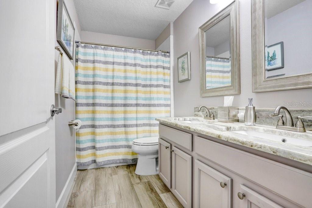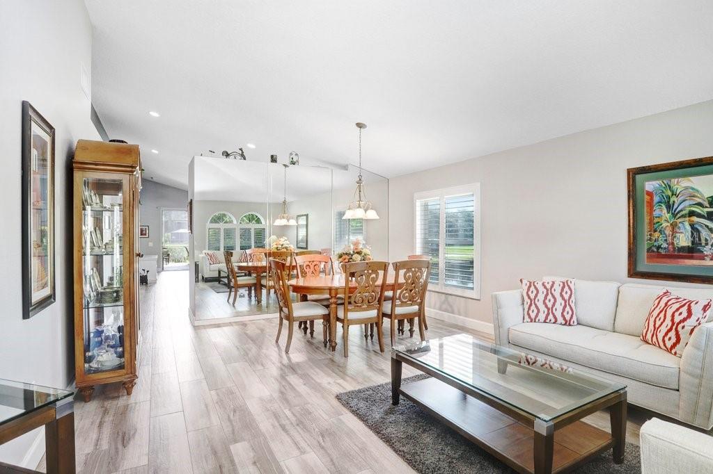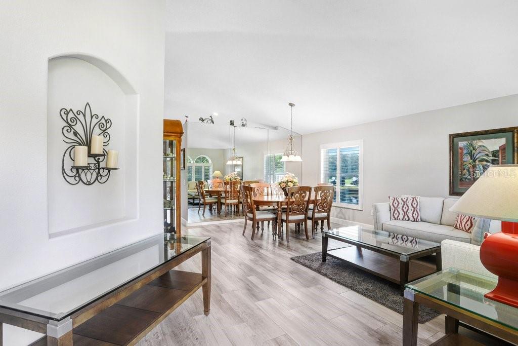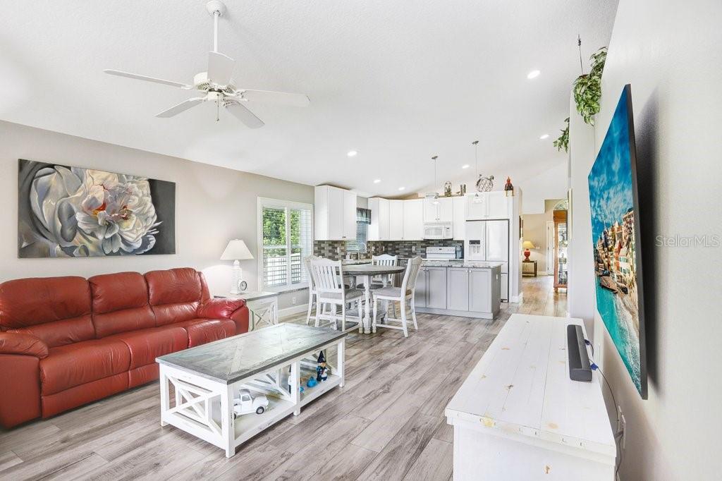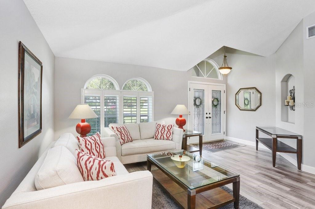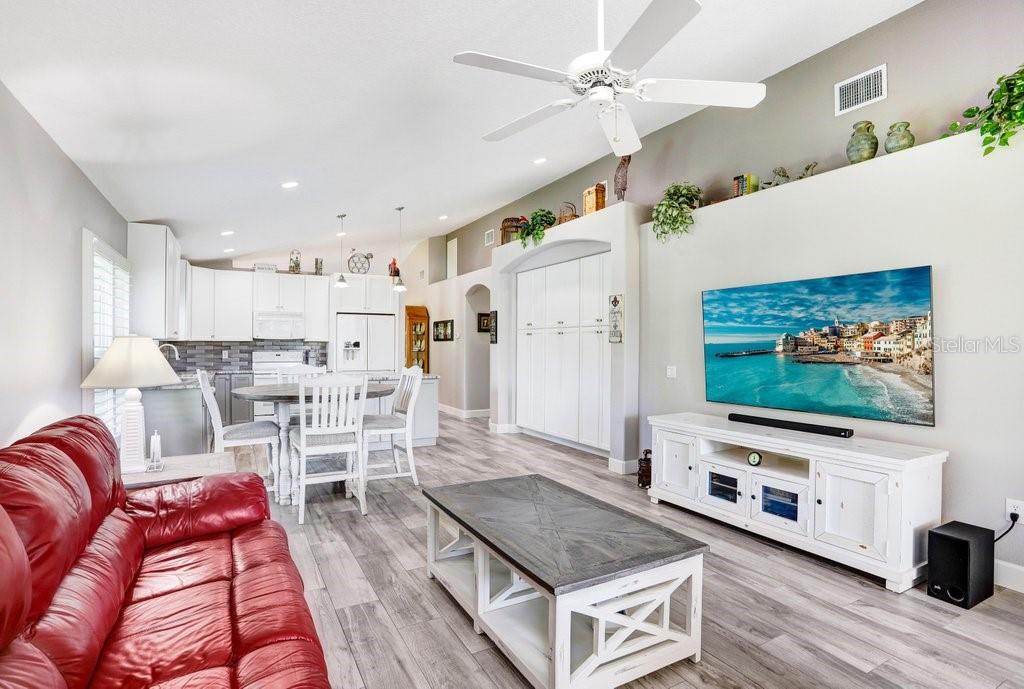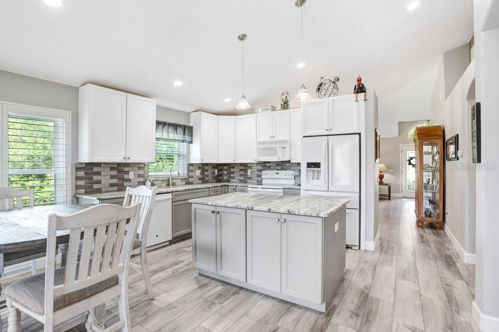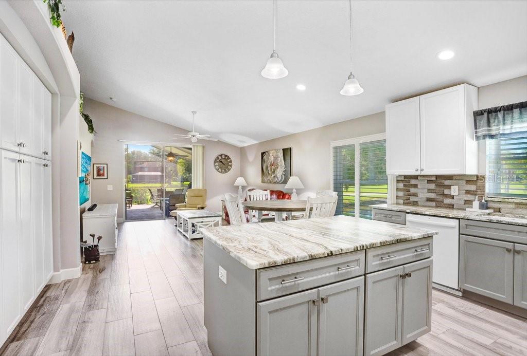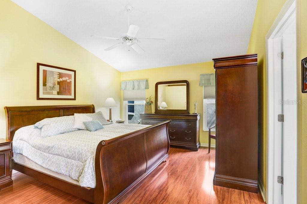 Experience Florida living at its finest in this stunning 3-bedroom, 2-bath home, perfectly situated in the highly sought-after gated Heritage Harbor Golf Community of Lutz. From the moment you arrive, you’ll be impressed by the combination of timeless design, thoughtful upgrades, and sweeping golf course and water views that make this property truly special. Inside, you’re greeted by beautiful wood-look porcelain tile floors that flow seamlessly through the main living areas, while warm wood laminate flooring adds comfort to each bedroom. Elegant plantation shutters frame the windows, inviting in natural light while offering privacy and style. The heart of the home is the chef-inspired kitchen, boasting striking leathered granite countertops, an expansive pantry with abundant cabinet storage, and a generous kitchen island perfect for gathering with family and friends. The open layout flows effortlessly into the family room and breakfast nook, creating a bright, welcoming space for entertaining. Just beyond, sliding glass doors open to an oversized screened lanai—the ideal spot to enjoy your morning coffee or evening glass of wine while overlooking the lush golf course and tranquil pond. The luxurious master suite is a private retreat, featuring a spacious sitting area, walk-in closet, and spa-like ensuite bath with a soaking tub, separate shower, dual granite-topped vanities, and porcelain tile flooring. Two additional bedrooms share a beautifully appointed second bath with double sinks, leathered granite counters, wood-look ceramic tile, and a tub/shower combo. Practical touches include a laundry room with utility sink and upper cabinets for extra storage, conveniently located just off the garage. Living in Heritage Harbor means more than just a beautiful home—it’s a lifestyle. Residents enjoy access to a championship golf course, clubhouse, resort-style pool, tennis and basketball courts, playground, and more. All of this is located close to top-rated schools, shopping, dining, and major commuter routes for easy access to Tampa, the beaches, and beyond. This is the home where comfort meets elegance, and every day feels like a getaway. Schedule your private showing today and discover all that this exceptional property has to offer! Roof (2015), HVAC (2017), Hotwater Tank (2015)