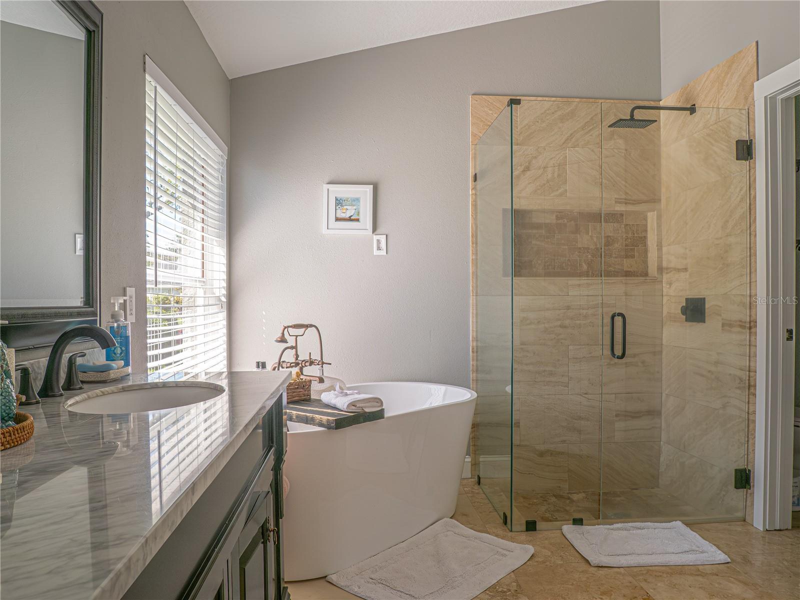 Immaculate 3-bedroom plus study, 2-bath, 2-car garage pool home in a highly desirable location near the Veterans Expressway—just minutes from top-rated schools, prime dining, and shopping. Nestled in a pet-friendly community, this residence offers exceptional value with major systems already updated for peace of mind. The home features nine hurricane-rated impact windows and a reinforced hurricane-rated garage door for added safety and energy efficiency. A newly renovated pool, screen enclosure, and deck area create a private oasis, while a new water softener and reverse osmosis drinking water system enhance everyday comfort. Lush green bushes enhance privacy and tranquility. Inside, the home showcases 18x18 Travertine marble flooring in the main living areas and wood- look ceramic tile throughout the remaining rooms. Both bathrooms have been fully remodeled with high-end finishes. The master bath includes a freestanding soaking tub with a handheld shower, dual marble vanity with undermount sinks, espresso cabinetry, custom mirrors, and flush-mount Bluetooth speakers. A frameless glass shower enclosure with rubbed bronze hardware and a rain shower head adds spa-like elegance. The pool bath features upgraded lighting, vanity, and marble accents. The kitchen is a chef’s dream, equipped with granite countertops, Travertine backsplash, under- cabinet lighting, raised-panel espresso cabinetry, stainless steel appliances. Additional upgrades include replaced commodes, a built-in shampoo shelf in the master shower, flush-mount speakers, and pre-wired audio in multiple rooms. This home blends luxury, durability, and convenience in one of the area’s most sought-after communities. Don’t miss your chance to own this turnkey gem—schedule your showing today!