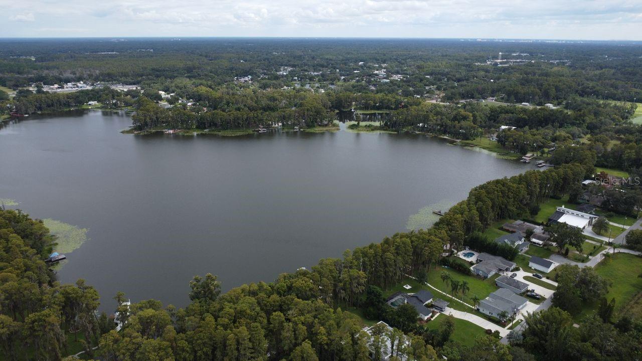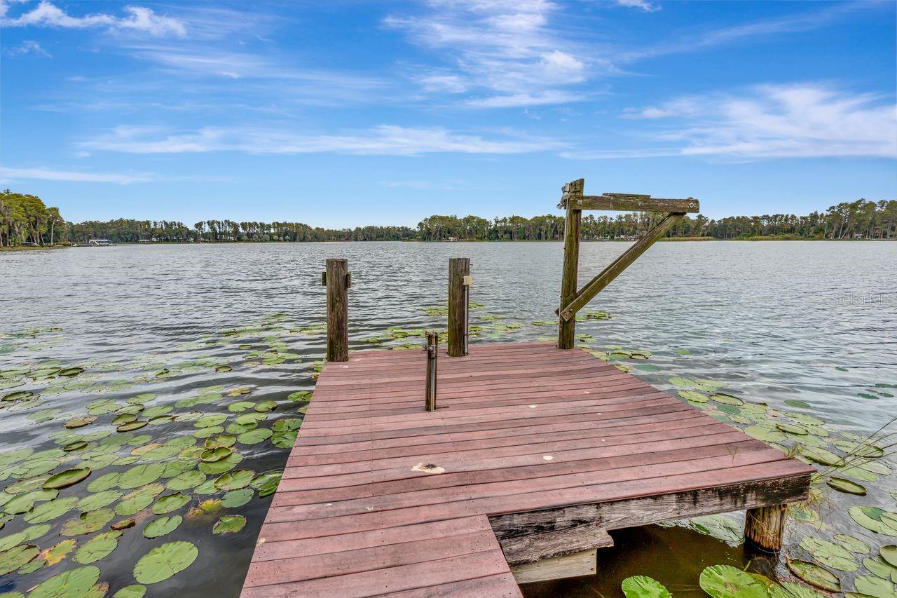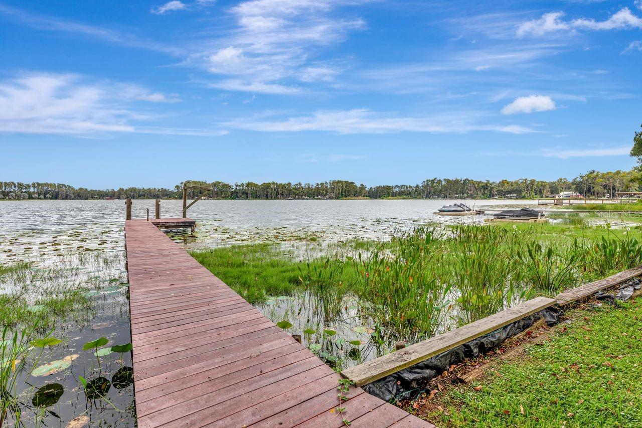 Ski Lake Living!!! Dock!!! Move in Ready or Live in the Home while Building your Dream Home in this beautifully updated 4-bedroom, 4-bathroom single-family home sits on 1.34 acres with approximately 600 feet going into the lake on popular SKI Lake Hobbs. Located in the sought-after Steinbrenner School District, this property offers privacy, space, and stunning water views. Interior features include approx. 2,400 sq ft of living space, a split-bedroom layout with two full primary suites, each offering walk-in closets, dual vanities, soaking tubs, and step-in showers. The designer kitchen boasts custom white cabinetry, quartz countertops, a built-in bench dinette, and GE Café appliances, including a gas range with double oven. The open layout, updated finishes, and large windows bring in natural light and showcase the lake views. Includes a 2-car attached garage and ample green space with a relaxing fire pit located near the dock to enjoy Florida lakefront living. A private dock equipped with electricity and water awaits you, inviting you to fish, ski, or simply relax as you soak in the stunning sunsets & sunrises.The dock walkway dimensions are 4x58 but the end of the dock is 12x11. For outdoor enthusiasts, the nearby Oscar Cooler Sports Complex offers a range of activities including baseball/softball, soccer, football & tennis. Additionally, the popular Suncoast Trail is perfect for biking or hiking adventures. Conveniently located in the desirable Lutz area, this property provides easy access to major routes such as the Veterans Expressway, US 41, and Interstate 275. Also located in the highly-rated Steinbrenner school district. With a variety of amenities including Publix, Target, and more in close proximity, you'll have everything you need within reach. Embrace the joy of a staycation lifestyle as you revel in the endless possibilities this acreage offers. New roof in 2022, windows 2020, well 2023 and a recently updated kitchen & baths, Newer Tankless water heater in 2023 and all Plumbing updated with Red Cap Plumbing, New Water Purification system adds further value to this remarkable property. New Septic system installed in 2024. Don't miss out on the opportunity to make this lakefront haven your own. Range & Water Heater is propane with a leased tank.