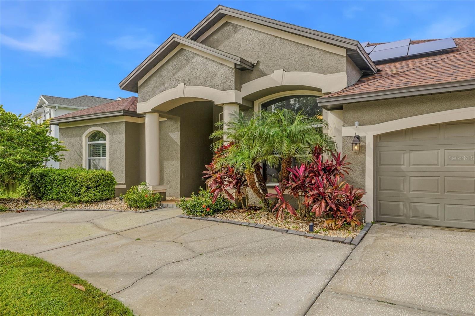 THIS IS THE ONE YOU'VE BEEN WAITING FOR — A stunning 4-bedroom + office, 3-bath, 3-car garage POOL HOME featuring a rare CIRCULAR DRIVEWAY on a CONSERVATION LOT, located in the highly sought-after golf community of HERITAGE HARBOR, known for its exceptional amenities and access to some of the TOP-RATED SCHOOLS in Hillsborough County. Includes OWNED SOLAR PANELS, providing outstanding energy efficiency and significant savings on monthly utility costs—an incredible long-term benefit rarely found in homes of this caliber. Filled with natural light, this beautifully designed SINGLE-STORY HOME showcases gorgeous high ceilings, custom wall trim, and built-ins throughout, adding a beautifully crafted, custom touch. The updated kitchen is both elegant and functional, featuring quartz countertops, rich walnut cabinetry, abundant storage, a large island, a breakfast nook, and motorized shades in the kitchen and great room for enhanced comfort and ease. The thoughtfully designed layout includes spacious bedrooms, a dedicated home office, and built-in storage in the garage, pantry/laundry room, and entryway, providing exceptional organization throughout the home. Step outside to an extra-large backyard that backs up to conservation with NO REAR NEIGHBORS, offering privacy and serene views. The concrete pool and outdoor entertaining area create the perfect setting for relaxing or hosting guests while enjoying true Florida living. The primary suite is a peaceful retreat with a large walk-in closet and a spa-like owner’s en suite bathroom featuring a soaking tub and oversized walk-in shower. Bedrooms two and three share a Jack-and-Jill bathroom with double vanities, while the fourth bedroom is privately tucked toward the back of the home with the third full bath, ideal for guests or multigenerational living. Heritage Harbor elevates this home even further with its premier, resort-style amenities—including an 18-hole championship golf course, a beautiful Gulf-Coast–inspired clubhouse, a resort pool with a three-story water slide, lap lanes, a splash zone, tennis and basketball courts, playgrounds, and a fitness center. The community is known for its vibrant social atmosphere, family-friendly environment, and year-round events, all while offering easy access to nearby shopping and dining, and zoning for top-rated schools such as McKitrick Elementary, Martinez Middle, and Steinbrenner High. Located in the heart of Lutz, this address offers unbeatable convenience—just minutes from the Veterans Expressway, Dale Mabry Highway, SR-54, and quick connections to I-75 and I-275, making commutes throughout Tampa Bay effortless. You’re only 20–30 minutes from Tampa International Airport, Downtown Tampa, the Tampa Riverwalk, and the causeways leading to Florida’s world-famous Gulf beaches. This prime location also puts you close to fantastic dining, shopping, and entertainment options, including the Tampa Premium Outlets, Wiregrass Mall, and the vibrant mix of local businesses throughout Lutz and Wesley Chapel. Major medical centers such as AdventHealth and BayCare are just a short drive away, along with popular Florida attractions like the Epperson and Mirada Lagoons, nature preserves, breweries, and golf courses. A rare opportunity to own a move-in-ready pool home with conservation views in one of Hillsborough County’s most desirable communities. Schedule your private tour today!