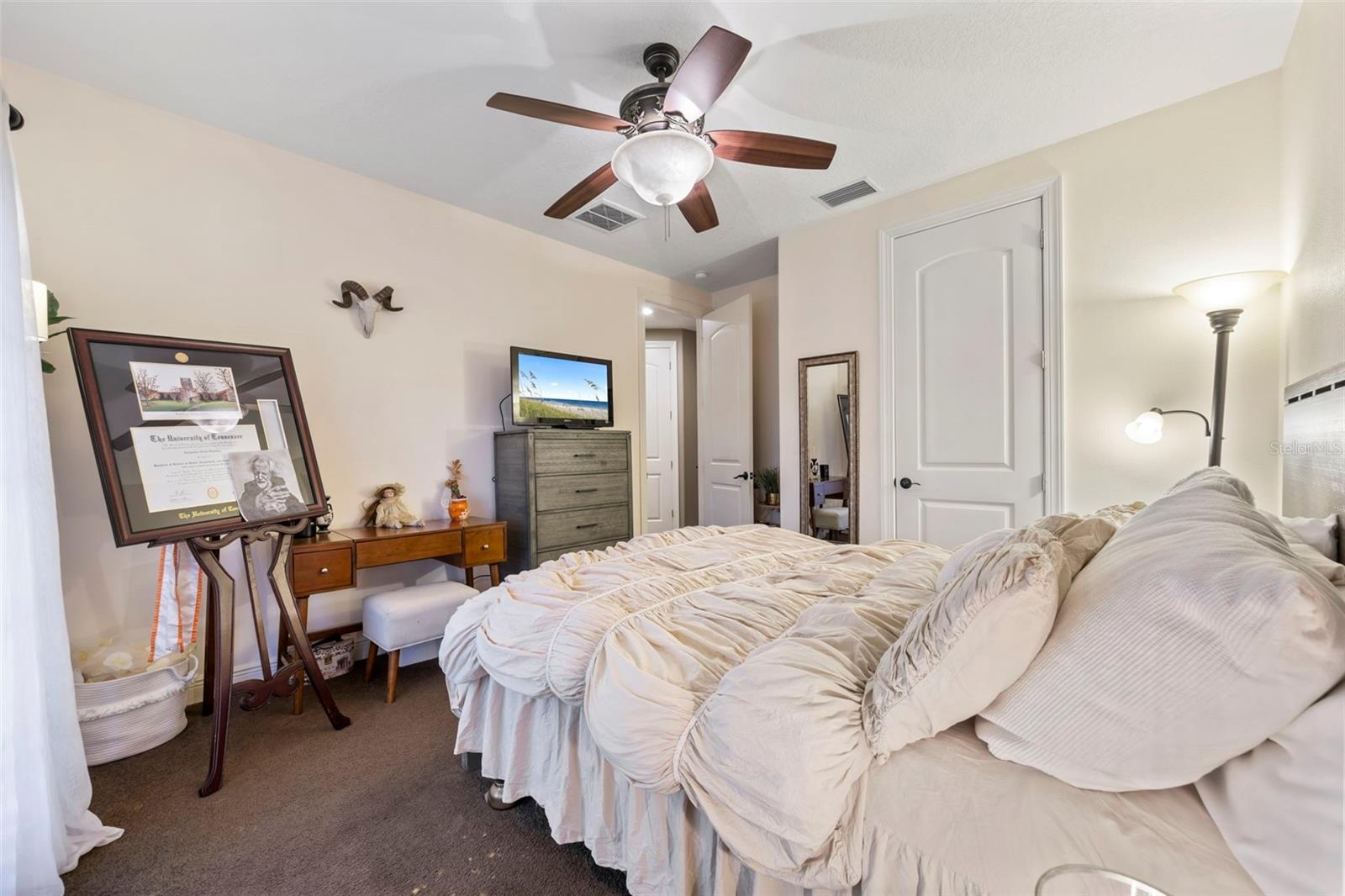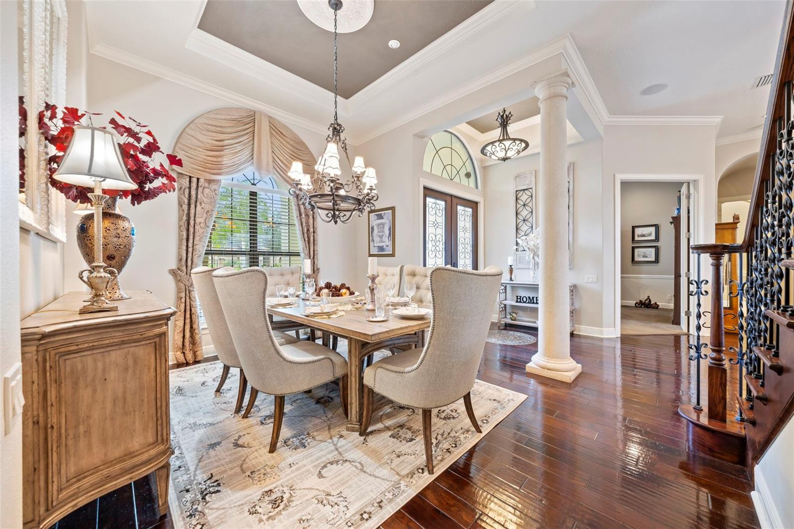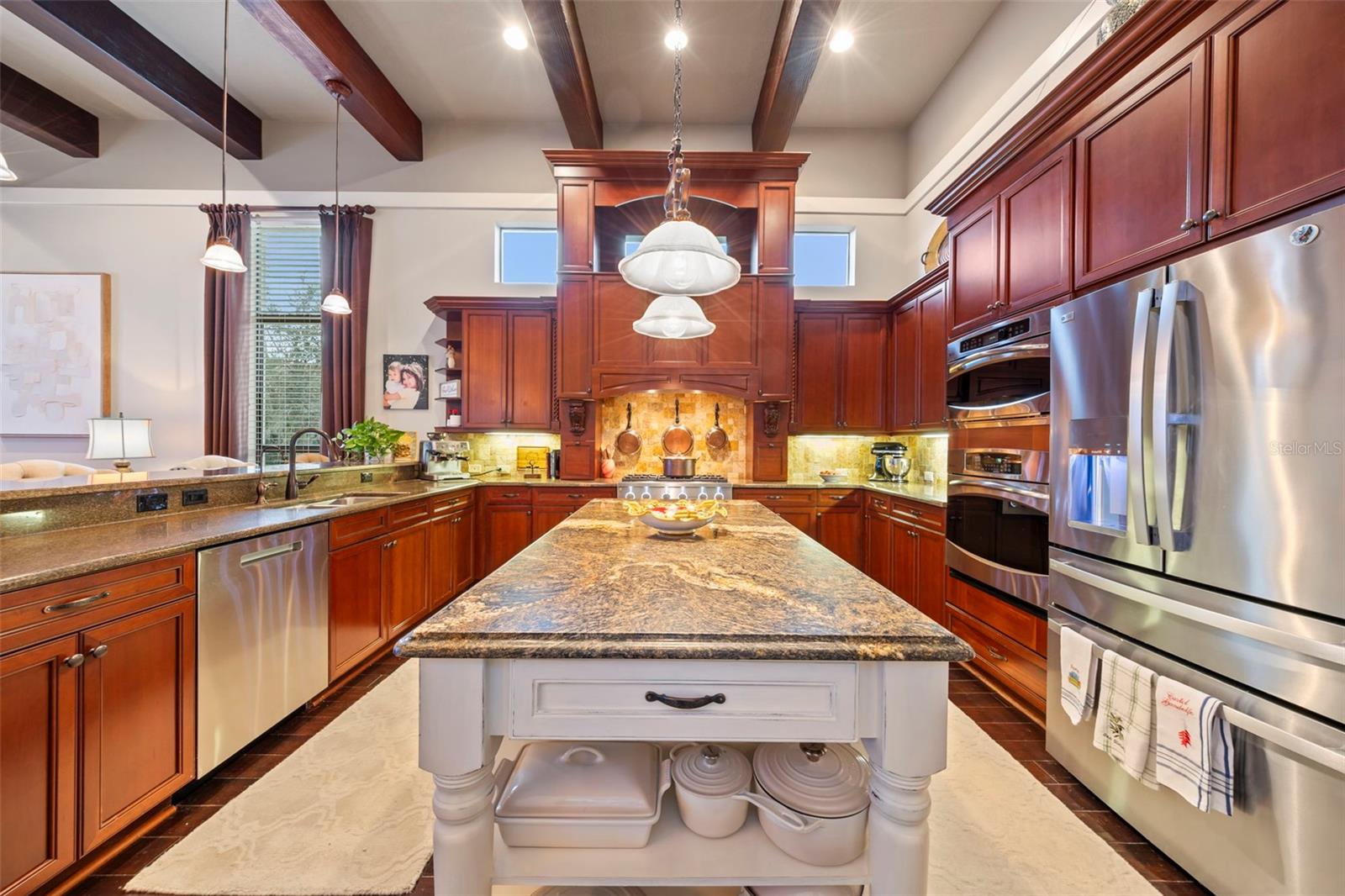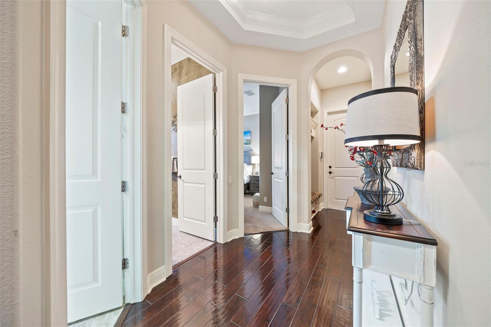 Welcome to 1207 Merry Water Drive, an exceptional Arthur Rutenberg–built estate located in the highly coveted Ladera neighborhood. One of only four Arthur Rutenberg homes in the community—and the only 5-car garage home in Ladera—this residence was proudly featured on the cover of Legendary Homes. Set on a premier large lake lot with low HOA fees and zoned for Steinbrenner High School, this property offers a rare blend of luxury, technology, and thoughtful design. From the moment you arrive, you’ll be impressed by over 2,000 square feet of newly sealed entry pavers (2025), extensive mature landscaping with irrigation and drip systems, dramatic landscape lighting, and nine mature Washingtonian palm trees creating stunning curb appeal—especially at night. Hurricane-impact windows throughout provide peace of mind with no shutters required. Inside, the home is fully integrated with a Control4 smart home system, allowing lighting, audio, security cameras, TVs, climate control, and more to be managed seamlessly from your phone. The gourmet kitchen features custom cabinetry, South African granite, GE Profile gas appliances (all under three years old), reverse-osmosis water, wine bar with refrigerator, and built-in security monitoring. Adjacent living and family spaces showcase custom ceiling details, wood beams, marble gas fireplace, expansive sliding doors, surround sound, and designer drapery—perfect for both entertaining and everyday living. The spacious primary suite offers private pool access, walk-in closets with custom built-ins, Control4 surround sound, and a spa-like bath with oversized dual-head shower. Additional bedrooms include private baths and balconies, while the upstairs family room opens to an outdoor balcony with surround sound and lake views. Outdoor living is exceptional with a full screened pool enclosure, travertine pavers, illuminated pool and spa with dual motors and fountain feature, and a custom gazebo complete with a 2025 built-in grill, cooktop, refrigerator, and TV. Whether hosting gatherings or relaxing lakeside, this space is designed to impress. Additional highlights include three separate AC units (primary unit just six months old), Vivint security system, hurricane protection, dedicated study, smart laundry room with Control4 rack system, and two garages totaling five parking spaces—one with EV-ready high-amp outlet, custom cabinetry, work area, and advanced lighting and irrigation controls. This is a truly rare opportunity to own a technologically advanced, meticulously maintained luxury home in one of the area’s most desirable communities. Schedule your private showing today.