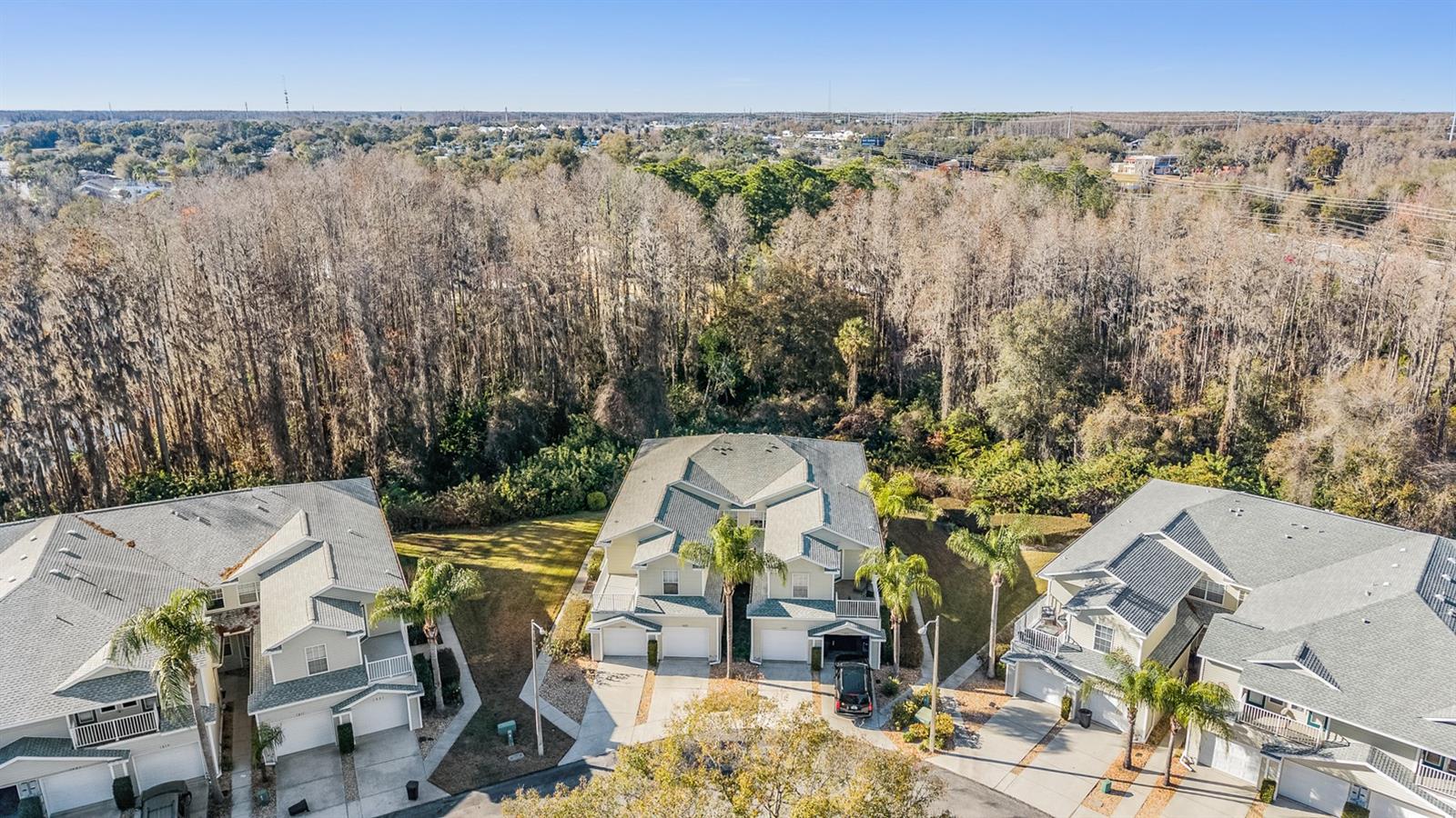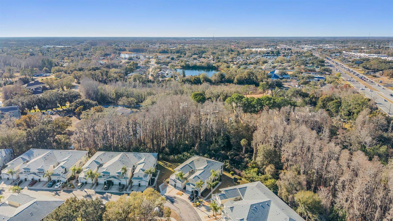 Welcome to effortless Florida living in the gated community of Lakes at Heron Cove. This stylish, well-maintained first-floor 2-bedroom, 2-bath condo offers 1,233 square feet of thoughtfully designed living space along with a 1-car attached garage—a rare find at this price point. The desirable split-bedroom floor plan provides privacy and comfort, while the open living areas are ideal for everyday living and entertaining. Step outside to your private screened lanai, where tranquil conservation views create the perfect backdrop for morning coffee or evening relaxation as local wildlife passes by. Inside, the kitchen is both functional and inviting, featuring wood cabinetry, ample counter space, a breakfast bar, closet pantry, and modern appliances. The spacious primary suite (15x13) includes a walk-in closet with custom organizer and an en-suite bath with dual vanities, a walk-in shower, and a private water closet. Tile flooring anchors the main living areas, while plush carpeted bedrooms offer warmth and comfort. Recent updates add peace of mind, including HVAC replaced in 2020 and a new roof completed by the association in 2021. Enjoy NO CDD fees and a low monthly COA of just $375, making this an affordable and low-maintenance option. Community amenities elevate the lifestyle: a sparkling resort-style pool, clubhouse, scenic walking paths, and direct access to 54-acre Lake Bird with a boat ramp and fishing dock—perfect for small boats, kayaks, or peaceful afternoons by the water. Tucked away behind mature trees yet conveniently located off Hwy 54, this community offers easy commuting with quick access to I-275, shopping, dining, and entertainment just minutes away. USF, Moffitt Cancer Center, and Downtown Tampa are all within a 20–30 minute drive.