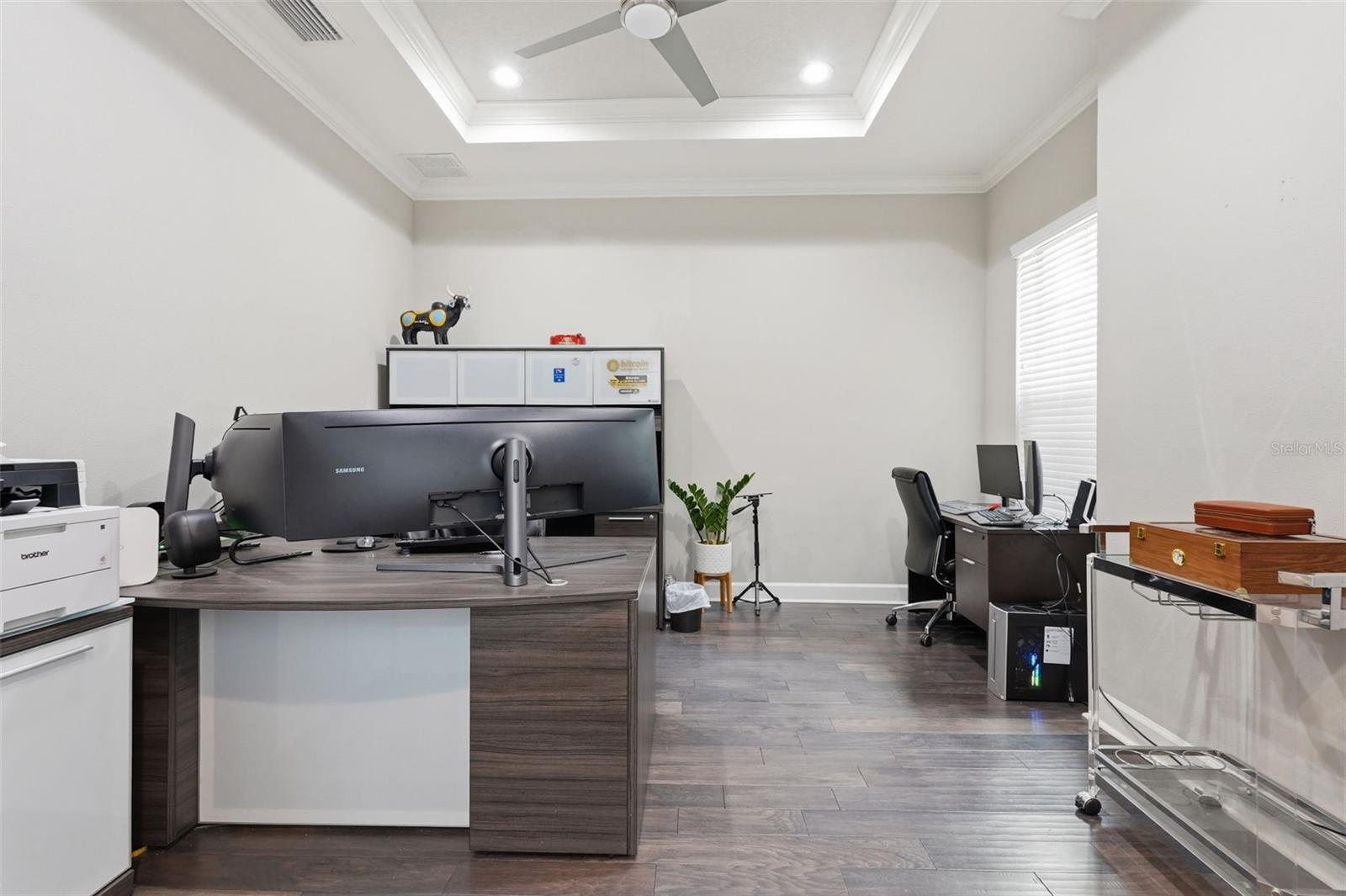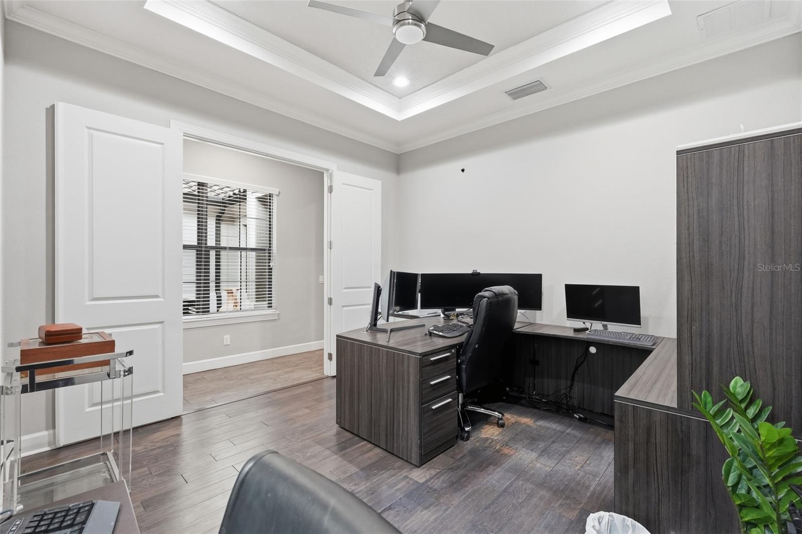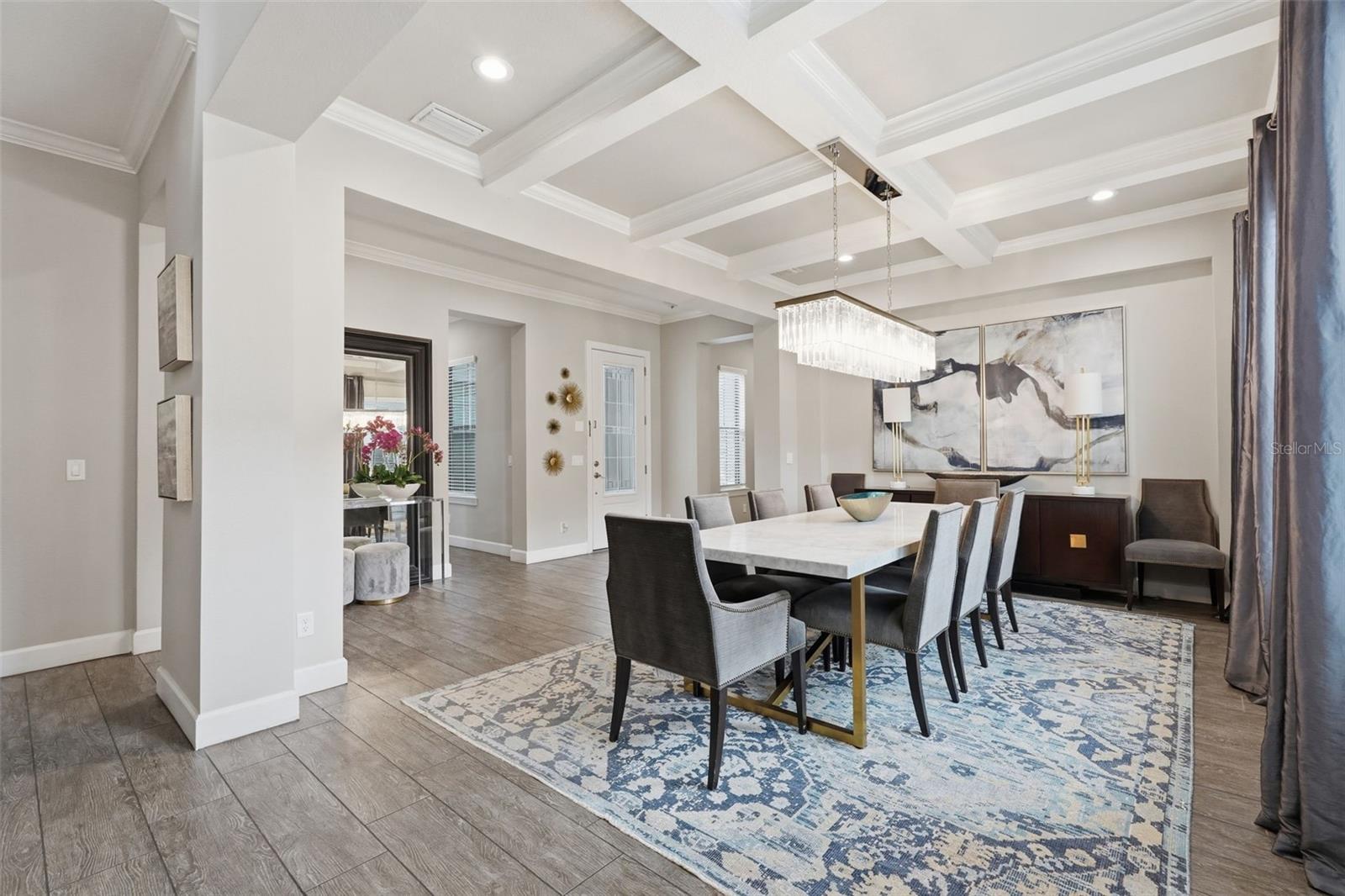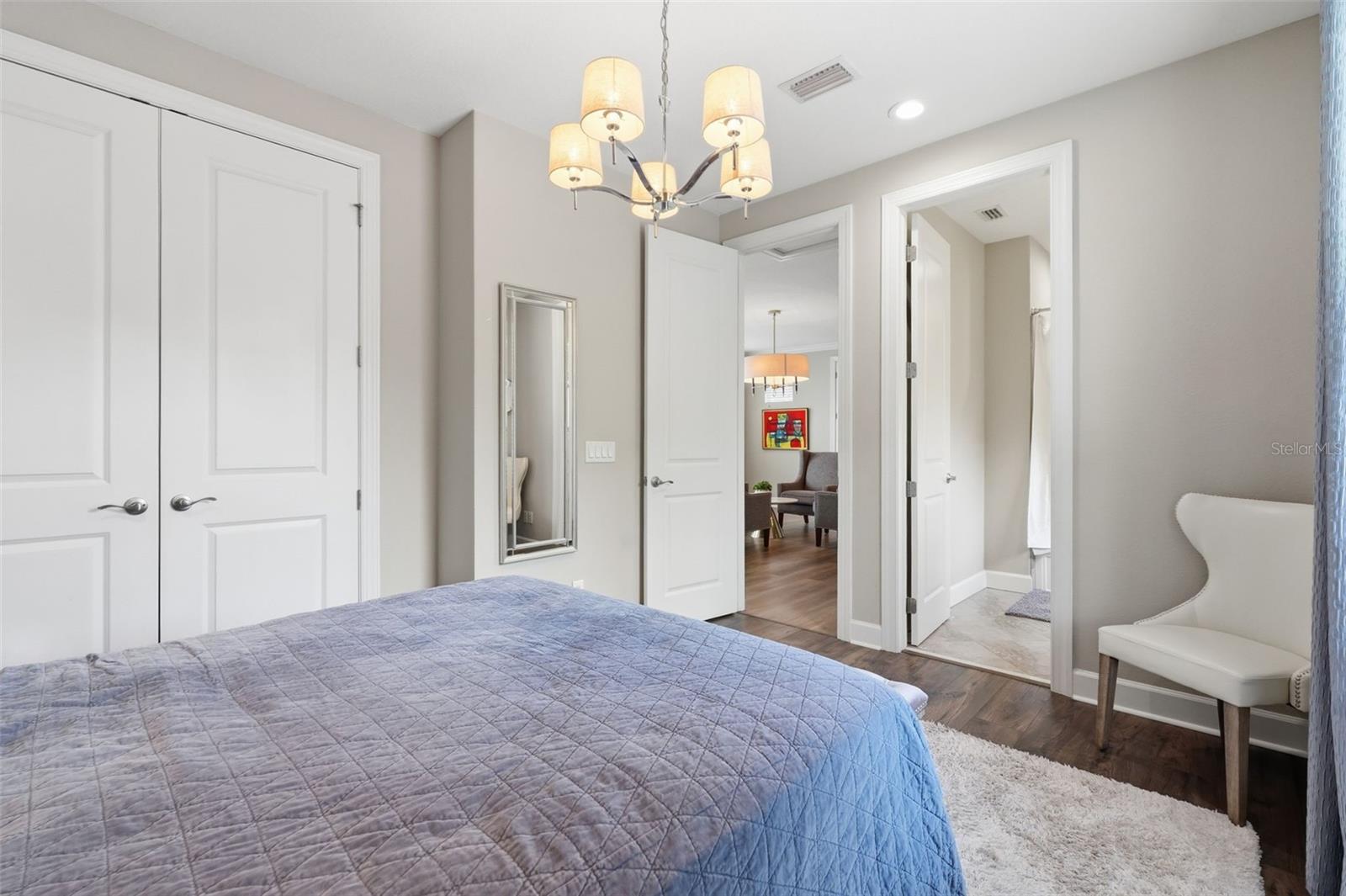 Welcome to Luxury Living at its finest, featuring elegant design and exceptional upgrades throughout. Enter through the charming courtyard where you’ll find a private one-bedroom, one-bath guest suite with its own entrance, complete with a mini kitchen including a cooktop, microwave, and refrigerator—perfect for guests or extended family. Inside the main home, a grand foyer and formal dining room with architectural ceiling details set the tone. A dramatic staircase with ironwork and cherry-stained risers adds a stunning focal point. The luxurious primary suite offers a private sitting area and spa-like bath with a jetted soaking tub and rain shower, while overlooking the beautiful pool. Two additional bedrooms share a convenient Jack-and-Jill bath. The chef’s kitchen, designed for entertaining, features a gas cooktop with griddle, double convection ovens, pot filler, large pantry, and striking quartz countertops, opening to the spacious family room and outdoor courtyard kitchen. Step outside to your private backyard oasis, complete with a saltwater pool and fully equipped cabana with wet bar, outdoor kitchen, refrigerator, and pool bath. Upstairs includes an additional en-suite bedroom, open loft, and media room with a mini kitchen. This magnificent home blends luxury, comfort, and resort-style living—truly a must-see.