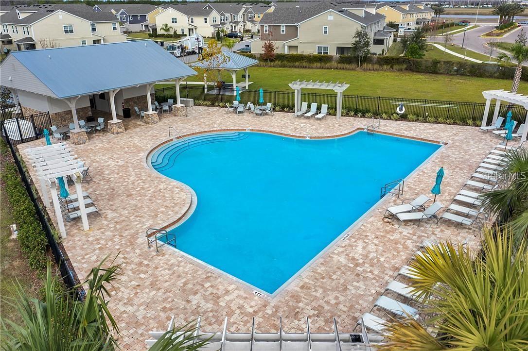 Foxtail at Long Lake Ranch proudly presents corner unit townhome with 2,153 sf, 3 bedrooms 2 1/2 baths, a 2-car garage PLUS a BONUS ROOM. During the day, watch the ducks swim by while you sit on your screen enclosed lanai overlooking water. In the evening enjoy gorgeous sunsets that will take your breath away! Tons of options/upgrades were added! The first floor great room plan with volume ceilings opens seamlessly to the dining space & eye opening gourmet kitchen complete with QUARTZ counters, 42” cherry java cabinets with crown molding, complete slate GE profile appliance package, listello tile backsplash, pendant lights over the island with large stainless steel farm-style sink, pull-out shelves, trash/recycle station & HUGE walk-in pantry!! The laundry room with a window for natural light hosts 42” overhead maple nutmeg cabinets & a built-in sink with GRANITE! Laminate flooring on the first floor with a mixture of laminate and carpet on the second. On the 2nd floor, you are greeted by a spacious 12 ft. x 19 ft. BONUS room with volume ceilings that makes for a great media space, playroom or home office! The KING-SIZED master bedroom offers space for a quiet sitting area & a HUGE walk-in closet. The ensuite with its long GRANITE counter & dual sinks features a walk-in shower & linen closet. Bedrooms 2 & 3 share a tasteful full bath complete with GRANITE, dual sinks, a large linen closet & a tub/shower combo. Brantford oil rubbed bronze hardware. Hurricane fabric shutters. Long Lake Ranch community boasts two community pools for their residents to enjoy. There is also a dog park, playground, tennis/basketball courts all only a short distance away. Walk a mile around the lake or fish from its pier. Top rates schools. Only minutes to shopping and restaurants, Busch Garden, Lowry Zoo and Tampa Premium Outlet Mall. Less than 30 minutes to the Tampa International Airport. HOA includes water, sewer, sprinkler and yard maintenance.