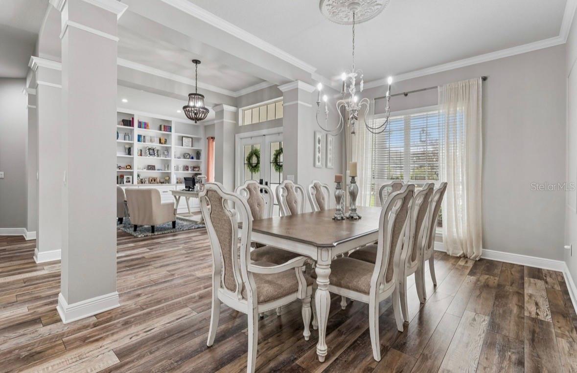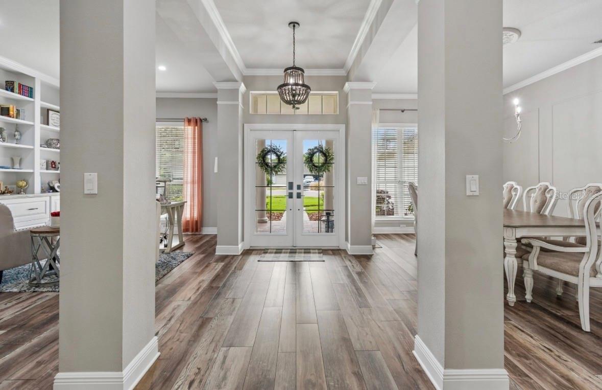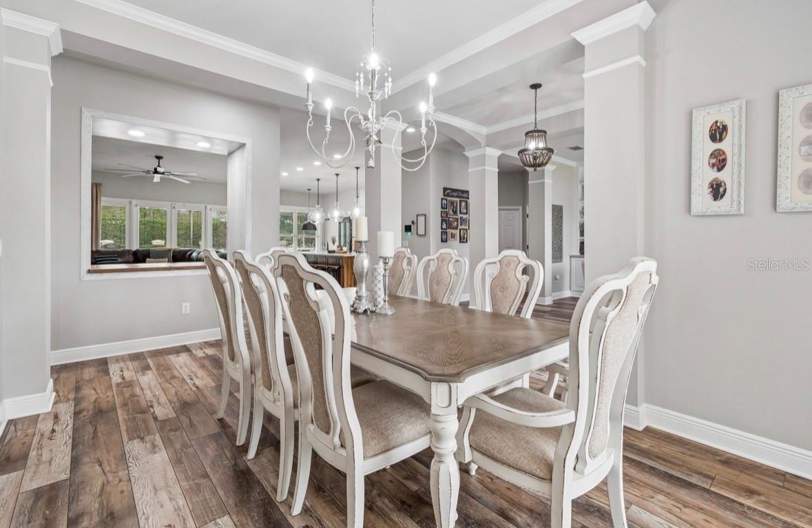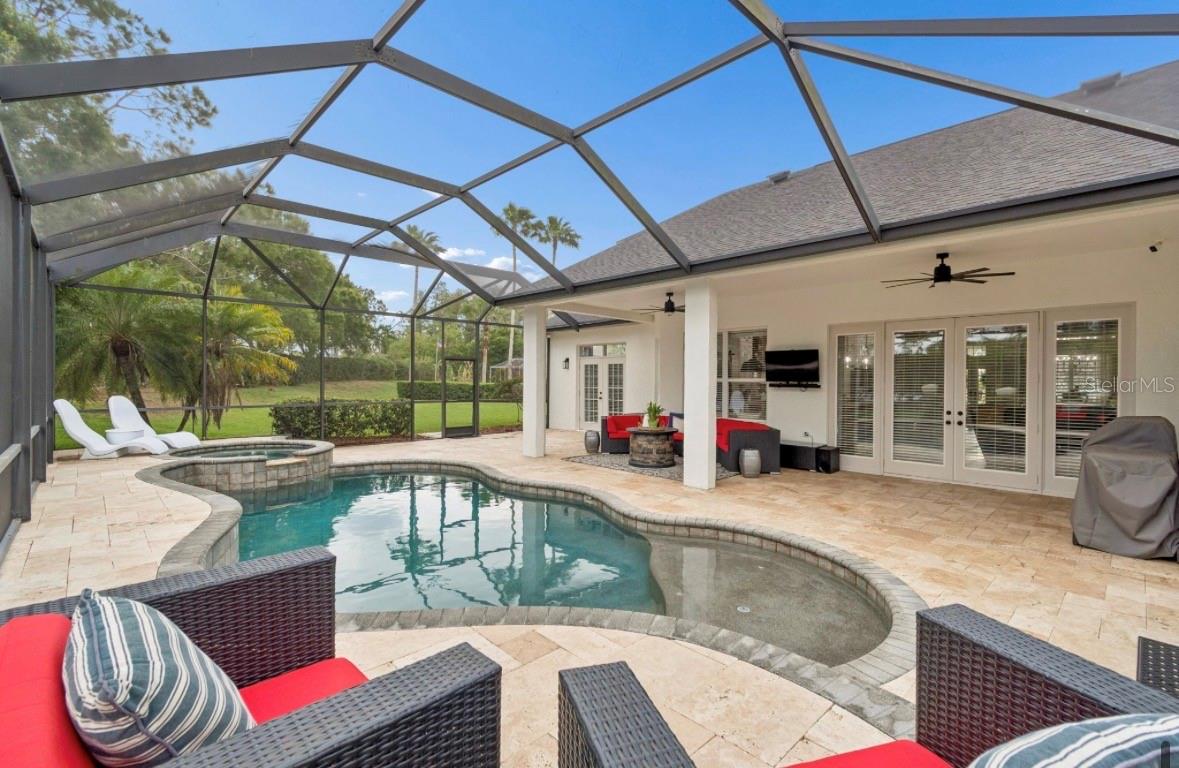 Welcome to this exceptional executive pool home located in the highly sought-after gated village of Faberge in Villa Rosa — a rare enclave of just 27 residences. Nestled on a generous half-acre cul-de-sac lot, this beautifully maintained 4-bedroom, 3-bathroom residence offers privacy, charm, and elegant living surrounded by mature tree-lined streets. From the moment you arrive, impressive double glass front doors and elegant French doors welcome you into a thoughtfully designed open floor plan filled with natural light. Luxury vinyl plank flooring throughout, beautiful crown molding, designer details, and custom built-ins enhance the home throughout. The spacious family room features a cozy fireplace and opens seamlessly to the kitchen, creating the perfect space for everyday living and entertaining. The gracious kitchen boasts stainless steel appliances, pullout shelving, pendant lighting, a large center island with additional storage, and a bright breakfast area overlooking the pool. A dedicated office with built-in cabinetry provides the ideal work-from-home setup. The private primary suite offers direct pool access and features high ceilings and a luxurious ensuite bath complete with built-in vanity seating,Jet Tub Bath, step-in shower, and generous space. Oversized secondary bedrooms features luxury vinyl plank floors and ample storage. Step outside to your private oasis featuring a gorgeous screened-in heated saltwater pool and spa, expansive patio with plenty of room for outdoor seating and activities — perfect for year-round Florida living. Property highlights include: • Sought-after David Weekley built home • Spacious 3-car garage with EV charging station • WiFi-enabled sprinkler system • Abundant storage with built-ins throughout • French doors providing seamless indoor-outdoor flow • Lovingly maintained and move-in ready condition Major updates provide peace of mind, including exterior paint (2026), hurricane-impact windows on the north and west sides (2024), HVAC (2021), roof (2020), pool heater (2020), and pool pump & filter (2026). Located in the highly desirable Steinbrenner School District and zoned for McKitrick Elementary, Martinez Middle, and Steinbrenner High School all within walking distance. Residents of Villa Rosa enjoy outstanding community amenities including playgrounds, tennis courts, scenic waterfront areas, and expansive green spaces. This is a rare opportunity to own a beautifully updated executive home in one of the area’s most desirable gated communities.