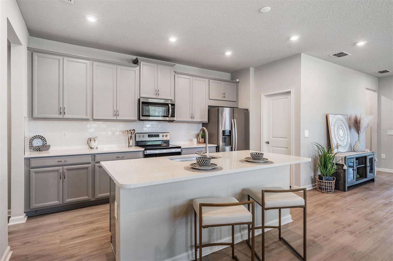 One or more photo(s) has been virtually staged. Welcome To This Stunning End-Unit Townhome In The Gated Community Of Parkview At Long Lake Ranch In Land O’ Lakes. Offering The Space, Privacy, And Natural Light Of A Single-Family Home With The Convenience Of Low-Maintenance Living. This Award-Winning Sebring Floor Plan Features 3 Bedrooms, 2.5 Bathrooms, A Spacious Loft, And A 2-Car Garage With 2,230 Square Feet Of Thoughtfully Designed Living Space. As A Premium End Unit, This Home Is Filled With Natural Light From Additional Windows—Creating A Bright, Open, And Inviting Atmosphere. The Main Living Area Showcases A Seamless Open-Concept Layout With Luxury Vinyl Plank Flooring And A Direct Sightline To Peaceful Pond Views. The Designer Kitchen Is A True Standout, Featuring Tahoe Painted Stone Cabinetry, Carrara Marmi Quartz Countertops, Stainless Steel Appliances, Subway Tile Backsplash, Brushed Nickel Hardware, A Large Center Island With Breakfast Bar, And A Walk-In Pantry, Perfect For Entertaining Or Everyday Living. Triple Sliding Glass Doors Lead To A Screened-In Covered Lanai With Pavers Overlooking Tranquil Water Views—A Highly Desirable Feature That Adds Both Privacy And Lifestyle Appeal. Upstairs, The Oversized Loft Provides Flexible Living Space Ideal For A Home Office, Media Room, Or Second Living Area—A Key Feature For Multi-Generation Families. The Private Owner’s Suite Is Positioned Off The Loft And Features Dual Walk-In Closets And A Spa-Inspired Bath With Raised Dual Vanities And A Large Walk-In Shower. Two Additional Bedrooms, Each With Walk-In Closets, Share A Full Bathroom. Additional Highlights Include A Smart Home Technology Package With Ecobee Thermostat, Video Doorbell, And Security System For Modern Efficiency And Peace Of Mind. Throughout The Home You Will Find Ceiling Fan, and Pendant Light Pre-Wires Available to Enhance and Personalize The Home To Your Personal Style. Located In Parkview At Long Lake Ranch, Residents Enjoy A Gated Setting With Community Amenities Including A Resort-Style Pool, Dog Park, And Playgrounds. Ideally Situated With Easy Access To Interstate 75, Veterans Expressway (SR 589), And Close Proximity To Tampa International Airport, Making Commuting And Travel Simple And Convenient. Just Minutes From Shopping, Dining, Grocery Stores, And Tampa Premium Outlets, With A Straightforward Drive Into Tampa And Surrounding Areas. Zoned For Highly Rated Schools Including Oakstead Elementary School, Charles S. Rushe Middle School, And Sunlake High School. Move-In Ready, Light-Filled, And Exceptionally Maintained—This Is One Of The Best-Priced End-Unit Opportunities In The Area! Schedule Your Private Showing Today!
