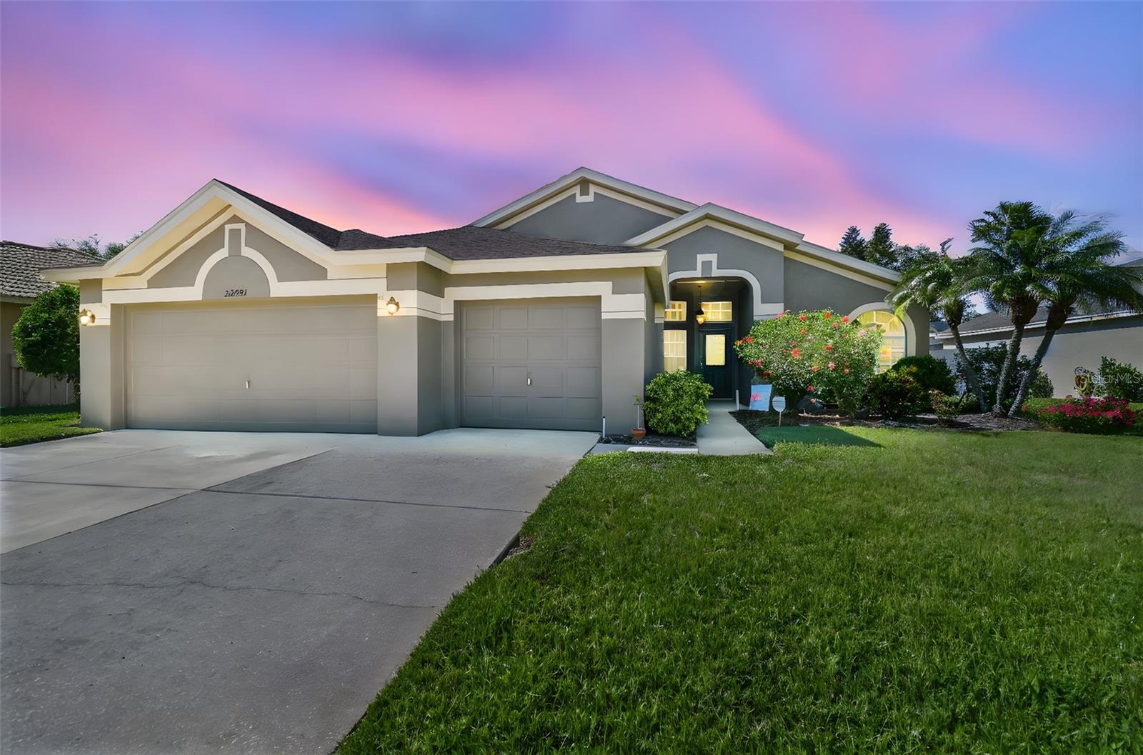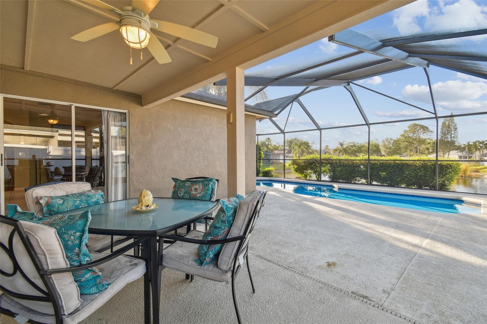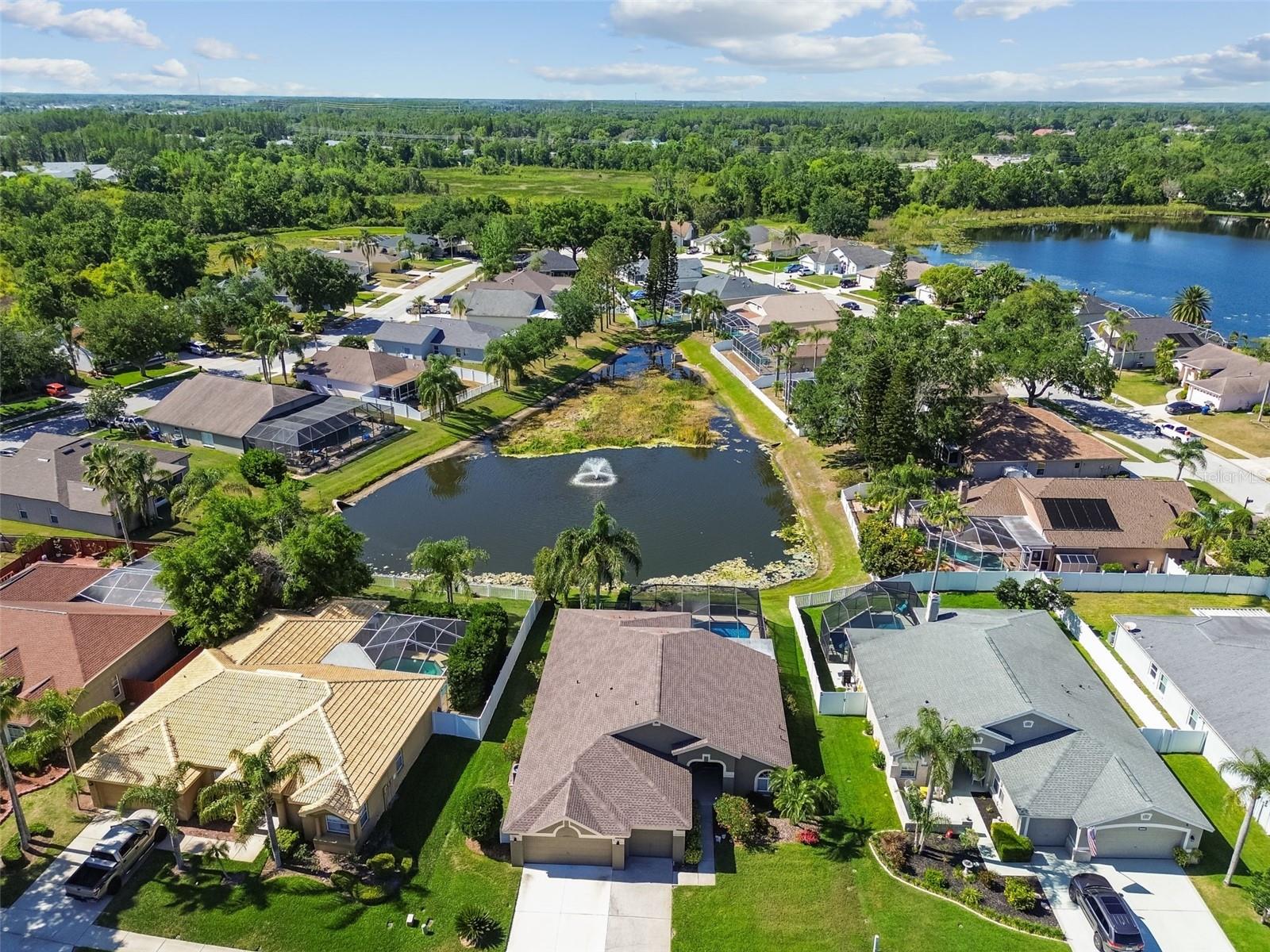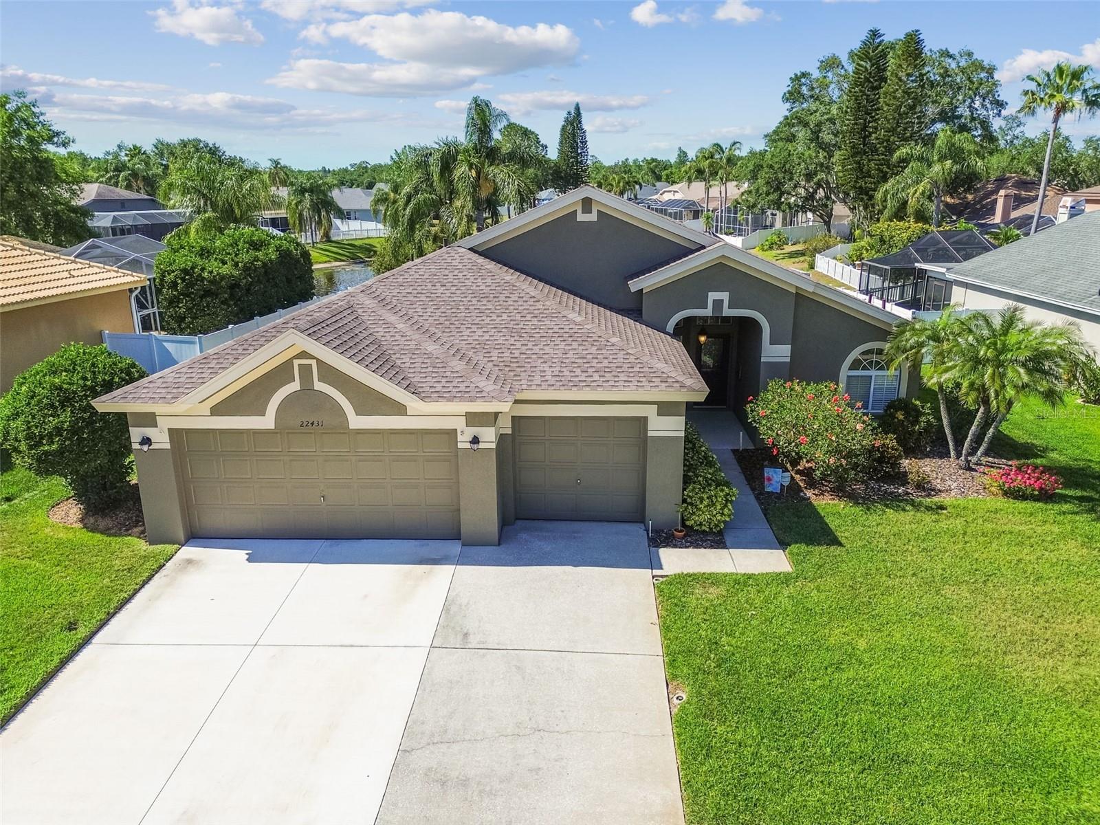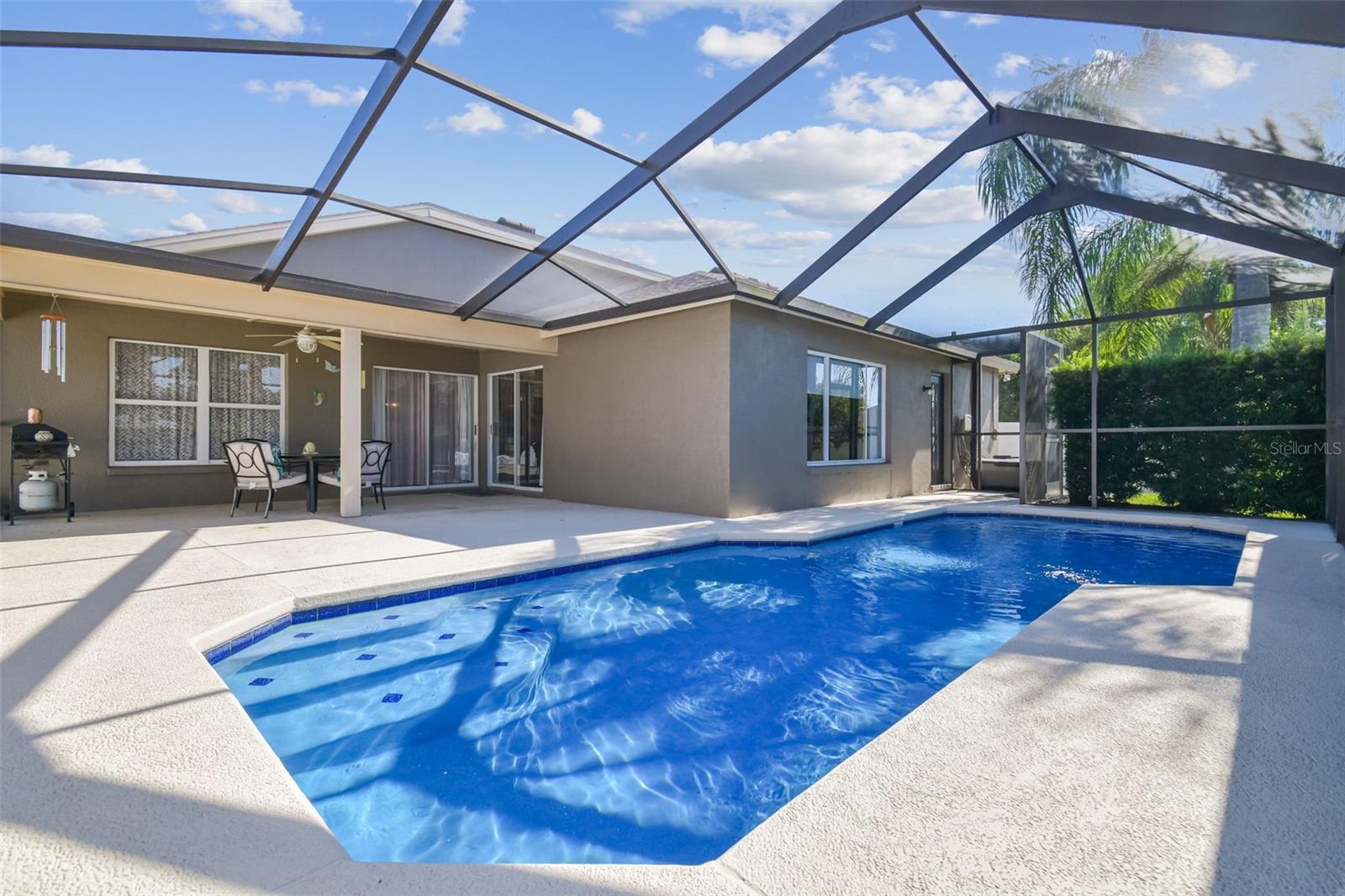 This waterfront POOL home boasts 4 bedrooms, 3 bathrooms, and a 3-car garage where even your car can stretch out comfortably and is now available for you! Located in the highly desirable community of Willow Bend, overlooking a peaceful pond. High ceilings and an open floor plan create a spacious ambiance, while the dining area and formal living room offer an elegant space for your gatherings. The kitchen boasts newer stainless-steel appliances, granite counters, and pristine white cabinets. Feel like royalty, in the primary bedroom offering double walk-in closets and a hallway leading to your clean and bright en-suite bathroom featuring a double sink vanity, garden tub, and shower. The 4th bedroom, combined with the pool bath, would make an ideal in-law suite or a teen retreat. Durable hardwood flooring enhances all guest bedrooms, adding warmth and charm to the home. The spacious laundry room offers 2022 LG Smart Washer and Dryer with a wash tub. Did someone mention weekend barbeques and pool parties? The screened lanai and pool with an expansive pond view is ready for you. The pool was recently resurfaced and re-tiled in 2021, and a new energy-efficient variable speed pool pump was installed in 2023. Many recent upgrades including a NEW ROOF installed in 2020, comes with a one-time transferable warranty, NEW AC in 2023, NEW LG Smart Refrigerator in 2022, exterior painted in 2021, pool cage painted and re-screened in 2022, just to name a few! This home has been well-maintained and is ready to embrace a new chapter with you. Come see why it's the perfect home for you to enjoy! You will want to see this exceptional home in person.