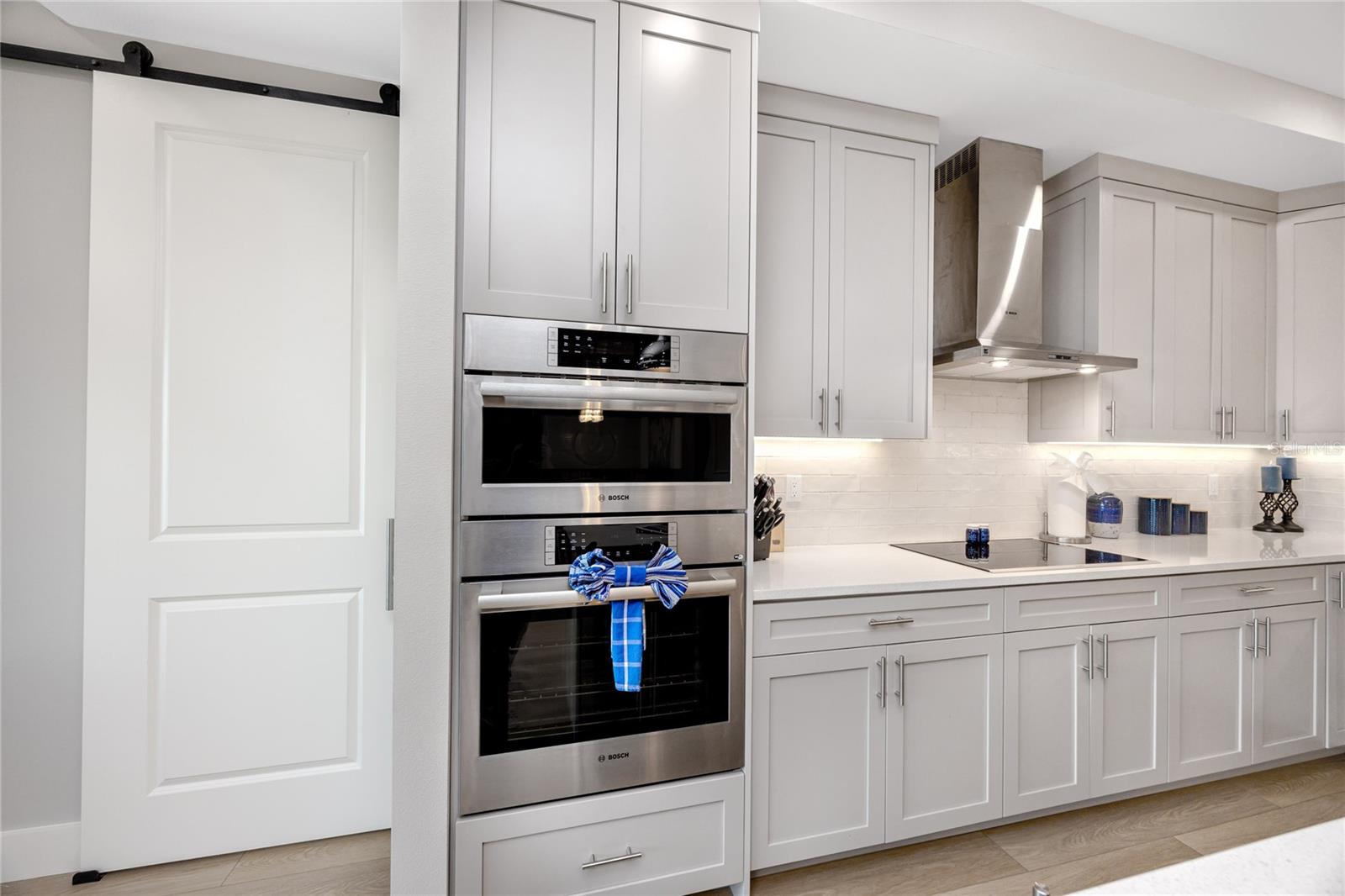Built in 2022, this meticulously maintained 4-bedroom, 2.5-bathroom luxury condo blends modern sophistication with beachside charm. Located in Madeira Beach Town Center, a premier redevelopment, this residence offers easy access to waterfront views, shopping, dining, and entertainment along the Gulf Beaches. This top-floor unit features high ceilings, chic pendant lighting, and neutral woodgrain luxury vinyl flooring, creating a bright and inviting atmosphere. The open floor plan seamlessly connects the main living areas, perfect for relaxation and entertaining. The gourmet kitchen boasts solid wood 54-inch white underlit cabinetry, sleek subway tile backsplash, and high-end Bosch stainless steel appliances. A spacious center island with Cambria quartz countertops, a built-in wine refrigerator, and a breakfast bar makes it ideal for hosting guests. Beyond the kitchen, the living area is bathed in natural light, with oversized hurricane-impact sliding doors leading to a private balcony with breathtaking sunset views. The primary suite is a peaceful retreat, accessed through a modern barn door, and features oversized windows with wooden shade shutters, a private balcony entrance, and a large walk-in closet. The en-suite bath offers quartz countertops, dual sinks with a sitting vanity, built-in shelving, a private water closet, and a seamless glass walk-in shower with multiple showerheads and an overhead rain feature. The split floor plan ensures privacy, with three additional well-appointed bedrooms. The second bathroom continues the home’s luxurious aesthetic with quartz countertops and a tub-shower combination. An in-unit washer and dryer add extra convenience. Located steps from a waterfront recreation park, Madeira Beach City Hall, the post office, and library, this home is also near John’s Pass Village and Boardwalk, a hub of waterfront restaurants and entertainment. The Harbor is one of the few buildings in Madeira Beach that allows short-term rentals with a flexible 14 day minimum policy, making it ideal for investors. There are no pet weight restrictions, making it a great option for pet owners! While the sellers have rarely rented the unit, strong biweekly rental income potential is available upon request. Residents enjoy two designated under-building parking spaces, private storage, a gated garage entry, and key fob lobby access. The heated pool and hot tub provide a serene escape overlooking the harbor. With an unbeatable location, modern elegance, and exceptional amenities, this Madeira Beach luxury condo offers a rare opportunity to experience coastal living.