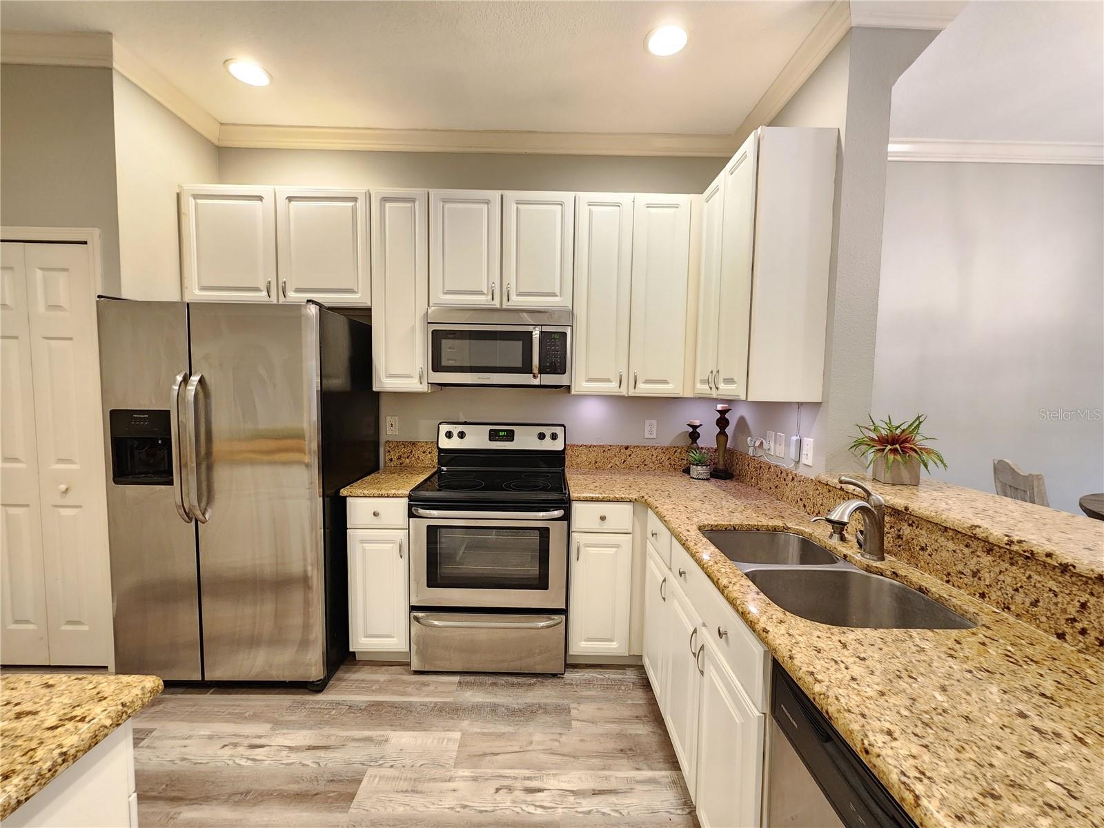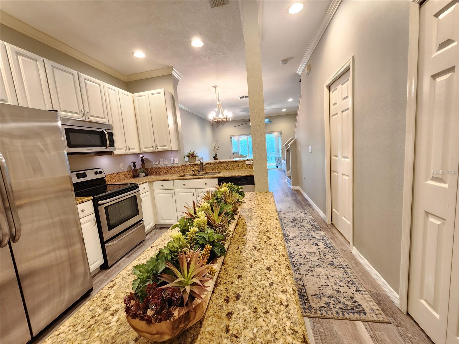 One or more photo(s) has been virtually staged. NO HURRICANE DAMAGES OR FLOODING FROM EITHER STORMS! Welcome to the Resort Style living on the exclusive KAPOK GRAND GATED COMMUNITY! This 2 Bedrooms/2.5 Bathrooms/1 Car attached garage/Bonus Room, is the best luxury location to live under a SMALL HOA MAINTENANCE FEE ($410 per month) WHICH INCLUDES CABLE TV, INTERNET, WATER, TRASH, RECYCLING, SEWER, ROOF, LAWN CARE, PEST CONTROL, EXTERIOR & GROUND MAINTENANCE. The amenities are endless. It has a CLUBHOUSE, REC CENTER, HEATED/COOL POOL, NEW FITNESS CENTER with all NEW EQUIPMENTS, LOCKER ROOM, GAME, READING & MEETING ROOM, SCENIC WALKING TRAILS AROUND A PRIVATE POND, BARBECUE AND PICNIC AREA, A PET FRIENDLY (LIMIT 2 WITH NO WEIGHT RESTRICTIONS, LEASING IS ALLOWED AND OPEN FOR ALL THE AGES. REALLY STRONG RESERVES AND NO ASSESSMENTS. The Hoa fees have been low for years which makes it really high demand to own and reside in. As you step inside, you will be impressed with the lovely layout & open concept, high ceilings with CROWN MOLDING, gourmet renovated KITCHEN WITH BREAKFAST BAR & ISLAND granite countertop and SS APPLIANCES, a combo of living room/ dining room and through the sliding door it leads to the Florida / Bonus Room, another addition of 155 sq ft added with HURRICANE IMPACT WINDOWS / DOOR (2021), ($10,000 value) UPGRADES are NEW LUXURY VINYL FLOORING (2024) THROUGHOUT THE HOUSE, NEW SMART REMOTE SHADES ($2300) ON THE SLIDING DOOR, NEW FIXTURE LIGHTS, NEW INTERIOR PAINT, BRAND NEW LG WASHER & DRYER, NEW CUSTOM WALK IN CLOSET, GENERATOR SWITCH AND OUTLET (2021, $1900) so the buyer can have the electricity on the entire house in case of losing power. You can enjoy the full privacy in the backyard with no rear neighbors. Both PRIMARY & SECOND BEDROOM HAVE VAULTED CEILINGS & have large Ensuite Bathrooms. Laundry and 2 full baths are located on the upper floor for convenience. This 1 car garage has also an extra storage area that does not interfere with parking your vehicle. You will find extra & guest parking located throughout KG. All buildings are fully equipped with fire sprinklers for extra safety. ROOF REPLACED in 2021. LOW HOMEOWNER INSURANCE. It's centrally located just minutes to NEW Seminole Shopping Center, with movie theater, fine dining and the entertainment. Enjoy the advantage of living near less than 5 min from Madeira/Redington & Gulf Beaches. PRICE TO SELL! BRING ALL THE OFFERS!