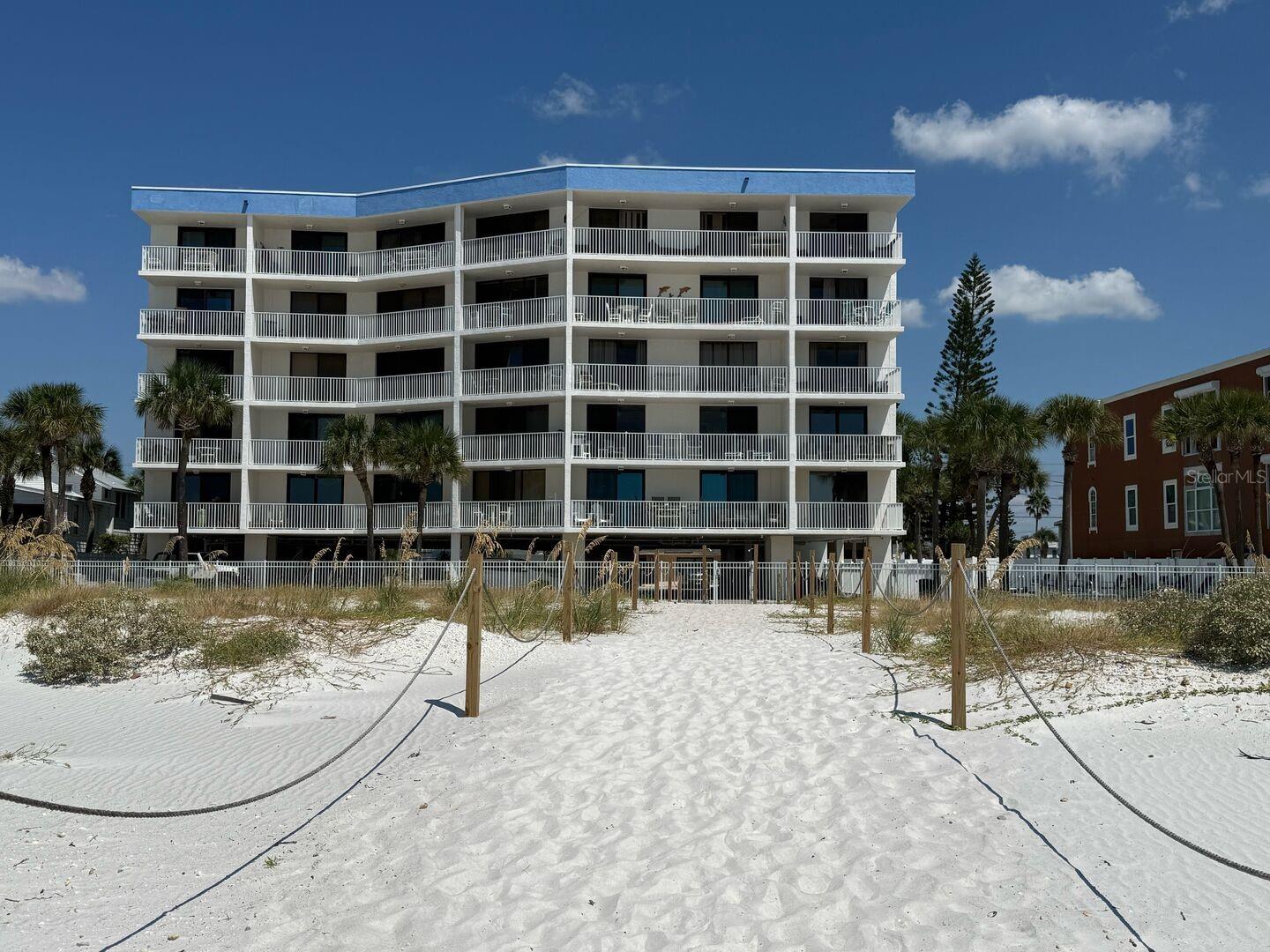 Coastal Elegance & Gulf Front Views! Experience the ultimate Florida lifestyle in this stunning front-row condo located directly on the sugar-white sands of Madeira Beach. Chambre 103 offers more than just a home; it offers a front-seat view of the ocean and the relaxing rhythm of the tide. Step into a bright, open-concept living space where floor-to-ceiling natural light meets cozy coastal charm. This meticulously maintained 1-bedroom, 1-bathroom unit is designed for both comfort and functionality. Selling fully furnished with all contents included. Start your mornings and end your evenings on your private balcony with breathtaking views overlooking the turquoise waters of the Gulf. Features a spacious bedroom with a king-sized bed and a secondary full sleeper sofa in the living area. A fully equipped, modern kitchen with all the essentials, perfect for preparing fresh local seafood to enjoy beachside. Rarely does a beachfront opportunity like this hit the market! Located on the quiet, tucked-away Gulf Lane, this well-maintained 25-unit community is the hidden gem of Madeira Beach. From the convenience of your reserved parking to the luxury of a beachfront heated pool and spa, your beachside oasis awaits!