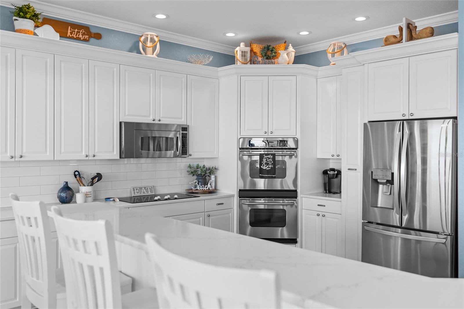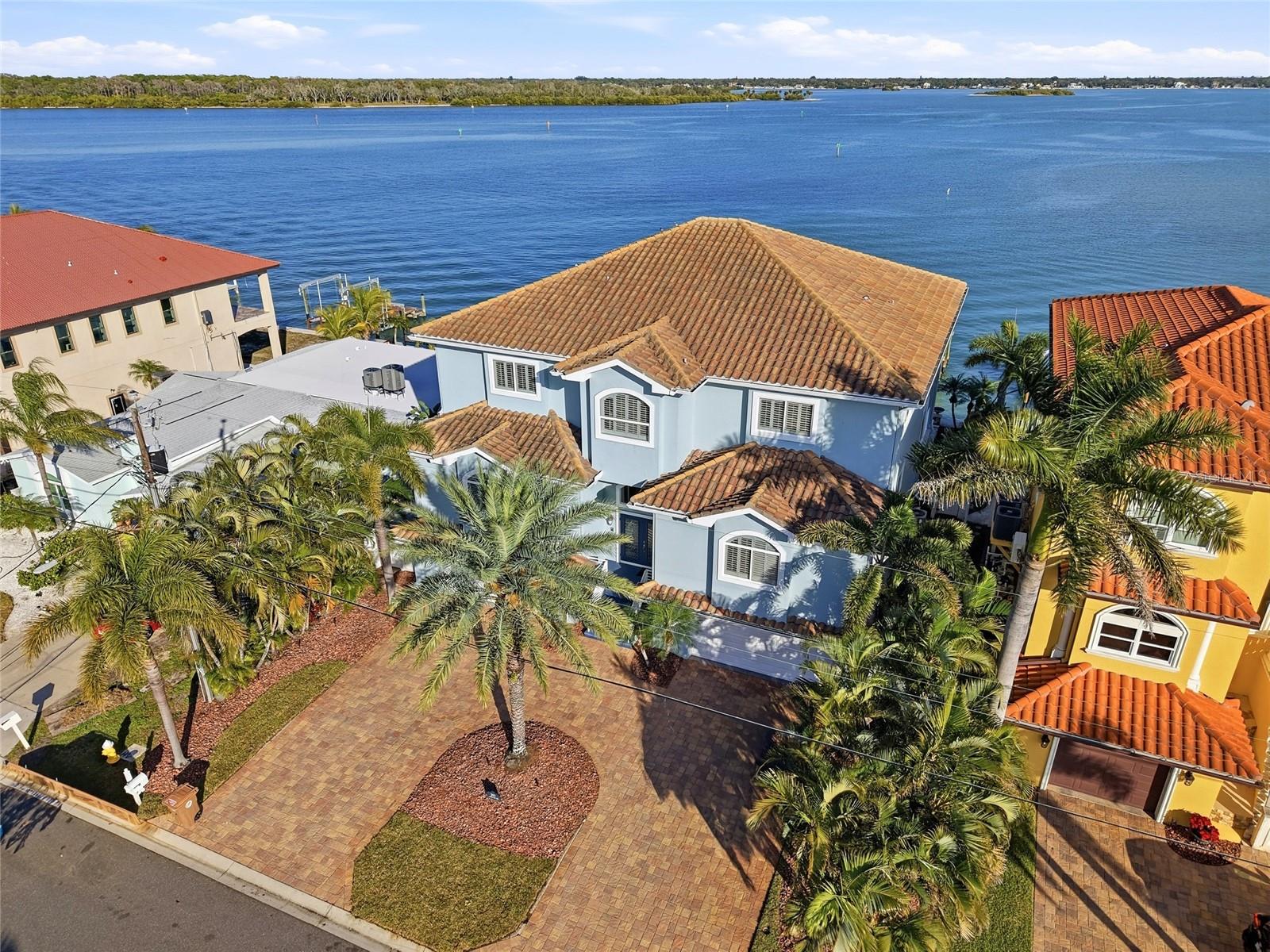 Rare waterfront estate on an oversized 70 x 120 lot offering 5117 ft.² of heated living space, exceptional privacy, and panoramic open water views. This 5-bedroom, 5-bath residence was built in 2006 and is perfectly suited as a primary home, vacation retreat, or seasonal rental (6 month minimum). Designed for both everyday comfort and grand entertaining, the home features, and expensive open-concept layout, generous sized en-suite bedrooms, with soaring windows, framing wide views of Boca Ciega Bay, Little bird key, Veterans Memorial Park, and Johns Pass sandbar. Automatic blinds, accent, the oversized windows, while a private elevator with updated equipment provides seamless access throughout the home. Outdoor living is truly exceptional. Enjoy a resort-style saltwater pool with a heated spa, Firestone pedestal features, and a fully equipped outdoor kitchen-perfect for hosting large gatherings or relaxing with family and friends. The private dock is equipped with water and electric, dual 12,000 pound and 20,000 pound boat lifts, and green dock lights that attract fish at night, creating an ideal evening, fishing spot. Kayak, boat, or simply watch dolphins glide by at sunrise. 1.2 miles away from sugar sand beaches of Madeira and close to Johns Pass Village.