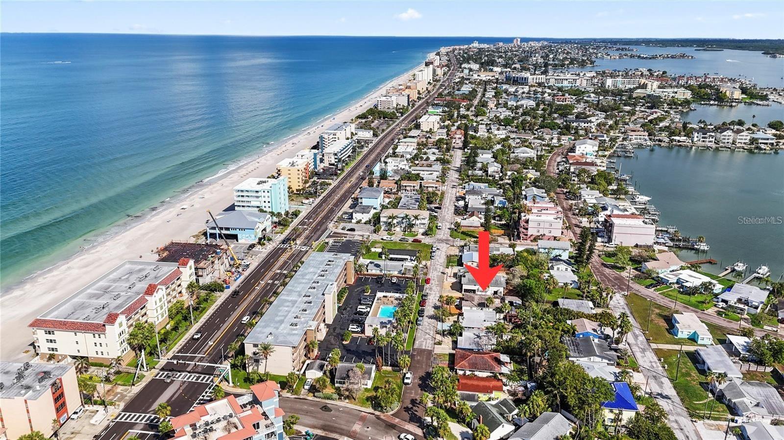 Here’s your chance to own an affordable BEACH HOUSE in the heart of Madeira Beach, just steps from the sand and moments from breathtaking Gulf sunsets. Perfectly positioned with beach access directly across the street at Caddy’s, this property offers the ultimate coastal lifestyle in one of the most desirable locations on Florida’s Gulf Coast. This 3-bedroom, 3-bath beach cottage features an open-concept layout with a spacious kitchen, living, and dining area designed for easy living and entertaining. The large primary suite includes a walk-in closet and private ensuite bath, adding comfort and functionality. Step outside to a truly unique and fully fenced backyard oasis built for entertaining, complete with a custom outdoor bar, dedicated cornhole court with sand alley, paver patio, raised wooden deck, and ambient string lighting. The garage has been thoughtfully converted to enhance the outdoor experience and includes a 12x9 climate-controlled space—ideal for storage, tools, or even a keg setup. A large Lifetime shed adds even more storage flexibility. The low-maintenance yard, paved driveway, and ample parking make this property as practical as it is fun. Originally renovated in 2015, the home offers a strong foundation for its next owner, including mostly (around 90%) updated electrical, PVC plumbing, hurricane-impact windows and doors, and a roof approximately 10 years old. The home sits on a raised crawl space. While the property did experience flooding during Hurricane Helene, it has been officially deemed NOT substantially damaged, offering a valuable opportunity to restore, customize, or reimagine the space to your vision. Flood insurance is assumable, providing additional peace of mind. Located just minutes from John’s Pass, local restaurants, shopping, and entertainment. With trolley access nearby, this home is ideal as a primary residence, vacation getaway, or investment property.**Interior pictures include both pre and post storm**