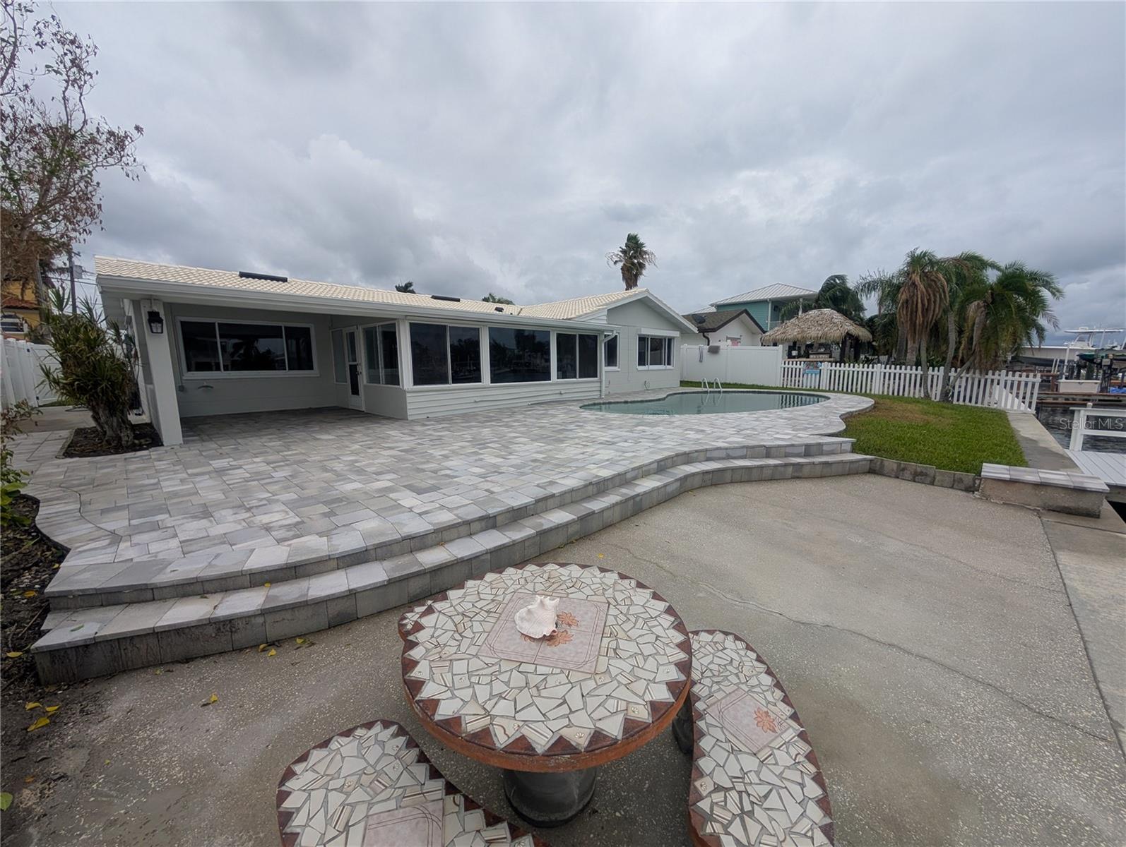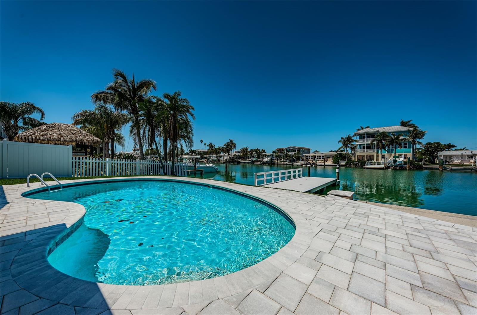 Beautiful Lot on best street on Crystal Island - just a few minutes boat ride to Johns Pass and out into the Gulf of Mexico! This Home did sustain some flood damage from Hurricane Helene and is being sold as is, seller makes no warranties regarding home's condition or feasibility of a rehab project. Featuring 3 bedrooms, 2 bathrooms 2-Car Garage, 1800 htd. sqft, all newer windows with roll-down shutters, this is the perfect time to grab a beach home and add your own custom touches and design the ideal layout. All cabinets, floors, baseboards & appliances removed. 10 minutes boat ride to Johns Pass Bridge and into the Gulf of Mexico for deep sea fishing or pleasure riding along the gorgeous white sandy Gulf coast! Split floorplan home with open great room and "office corner," large Florida/Dining room with panoramic windows for optimal water views from nearly every room! 26-year old TILE roof with gutters, new front door, new electric panel box, HIGH-IMPACT garage door, new floor paint, new Kohler toilets, built-in ceiling lights in addition to lighted ceiling fans in all rooms. Frolic in the newly surfaced inground pool or enjoy the sun under the covered or open back patio by the water. A BRAND-NEW DOCK (new seawall CAP) allows for installation of your preferred boat lift! Concrete seawall approximately 27 years old and serviceable. Prestigious Crystal Island features underground cables! White vinyl fencing, sprinklers on reclaimed water, and the double driveway was paved for a clean and inviting curb appeal. Crystal Island/ Madeira Beach has a 6-month minimum rental policy. CASH ONLY