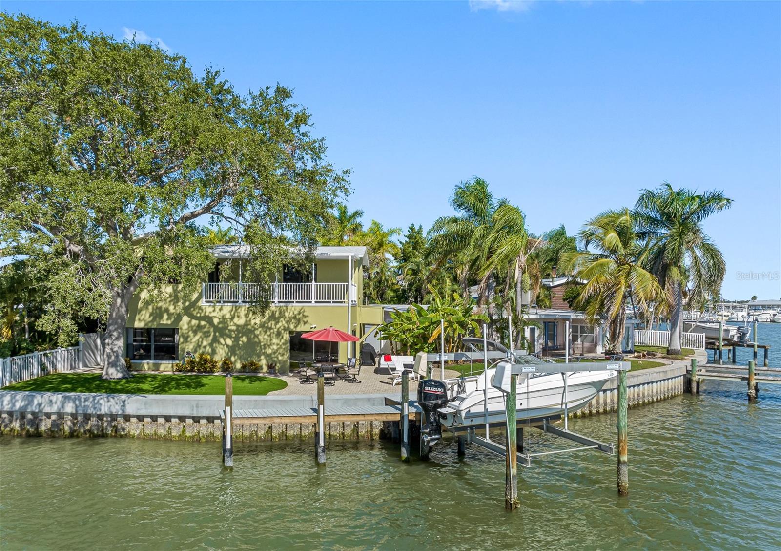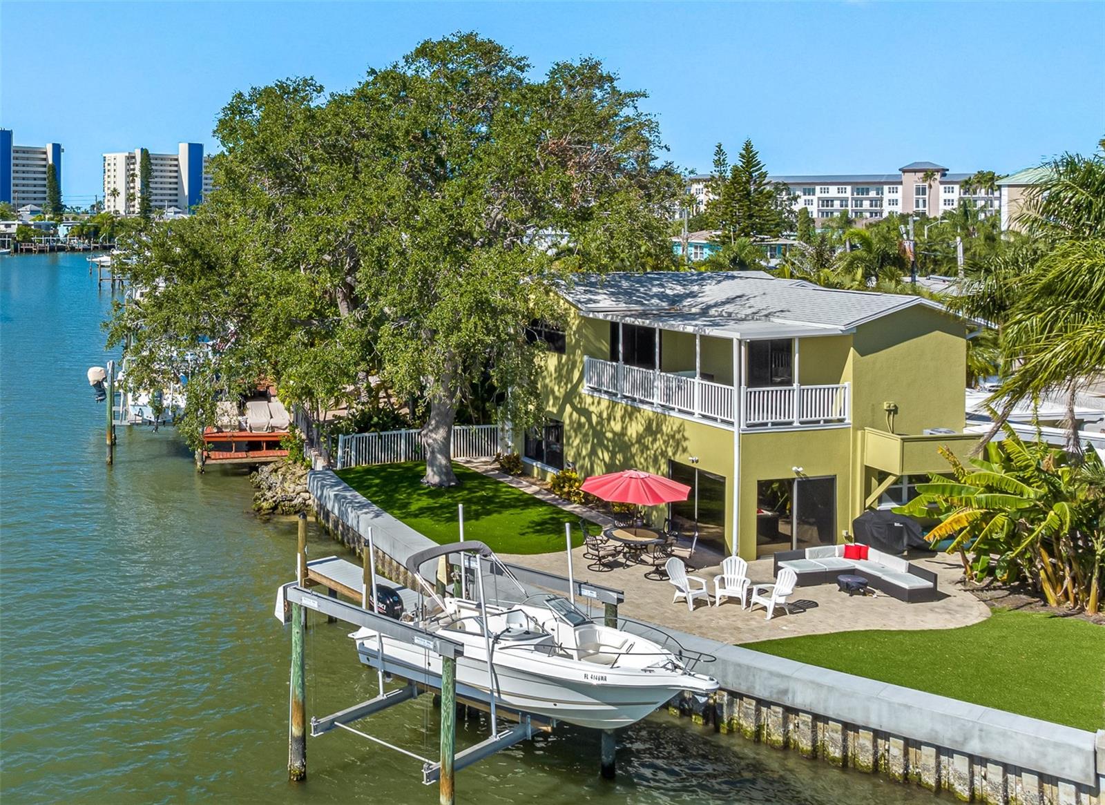 Location, Location,Location ! A very rare opportunity to own one of the most desirable locations in Madeira Beach. A true boater's, fishermen's and beach enthusiast's paradise. Positioned on the point at the end of a quiet cul-de-sac on lot with 80' of seawall frontage. Only a short boat ride through John's Pass out to the open waters of the Gulf of Mexico and a short walk to the pristine sandy white beaches. One block off the beach you will find this remodeled 2 story, 2050 sq ft. 3 bed 2 bath Waterfront home that features a new seawall (2022), new dock (2022), and new backyard turf (2022). The large windows and sliding doors provide plenty of natural light. Walking distance to restaurants, bars, grocery store, the beach, post office the list goes on and on. Don't miss out on purchasing this one of a kind beauty.