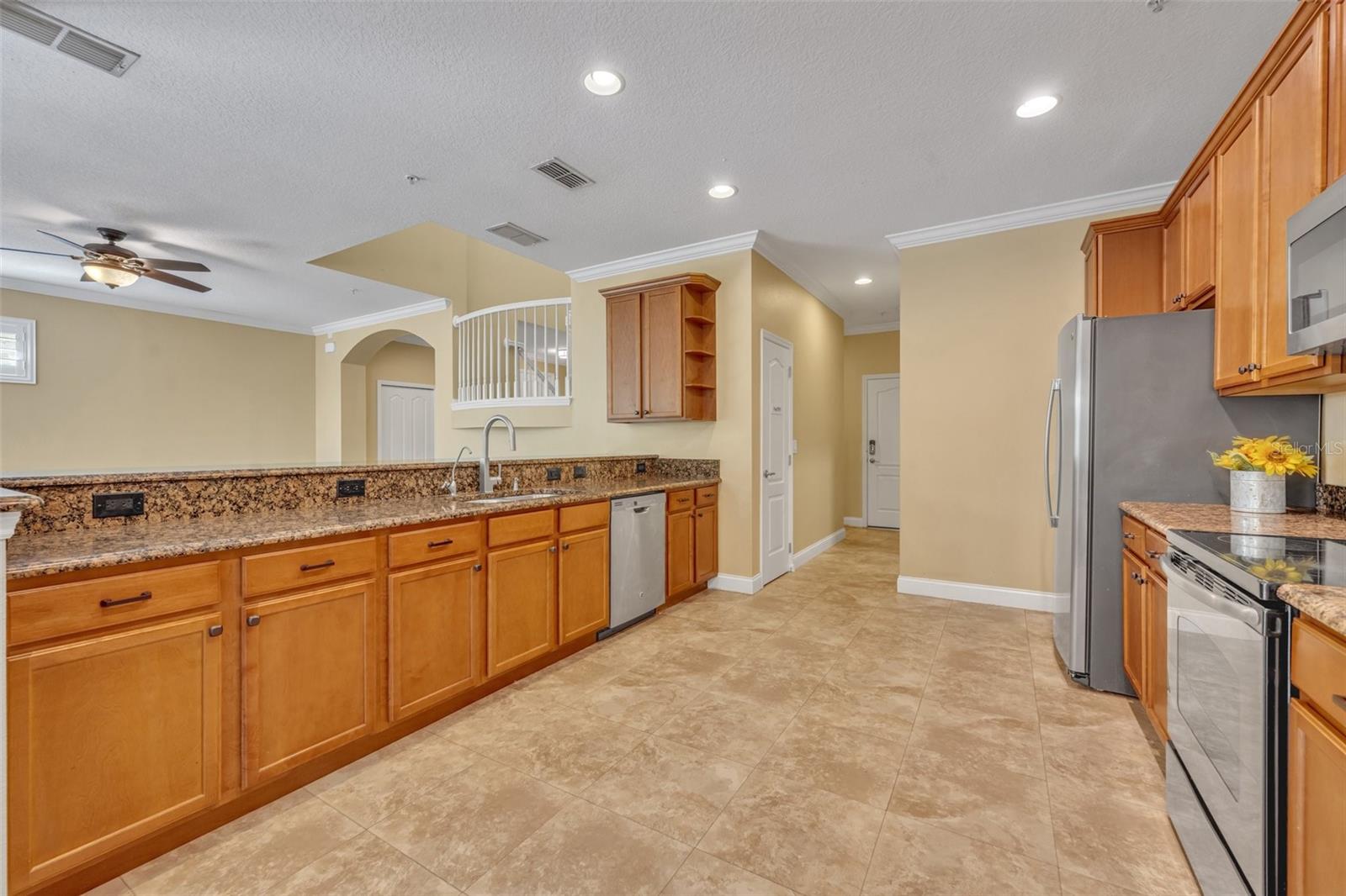 One or more photo(s) has been virtually staged. Welcome to 1938 Michael Tiago Circle—a luxurious and spacious END UNIT 4-bedroom townhome with WATER VIEWS in the charming gated community of Maitland Village. Prepare to be impressed by this pristine home featuring beautifully maintained landscaping and a brick-paved driveway leading to your personal 2-car garage with BRAND NEW water heater. A private front entrance opens to a large foyer that flows into the great room, where oversized glass doors lead to a covered back patio with serene pond views. The stunning kitchen is equipped with stainless steel appliances, an oversized walk-in pantry, granite countertops, and a breakfast bar that opens to the great room, perfect for hosting guests. Adjacent is a 17 x 13 dining room for formal gatherings. The first floor also includes a spacious laundry room, powder room, and a bedroom with two closets and French doors—ideal for a home office or den. Upstairs, a cozy loft area, two additional guest bedrooms with walk-in closets, a full bath, and a fantastic primary suite await. The primary suite offers dual granite vanities, a garden tub, a separate shower, a private water closet, and a huge walk-in closet. The HOA covers 250-channel cable, 500 Mbps internet, water, sewer, trash, recycling, landscaping, streetlights, accounting and management services, pool, clubhouse and gate access. Additional features include a 2-car EV-ready garage, custom shutters, wood floors, ceiling fans, 9'2" ceilings, and a prime location near I-4, SR 414/429, excellent shopping, dining, and the Genesis Health Club/Sportsplex (formerly the RDV). ALSO AVAILABLE FOR RENT $3000 PER MONTH. WELCOME HOME!