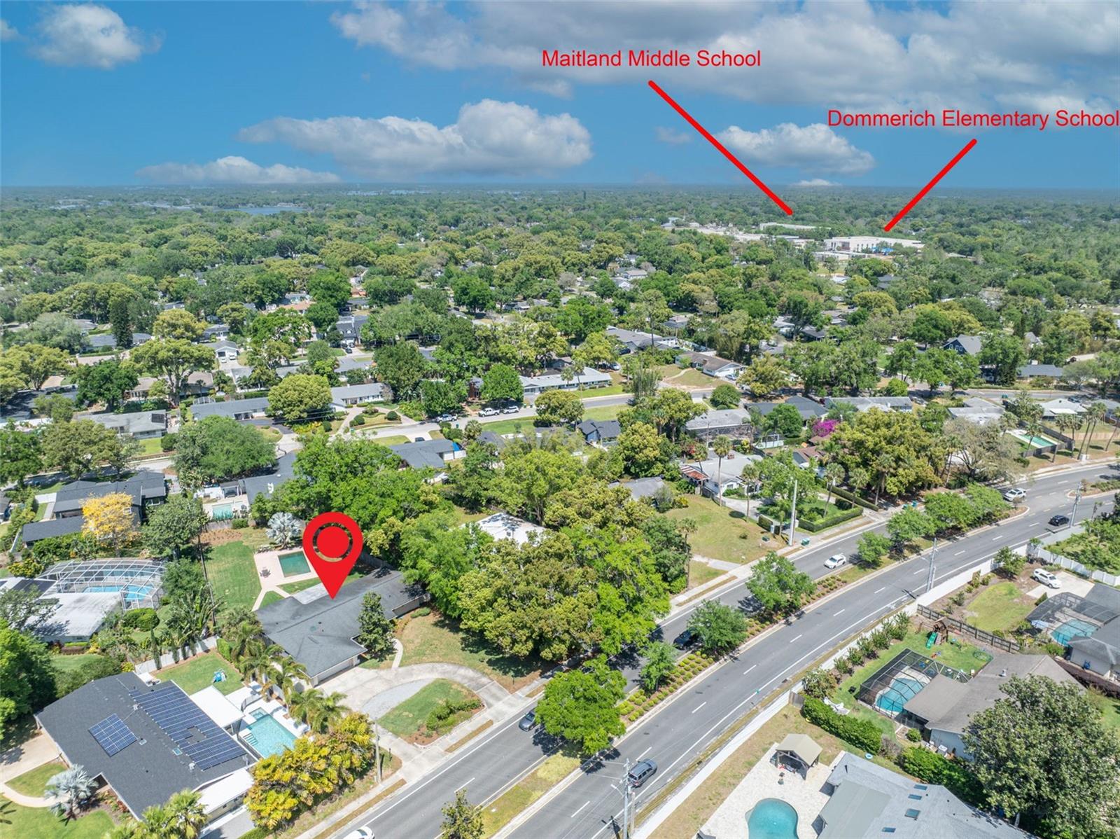Welcome to this beautifully updated Maitland home in the coveted Dommerich Estates neighborhood. This home is the best value in Maitland with an assumable 2.75 Percent interest rate available! The spacious 4 Bedroom, 3 Bathroom layout features a hard-to-find split floor plan plus an abundance of storage and space that is rare in mid-century homes. The oversized half-acre homesite provides ample room to safely store your boat and RV or even explore the possibilities of adding a guest house / accessory dwelling unit (ADU) by the sparkling pool. Step inside the front of this home to discover a light-filled living room with stunning picture windows that flood the space in natural sunlight. The bright and airy feel continues as views of the backyard oasis are visible from both the living and dining rooms. A large Florida Room along the back of the home offers additional living space, ideal as a home office or just a relaxing retreat. Updates in the kitchen include granite countertops and stainless steel appliances, making it a chef’s dream. Just off the kitchen is a spacious indoor laundry room, complete with a butler's pantry and extra storage. Fresh paint and new flooring make the bedrooms truly move-in ready! Located in the heart of Maitland, you’re just minutes away from Maitland Community Park, Maitland City Centre, and the celebrated shopping, dining, and cultural attractions of Winter Park. Utilities are reliable with underground electrical lines completed by Duke and city sewer service already in place. Through the voluntary HOA, residents have access to the Winter Park Chain of Lakes from the community park and boat ramp on Lake Minnehaha. Zoned schools include Winter Park High as well as Dommerich Elementary and Maitland Middle, both of which are minutes from the home via walking sidewalks or bike lanes. This amazing home is eligible for an assumable mortgage with a 2.75 interest rate for qualified buyers! Don’t miss the opportunity to make this extraordinary Dommerich property yours!