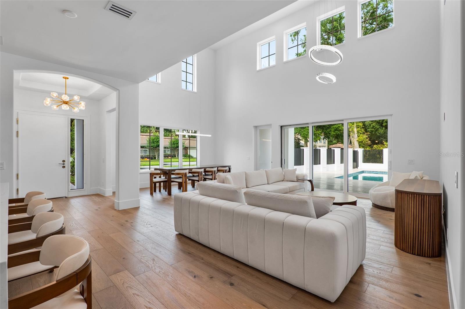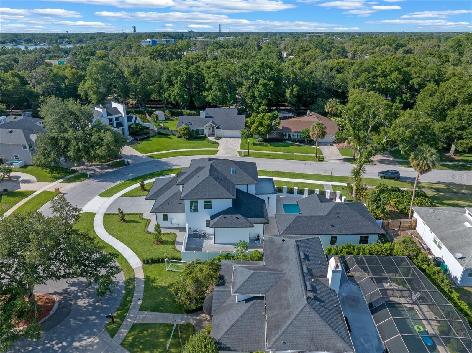 Presenting a stunning new construction residence located on a quiet cul-de-sac offering a seamless blend of luxury, functionality and modern design. The main home features four spacious bedroom suites, a dedicated office and a bonus/flex area, 4 full baths and 2 half baths, while the property also includes a rare-to-find one-level detached 1,143 sf 2BE/2BA guest house that includes a kitchen and a living area... *** ideal for for multi-generational living, spacious home office, live-ins or long term guests… Beautiful wood floors extend throughout the main house living spaces, complemented by designer porcelain tile in all baths. The open floor plan showcases soaring 21-foot ceilings in the great room and dining area, anchored by a beautiful chef’s kitchen complete with a dual-fuel range, quartz waterfall island, custom blended cabinetry and an adjacent walk-in pantry. A wall of sliding glass doors in the great room opens to the expansive covered lanai and new Pebble Tec pool with autofill and auto-drain features, all surrounded by travertine decking and a masonry and aluminum privacy fence. The first-floor primary suite offers a serene retreat with private pool courtyard views, a custom walk-in closet and a spa-inspired bath with marble floors, a spacious walk-in shower and a separate soaking tub. Upstairs, there are three additional bedroom suites and a versatile loft to provide ideal space for relaxation lounge area. The side-entry two-car garage includes epoxy floors, EV charging readiness and direct access to the mudroom, laundry, pantry and kitchen for everyday convenience. Designed for year-round entertainment, the covered lanai is stubbed and ready for a summer kitchen, with additional outdoor space available for expanded amenities. Both main and guest houses are bathed in natural light thanks to generous architecturally enhancing windows and glass doors. Modern comforts include smart lighting, exterior security cameras and a built-in audio system. On a quiet cul-de-sac, this property is within visiting or biking distance to Maitland Community Park, a 25-acre wooded park with tennis courts, basketball, playgrounds, trails and pavilions! Enjoy easy access to other downtown Maitland amenities, 7-10 minute drive to Park Avenue in downtown Winter Park, quick access to major roadways & I-4, downtown Orlando, area hospitals, and both executive and international airports... Zoned for regarded Lake Sybelia Elementary, Maitland Middle and Winter Park High School, this exceptional home is a rare offering in a secluded, wonderful neighborhood.