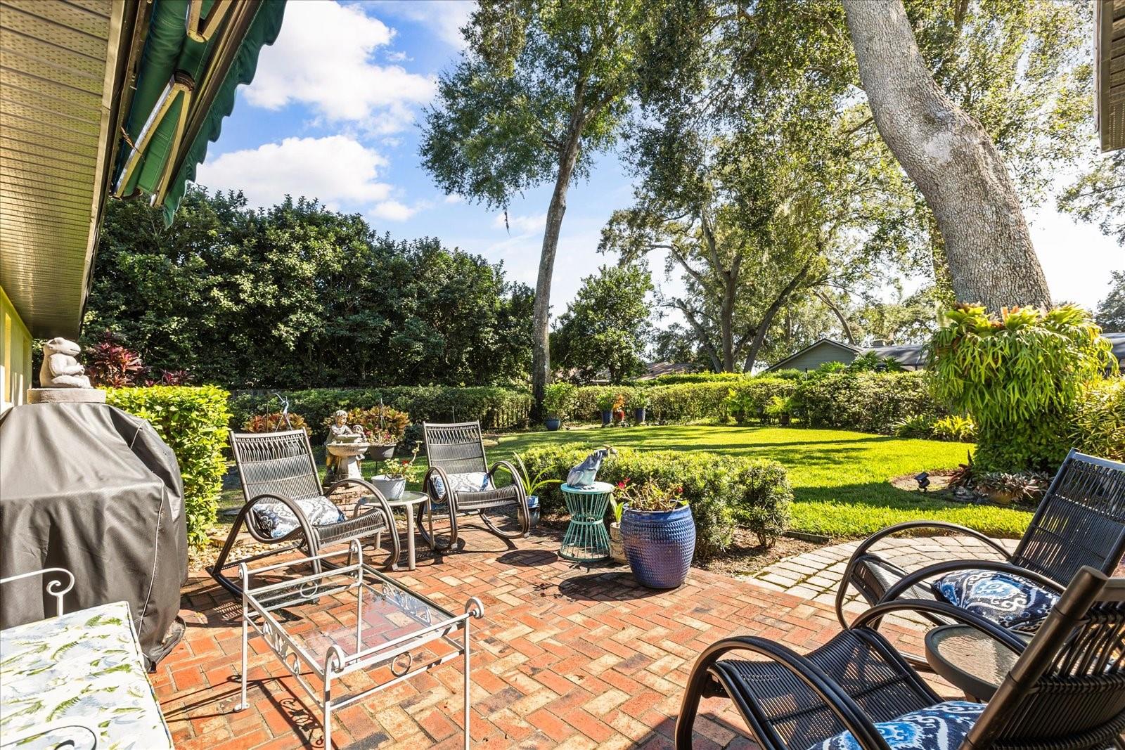 Nestled on a gorgeous tree-lined street, this charming residence exudes warmth, elegance, and timeless appeal. From the moment you arrive, the excellent curb appeal draws you in — with an established landscaped yard, paver driveway and walkways, classic brick exterior with shutters, and newer front and garage doors that set the tone for what awaits inside. Step into an inviting home where quality craftsmanship meets modern updates. The updated kitchen is a true showpiece, featuring granite countertops, solid wood cabinetry, tiled backsplash, breakfast bar with pendant lighting, and stainless steel appliances, including a Bosch dishwasher (2024) and a new double oven (2021). Throughout the main living areas, you’ll find gleaming hardwood floors and crown molding, enhancing the home’s sophisticated style. Large windows and solar tubes in the kitchen and family room fill the space with beautiful natural light. Enjoy two cozy wood-burning fireplaces — one in the family room and one in the living room — each flanked by built-in shelving and cabinetry. The living room’s large picturesque window offers the perfect spot for seasonal décor or simply enjoying the tranquil view. A separate dining room with built-in cabinets, crown molding, and sliders to the back porch makes entertaining effortless. The primary suite is spacious and serene, featuring a walk-in closet, crown molding, and a beautifully updated en suite bath with granite counters, tiled shower with glass enclosure, updated lighting and fixtures, and a new TOTO toilet. The three oversized secondary bedrooms offer ample closet space; one is currently used as an office. The updated guest bath includes granite countertops and modern finishes. The large inside laundry room, conveniently located off the kitchen, provides abundant cabinet and counter space, a utility sink, and two pantries, plus a private half bath with a new high-rise toilet for guests. Step into the tiled Florida room, where large windows and motorized retractable screens invite you to relax and enjoy the gorgeous, manicured backyard views. Off the Florida room, a brick porch with a retractable awning and coach lights provides a peaceful spot for morning coffee or evening gatherings. The fenced backyard features a paver-lined walkway and lush landscaping for added privacy and charm. Recent updates include: HVAC (2023) • Whole House Water Softener (2021) • Washer (2023) • Dryer (2019) • Water Heater (2021) • Porch Awning (2016) • Range (2021) • Refrigerator (2016) • Bosch Dishwasher (2024) • Roof (2013) replumbed (2002) Located near Maitland Avenue, I-4, and 414, this home offers easy access to dining, shopping, parks, the Maitland Farmers Market, and top-rated schools. Come see why homes in Stonewood are so highly sought-after — this one truly has it all: charm, comfort, and convenience in one of Maitland’s most picturesque neighborhoods.
