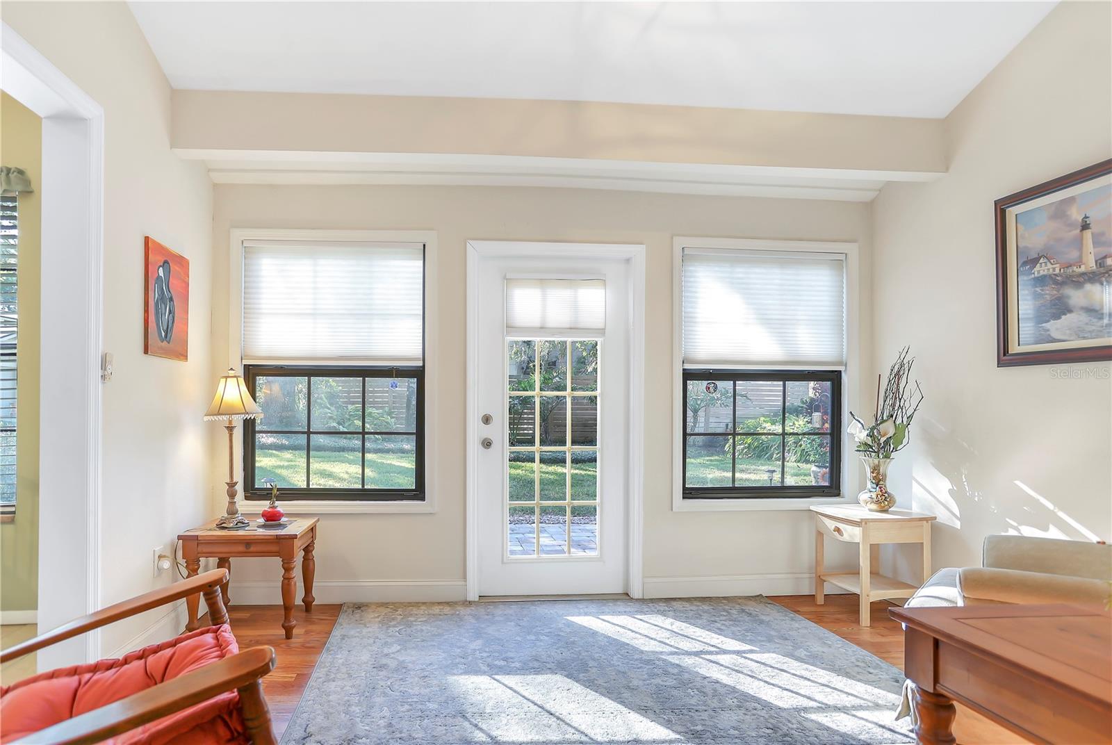Experience the comfort and convenience of living in one of Maitland's most desirable communities. This meticulously maintained home is designed to offer a harmonious balance of functionality, style, and adaptability, ensuring it meets your unique lifestyle requirements. Choose the layout that best suits your needs, whether it's a spacious three-bedroom, two-bathroom arrangement or a two-bedroom configuration complemented by a dedicated office space. Bathe in natural light in the inviting sunroom, an ideal spot to unwind with your favorite book or nurture a thriving indoor garden, no matter the season. The kitchen is equipped with abundant updated cabinetry and expansive granite countertops, providing ample storage and workspace. There's also plenty of room for a kitchen table, making mealtime both comfortable and convenient. A wood-burning fireplace creates a warm, welcoming atmosphere that links the living room, kitchen, and dining room. This open flow is perfect for hosting gatherings or enjoying everyday moments with family and friends. Situated on a corner lot, the home offers a generous outdoor area where you can relax and take in the lush landscaping from the comfort of your paver back patio. The attached one-car garage provides ample storage space, with easy access to the washer and dryer for added convenience. Enjoy the practicality of a community mailbox and extra guest parking spaces just steps from your front door. Take advantage of nearby amenities including the pool and tennis courts, enhancing your lifestyle with recreation and relaxation options. Rest easy knowing the home has been well cared for, with the HOA replacing the roof, gutters, skylights, and exterior paint in 2021. Additional improvements include a new garbage disposal, garage door opener, and screen front door. 2016 air conditioning system and PEX plumbing. Don't miss this opportunity to own a fantastic home in Maitland. With its exceptional features and thoughtful updates, you are sure to be impressed!