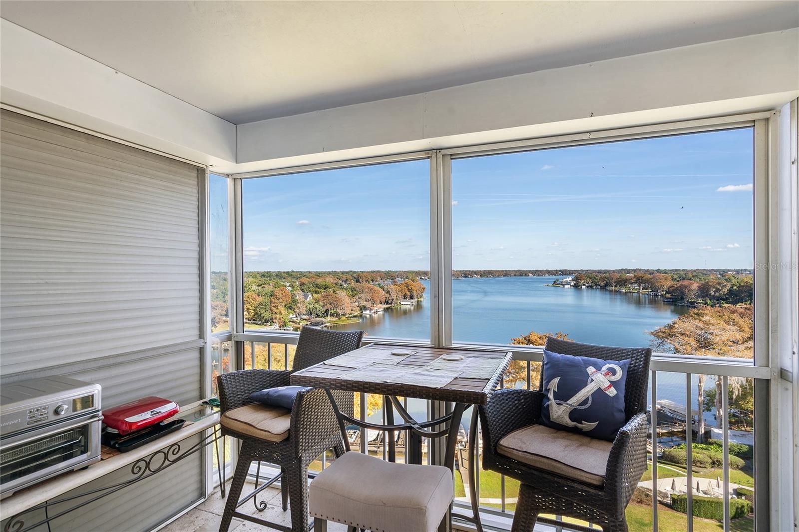 LAKEFRONT - Enjoy condo living at its finest from the top-floor Lake Maitland penthouse with million-dollar water and above treetop views, and beautiful panoramic sunrises from multiple rooms. This 9th-floor, 1,685 SF residence features 2 bedrooms, 2 baths, 2 multi-purpose rooms, and an open-concept kitchen, dining, and living area. Centered on the west cove of Lake Maitland, the largest of the Winter Park Chain of Lakes. The primary suite offers a spacious bath with an oversized walk-in shower and walk-in closet. The second bedroom includes guest bath access and a 6-ft soaking tub. Interior features include engineered wood flooring, plantation shutters, grand crown molding, and custom built-ins, display areas and doors. Three sets of French doors open to two balconies overlooking the lake. Balcony features electric hurricane shutters and a private 6’x5’ storage closet. Community amenities include resort-style pool and spa, boat docks, kayak racks, fitness center, clubhouse, and on-site management. Walk to Enzian Theater, Lake Lily Park, community center, library, dining, farmers market; minutes to Park Ave, Whole Foods, Winter Park Village, major roads, and 2 Costcos.