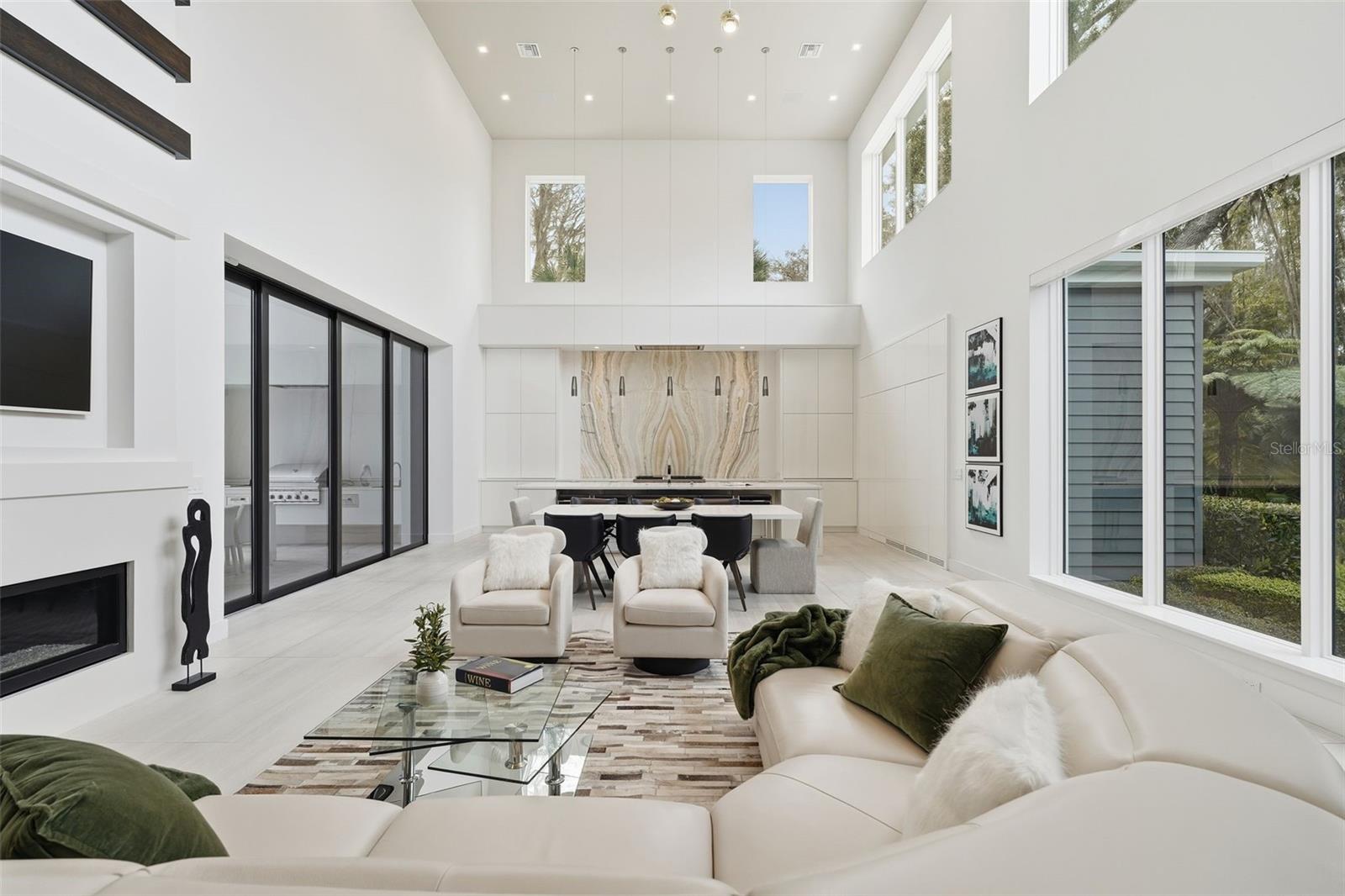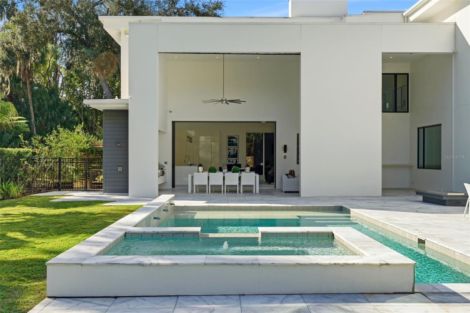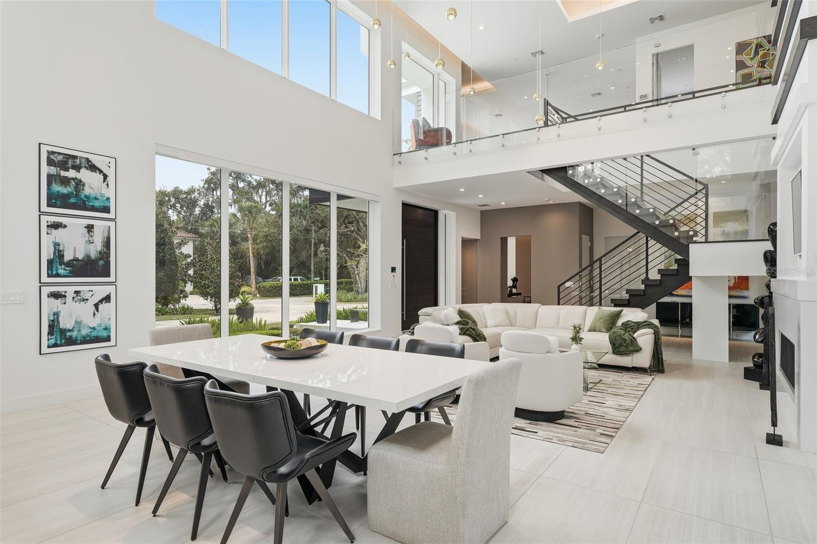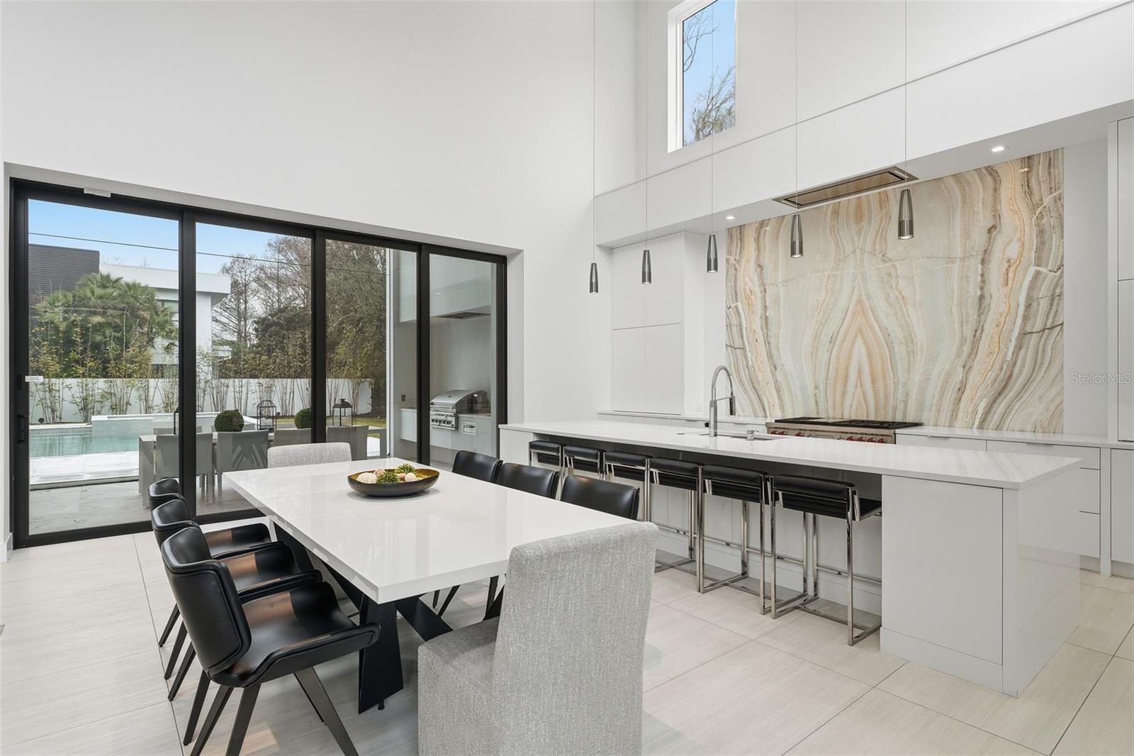 Nestled within the gated 9-acre Lake Maitland Owl Preserve, this striking contemporary residence—crafted by acclaimed green builder E2 Homes offers a rare blend of architectural distinction, privacy, and natural beauty. Surrounded by protected conservation land, the home delivers a serene retreat just minutes from the vibrant lifestyle of Winter Park. Designed by internationally recognized architect Jose Vengas, the home showcases dramatic ceiling heights, clean modern lines, and expansive glass walls that flood the interiors with natural light while blurring the line between indoor and outdoor living. The thoughtfully designed open-concept floor plan centers around a show-stopping chef’s kitchen featuring custom cabinetry, a statement marble backsplash, and a full suite of premium Sub-Zero and Wolf appliances perfect for both elevated entertaining and everyday living. Living and dining spaces flow effortlessly to a covered outdoor lounge with a fully equipped summer kitchen, overlooking a resort-style pool and spa designed for year-round enjoyment. Whether hosting guests or unwinding in private, this outdoor sanctuary is truly exceptional. All five bedrooms are generously sized private suites, each offering spa-inspired bathrooms with refined finishes and custom detailing. The primary suite is a true retreat, featuring a luxurious bath experience and expansive walk-in closets designed for both beauty and function. A first-floor owner’s suite provides exceptional flexibility for multi-generational living or guest accommodations, while the upper level reveals gallery-style walkways and an elegant terrace that highlights the home’s architectural artistry. With nearly 5,000 square feet of meticulously curated living space, this exceptional estate delivers modern sophistication in one of Central Florida’s most exclusive and private enclaves—just moments from Winter Park’s renowned dining, boutiques, and cultural destinations.