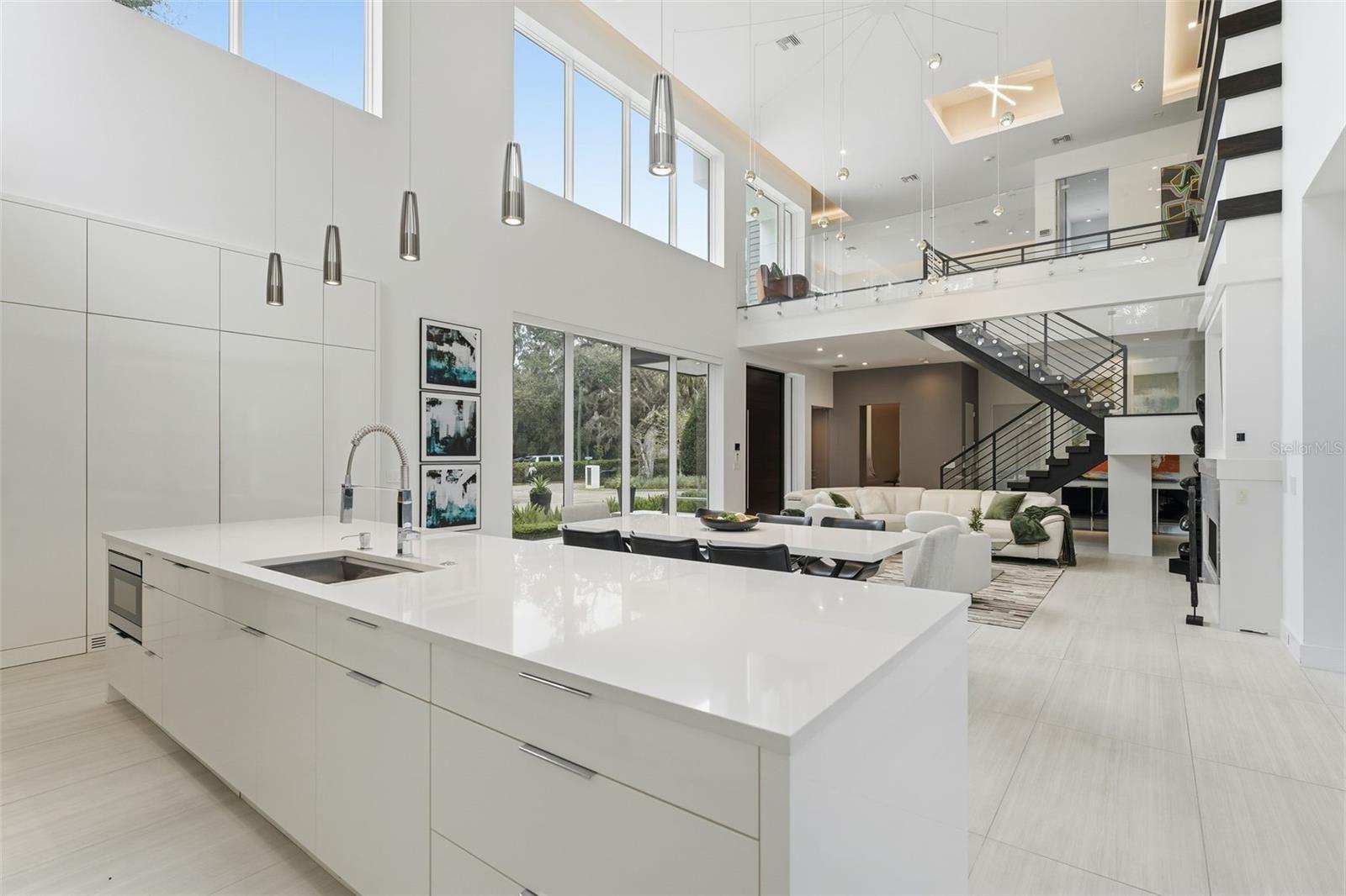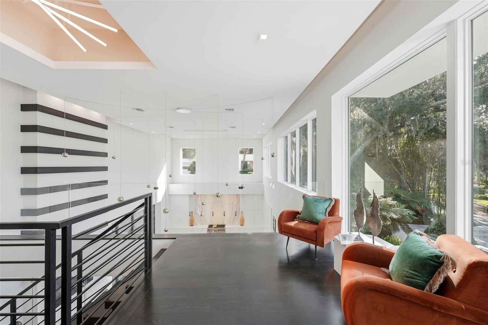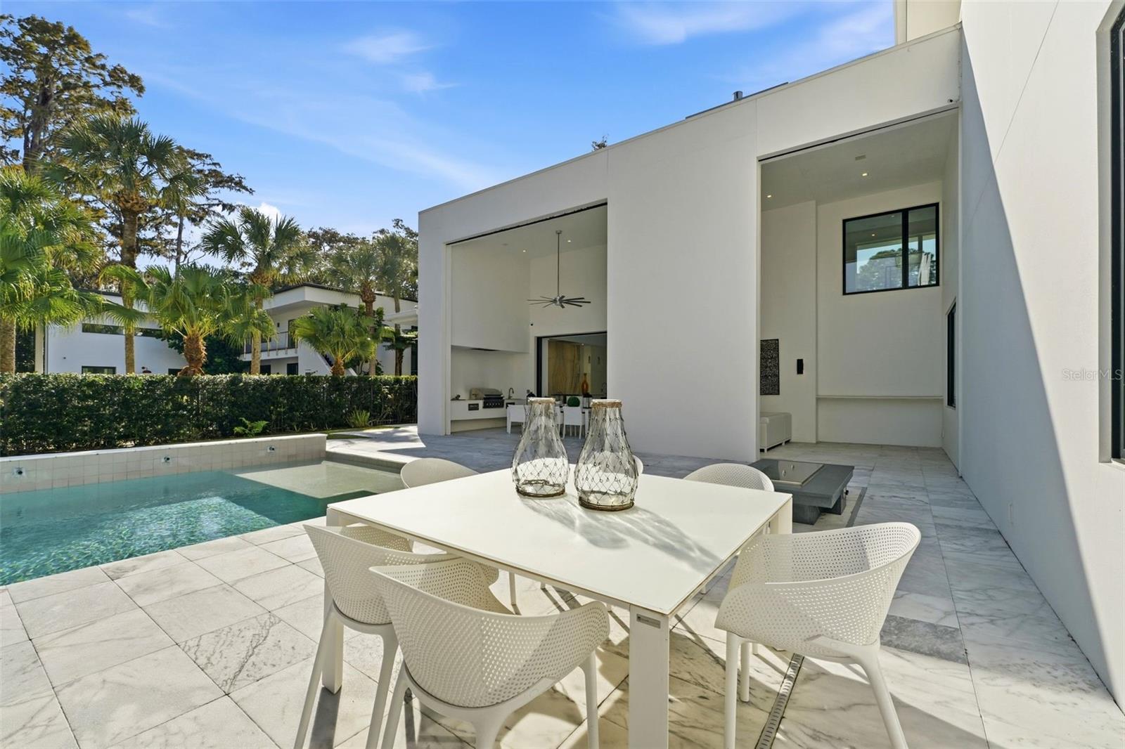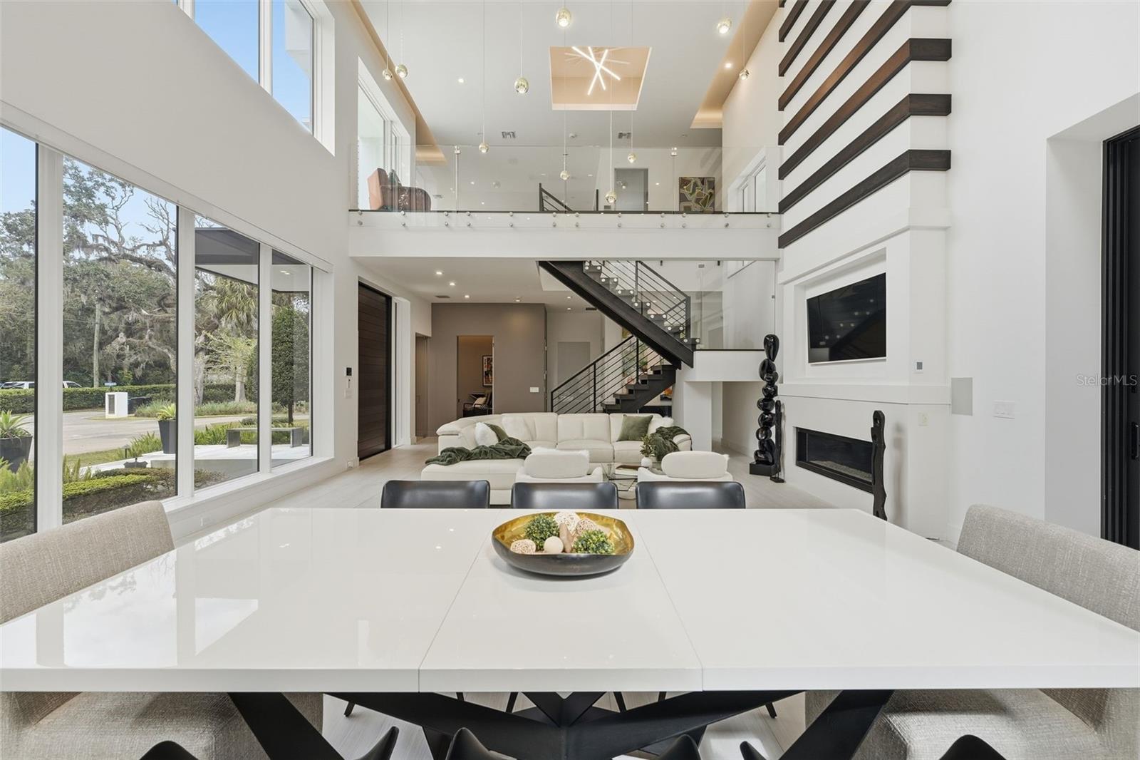 Nestled within the gated 9-acre Lake Maitland Owl Preserve, this striking contemporary residence—crafted by acclaimed green builder E2 Homes offers a rare blend of architectural distinction, privacy, and natural beauty. Surrounded by protected conservation land, the home delivers a serene retreat just minutes from the vibrant lifestyle of Winter Park. Designed by internationally recognized architect Jose Vengas, the home showcases dramatic ceiling heights, clean modern lines, and expansive glass walls that flood the interiors with natural light while blurring the line between indoor and outdoor living. The thoughtfully designed open-concept floor plan centers around a show-stopping chef’s kitchen featuring custom cabinetry, a statement marble backsplash, and a full suite of premium Sub-Zero and Wolf appliances perfect for both elevated entertaining and everyday living. Living and dining spaces flow effortlessly to a covered outdoor lounge with a fully equipped summer kitchen, overlooking a resort-style pool and spa designed for year-round enjoyment. Whether hosting guests or unwinding in private, this outdoor sanctuary is truly exceptional. All five bedrooms are generously sized private suites, each offering spa-inspired bathrooms with refined finishes and custom detailing. The primary suite is a true retreat, featuring a luxurious bath experience and expansive walk-in closets designed for both beauty and function. A first-floor owner’s suite provides exceptional flexibility for multi-generational living or guest accommodations, while the upper level reveals gallery-style walkways and an elegant terrace that highlights the home’s architectural artistry. With nearly 5,000 square feet of meticulously curated living space, this exceptional estate delivers modern sophistication in one of Central Florida’s most exclusive and private enclaves—just moments from Winter Park’s renowned dining, boutiques, and cultural destinations.