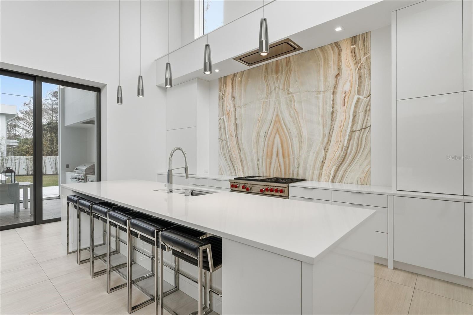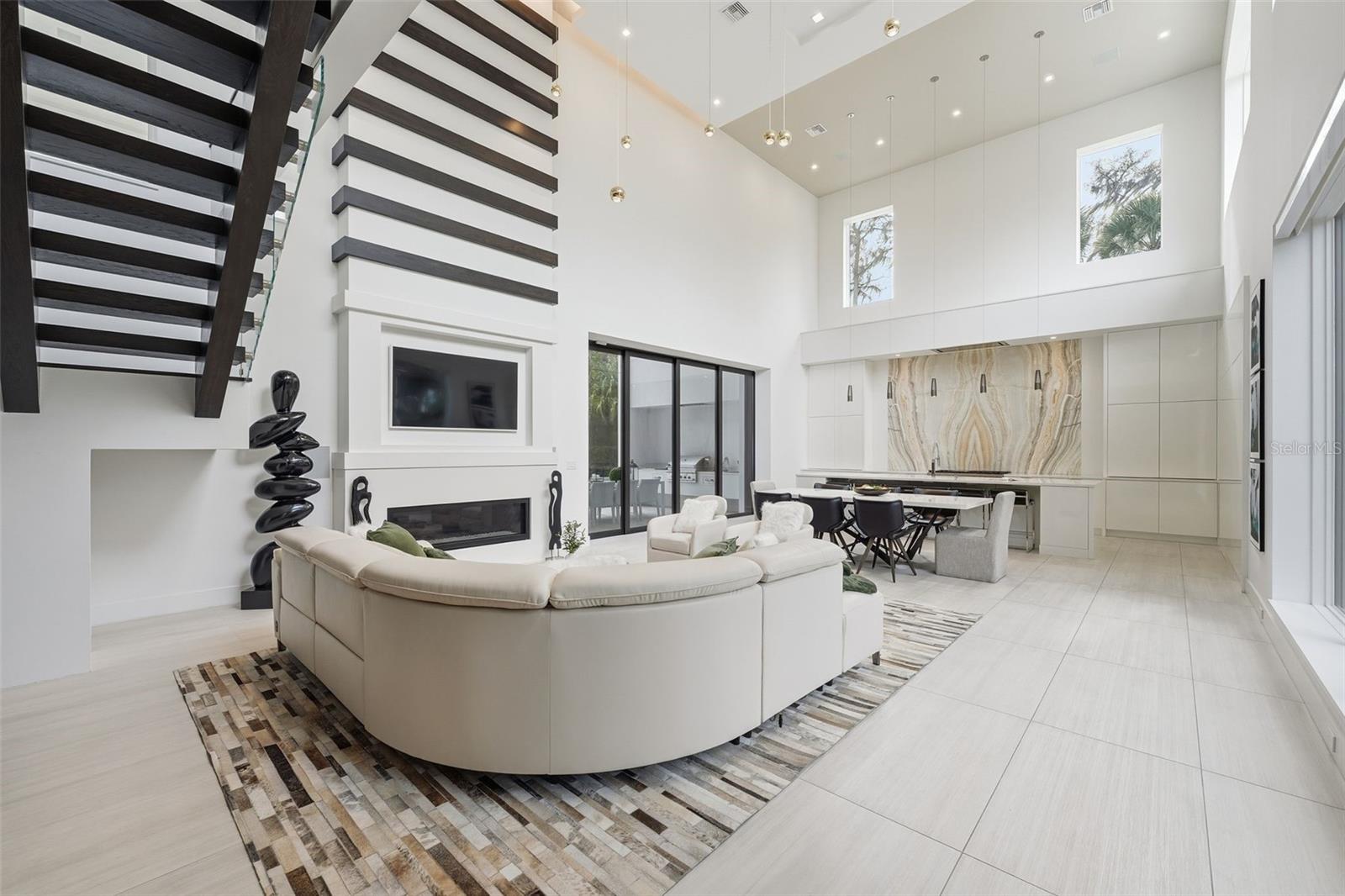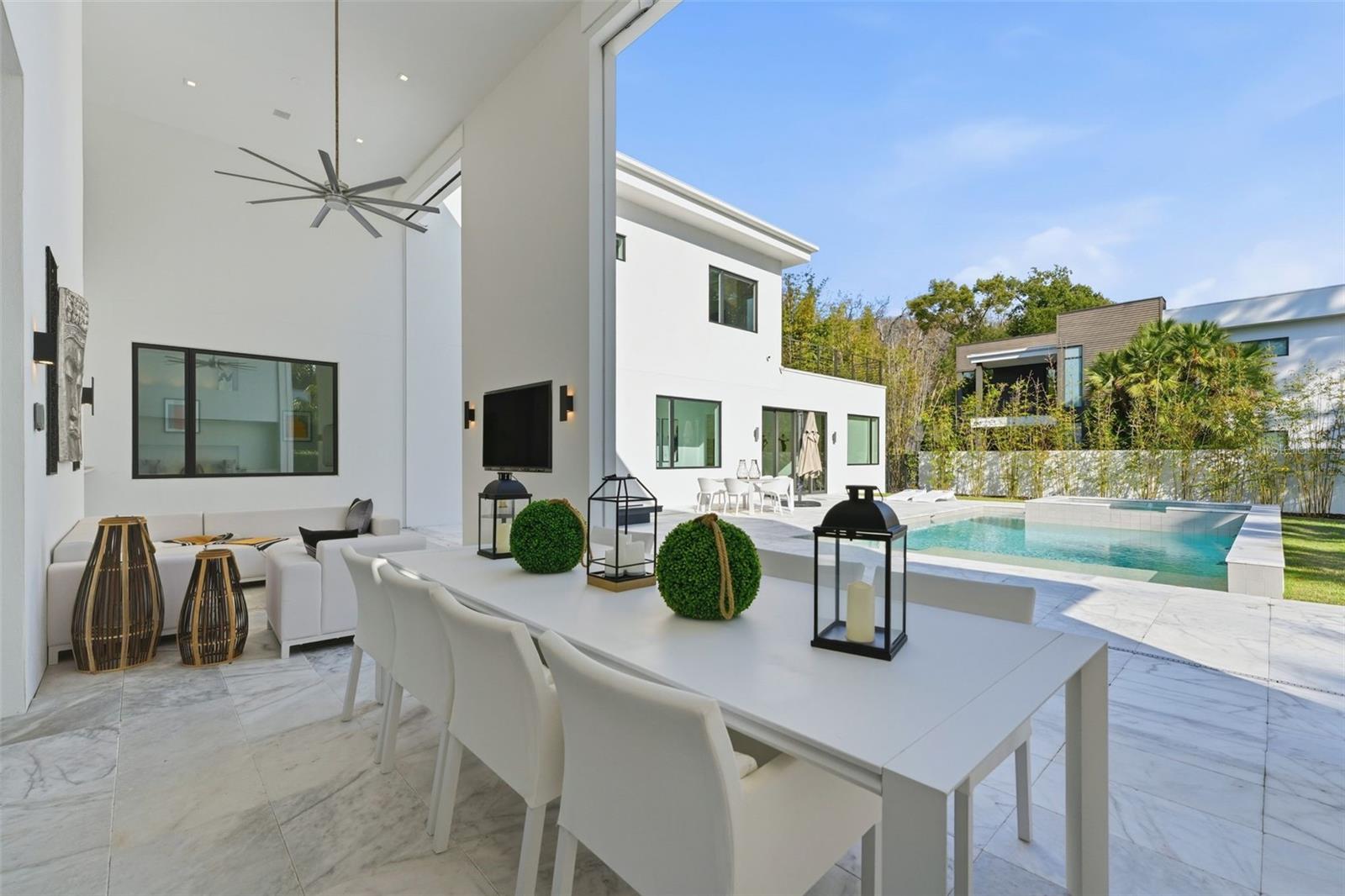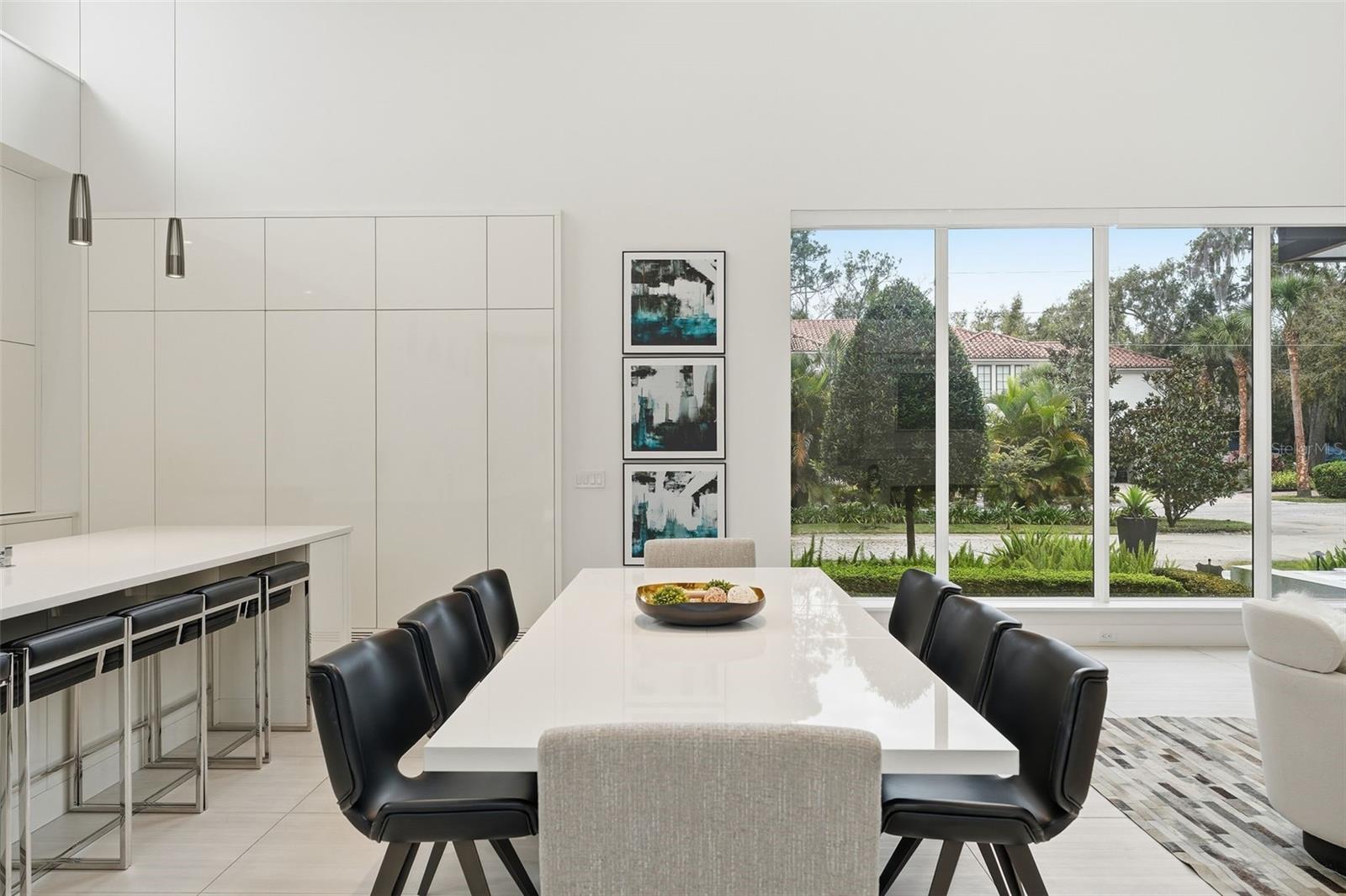 Nestled within the gated 9-acre Lake Maitland Owl Preserve, this striking contemporary residence—crafted by acclaimed green builder E2 Homes offers a rare blend of architectural distinction, privacy, and natural beauty. Surrounded by protected conservation land, the home delivers a serene retreat just minutes from the vibrant lifestyle of Winter Park. Designed by internationally recognized architect Jose Vengas, the home showcases dramatic ceiling heights, clean modern lines, and expansive glass walls that flood the interiors with natural light while blurring the line between indoor and outdoor living. The thoughtfully designed open-concept floor plan centers around a show-stopping chef’s kitchen featuring custom cabinetry, a statement marble backsplash, and a full suite of premium Sub-Zero and Wolf appliances perfect for both elevated entertaining and everyday living. Living and dining spaces flow effortlessly to a covered outdoor lounge with a fully equipped summer kitchen, overlooking a resort-style pool and spa designed for year-round enjoyment. Whether hosting guests or unwinding in private, this outdoor sanctuary is truly exceptional. All five bedrooms are generously sized private suites, each offering spa-inspired bathrooms with refined finishes and custom detailing. The primary suite is a true retreat, featuring a luxurious bath experience and expansive walk-in closets designed for both beauty and function. A first-floor owner’s suite provides exceptional flexibility for multi-generational living or guest accommodations, while the upper level reveals gallery-style walkways and an elegant terrace that highlights the home’s architectural artistry. With nearly 5,000 square feet of meticulously curated living space, this exceptional estate delivers modern sophistication in one of Central Florida’s most exclusive and private enclaves—just moments from Winter Park’s renowned dining, boutiques, and cultural destinations.