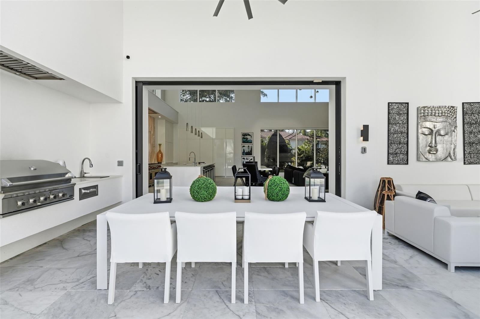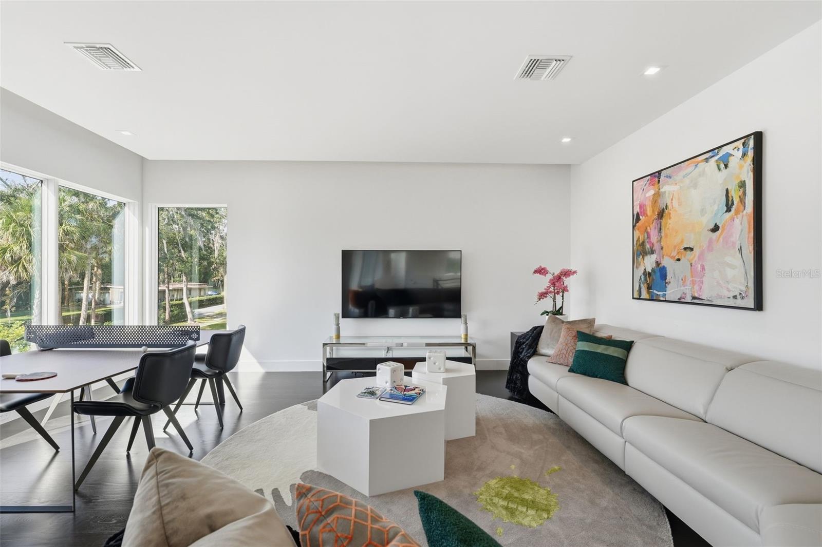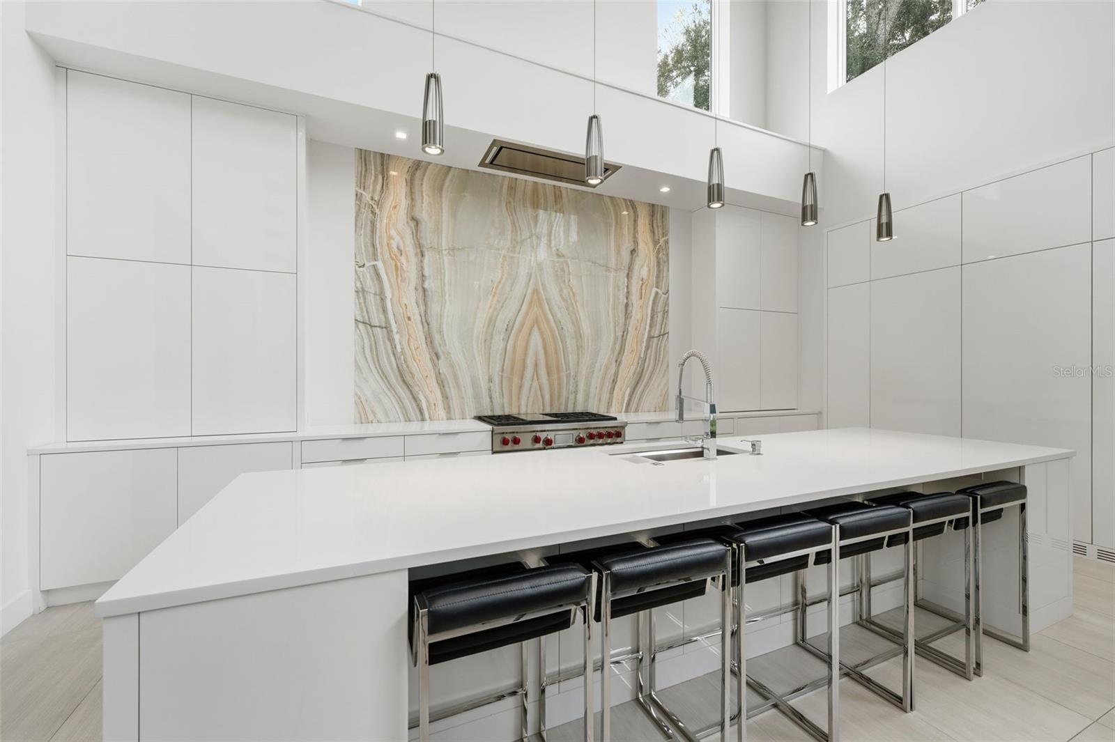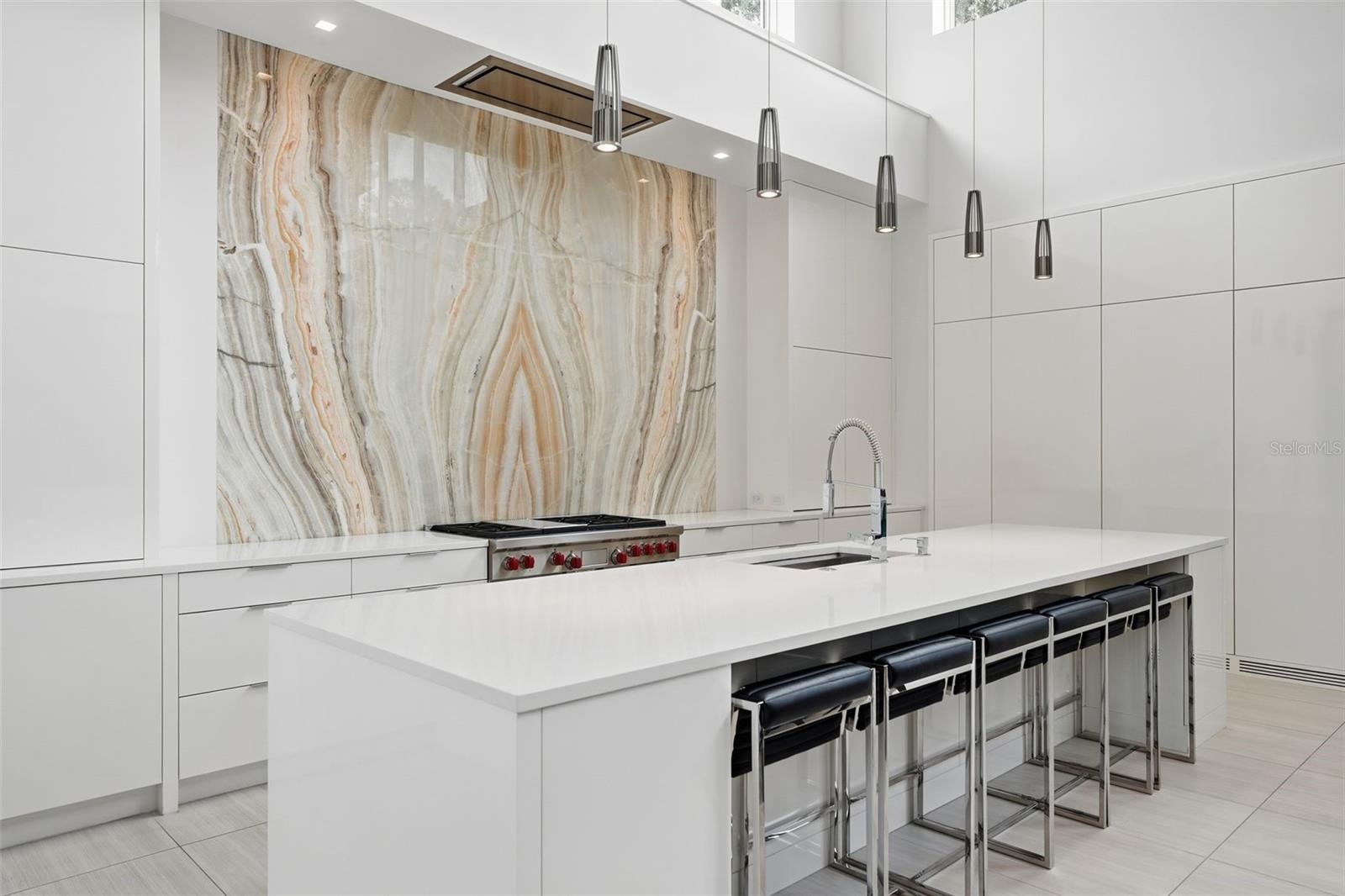 Nestled within the gated 9-acre Lake Maitland Owl Preserve, this striking contemporary residence—crafted by acclaimed green builder E2 Homes offers a rare blend of architectural distinction, privacy, and natural beauty. Surrounded by protected conservation land, the home delivers a serene retreat just minutes from the vibrant lifestyle of Winter Park. Designed by internationally recognized architect Jose Vengas, the home showcases dramatic ceiling heights, clean modern lines, and expansive glass walls that flood the interiors with natural light while blurring the line between indoor and outdoor living. The thoughtfully designed open-concept floor plan centers around a show-stopping chef’s kitchen featuring custom cabinetry, a statement marble backsplash, and a full suite of premium Sub-Zero and Wolf appliances perfect for both elevated entertaining and everyday living. Living and dining spaces flow effortlessly to a covered outdoor lounge with a fully equipped summer kitchen, overlooking a resort-style pool and spa designed for year-round enjoyment. Whether hosting guests or unwinding in private, this outdoor sanctuary is truly exceptional. All five bedrooms are generously sized private suites, each offering spa-inspired bathrooms with refined finishes and custom detailing. The primary suite is a true retreat, featuring a luxurious bath experience and expansive walk-in closets designed for both beauty and function. A first-floor owner’s suite provides exceptional flexibility for multi-generational living or guest accommodations, while the upper level reveals gallery-style walkways and an elegant terrace that highlights the home’s architectural artistry. With nearly 5,000 square feet of meticulously curated living space, this exceptional estate delivers modern sophistication in one of Central Florida’s most exclusive and private enclaves—just moments from Winter Park’s renowned dining, boutiques, and cultural destinations.