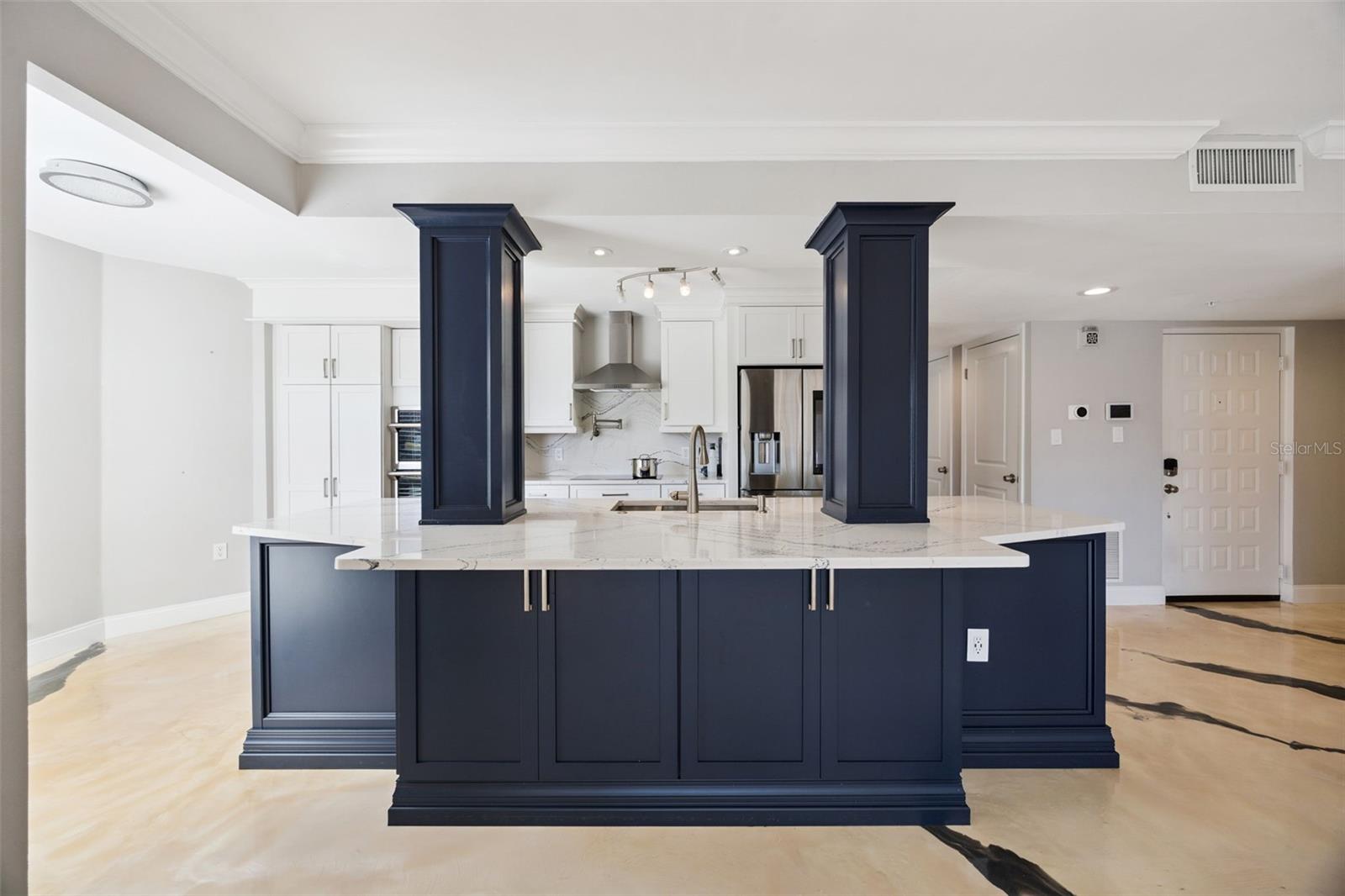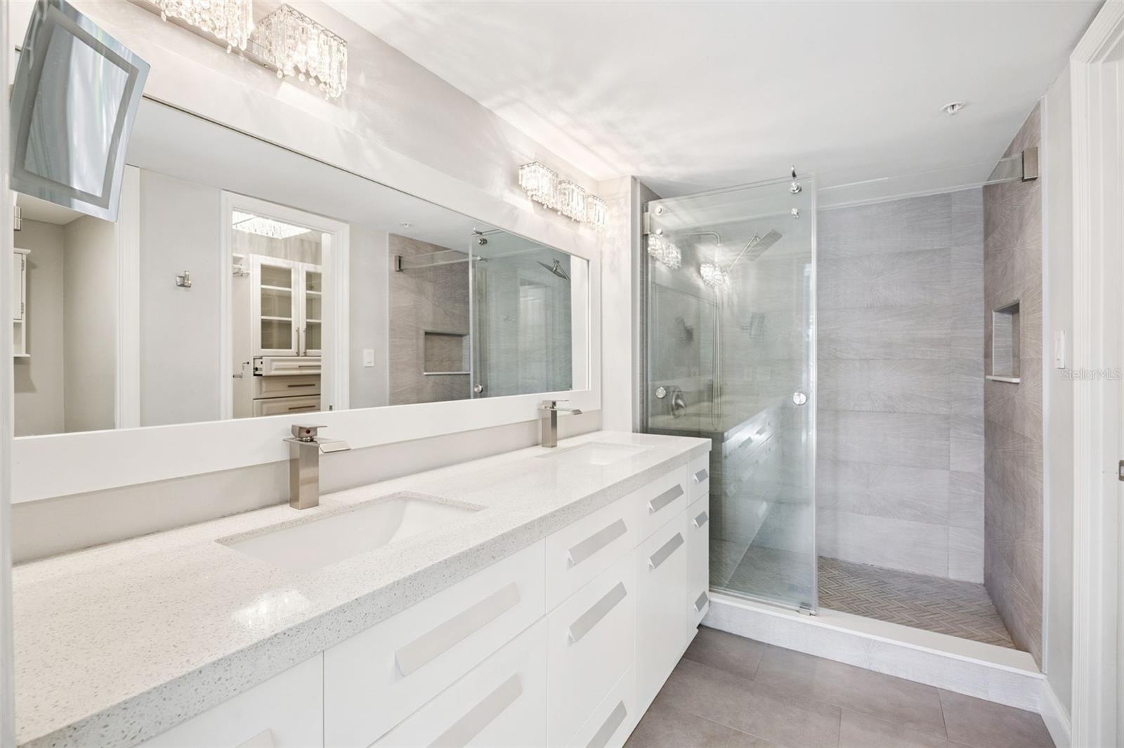 Luxury lakefront living at its finest awaits at "The Moorings" on Lake Maitland Chain of Lakes. Perfectly positioned on the first floor, this stunning two-bedroom, two-bath residence offers breathtaking lake views from nearly every room, creating a serene and sophisticated backdrop for everyday living. Completely renovated with impeccable attention to detail, the home features designer epoxy flooring throughout the main living areas and luxury statement lighting that elevates the space with warmth and style. The living room invites relaxation with a sleek electric fireplace and expansive glass sliders that open to an extra-large lanai overlooking Lake Maitland—an ideal setting for morning coffee, evening sunsets, or effortless entertaining. The state-of-the-art chef’s kitchen is a true showpiece, thoughtfully designed for both beauty and function. It includes modern quartz countertops, a smart refrigerator with TV, with AI vision that updates your shopping list, planning and interactive features, a wine refrigerator, new stainless steel appliances, a vented hood, cooktop with pot filler, Bosch dishwasher, and a double oven with convection microwave combination and convection oven—perfect for hosting and everyday luxury. A discreet pantry closet houses a stackable washer and dryer, seamlessly integrating convenience into the design. The primary suite is a tranquil retreat with stunning lake views and a custom walk-in closet system complete with jewelry drawer, laundry bins, and generous storage. The spa-inspired primary bath features dual quartz vanities, a frameless glass shower, and a luxurious rain shower head, while the high-end bidet toilet automatically opens upon entry for an added touch of modern indulgence. The guest suite is equally impressive, featuring a custom Murphy bed with integrated storage and desk, dresser, television, and elegant glass closet doors. The adjacent guest bath has been fully reimagined as a spa sanctuary with a jetted soaking tub, designer tile, a custom light-up mirror, and new quartz top vanity. Storage is abundant throughout the home, including a coat closet, a hidden hideaway closet concealed behind a custom bookcase, and thoughtfully designed built-ins that maximize space without sacrificing style. Residents of "The Moorings" enjoy exceptional community amenities, including a resort-style pool with spa and a clubhouse ideal for private parties and social gatherings. The community is impeccably maintained, featuring new exterior paint and seal, a newer roof, and beautifully maintained landscaping, reflecting true pride of ownership. Additional features include a security system, smart thermostat, newer AC, and newer appliances, offering peace of mind and energy efficiency. For outdoor enthusiasts, the community allows storage for kayaks and paddleboards, with boat slips available for rent, providing direct access to the Chain of Lakes lifestyle. Ideally located near Lake Lily’s Farmers Market, popular restaurants, extensive shopping, bus routes, and with easy access to I-4, this home is also zoned for top-rated A+ schools—blending luxury, convenience, and lifestyle into one exceptional offering. This is more than a home—it’s a refined lakeside retreat where comfort, design, and location come together beautifully.