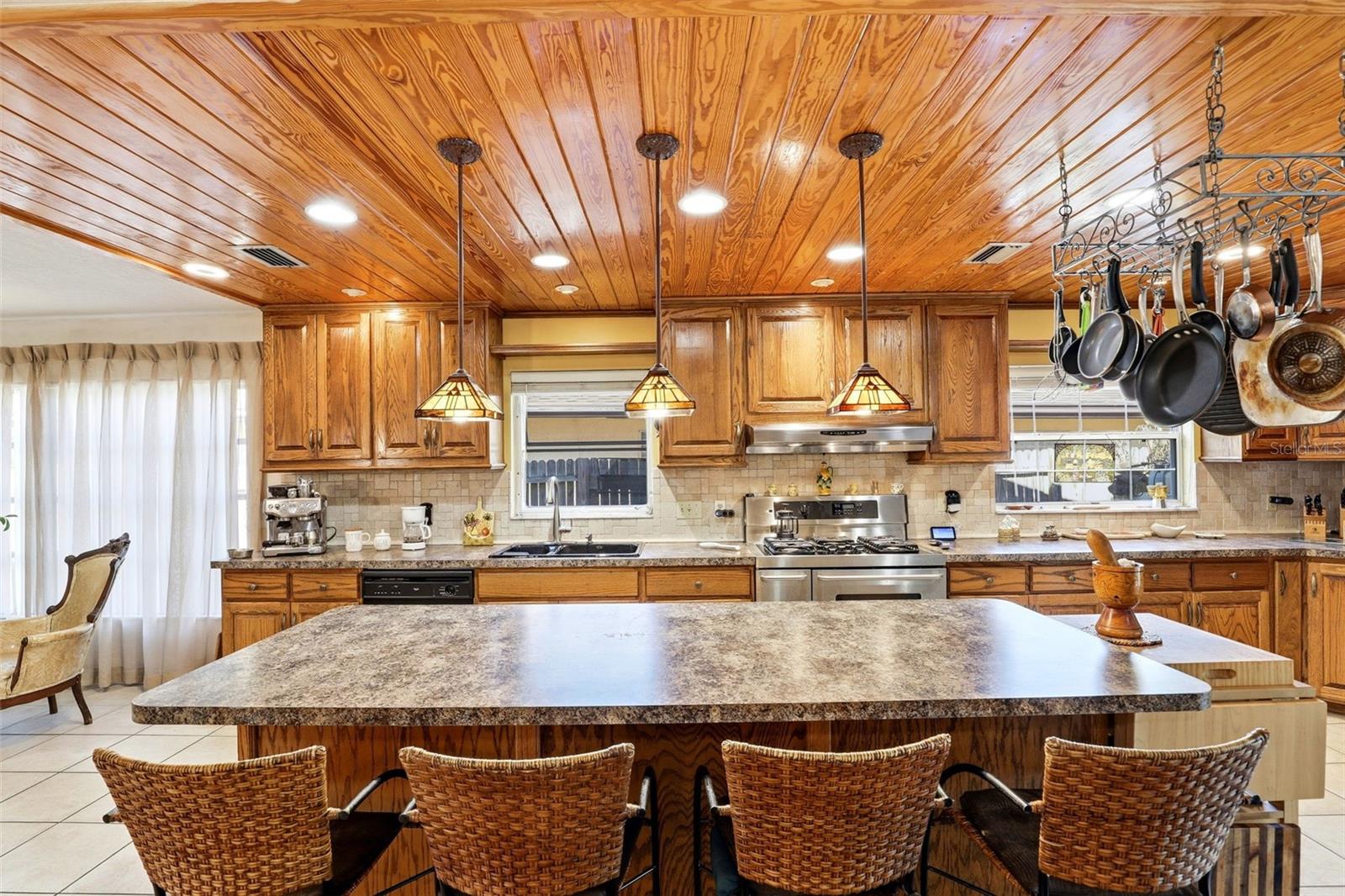 Welcome to this two-owner concrete block home offering the perfect blend of comfort, character, and Florida outdoor living — all with no HOA and an ideal Central Florida location. A majestic Kapok tree gracefully anchors the front yard, while a lush, foliaged trellis guides you to the inviting front entrance, setting the tone for the unique charm found throughout. Inside, you’ll discover an open floorplan designed for both everyday living and effortless entertaining. The kitchen is a true showstopper, featuring a gorgeous tongue-in-groove ceiling, stylish pendant lighting, and a chef-inspired gas range that will delight any home cook. The living spaces flow seamlessly, creating a bright and welcoming atmosphere. The generous primary bedroom offers a relaxing retreat, while three additional bedrooms and two full baths provide flexibility for family, guests, or a home office. An oversized double garage adds convenience and plenty of storage. Step outside to your private backyard oasis. A screened patio and rear yard pergola invite year-round outdoor enjoyment, while the terraced backyard leads down to a serene pondfront, inground pool — perfect for relaxing, entertaining, or simply taking in the peaceful water views. Ideally located just minutes from Full Sail University, along with Winter Park, Casselberry, Winter Springs, and Altamonte Springs, this home offers both tranquility and easy access to shopping, dining, and major commuter routes. This is Florida living at its finest — schedule your private showing today!