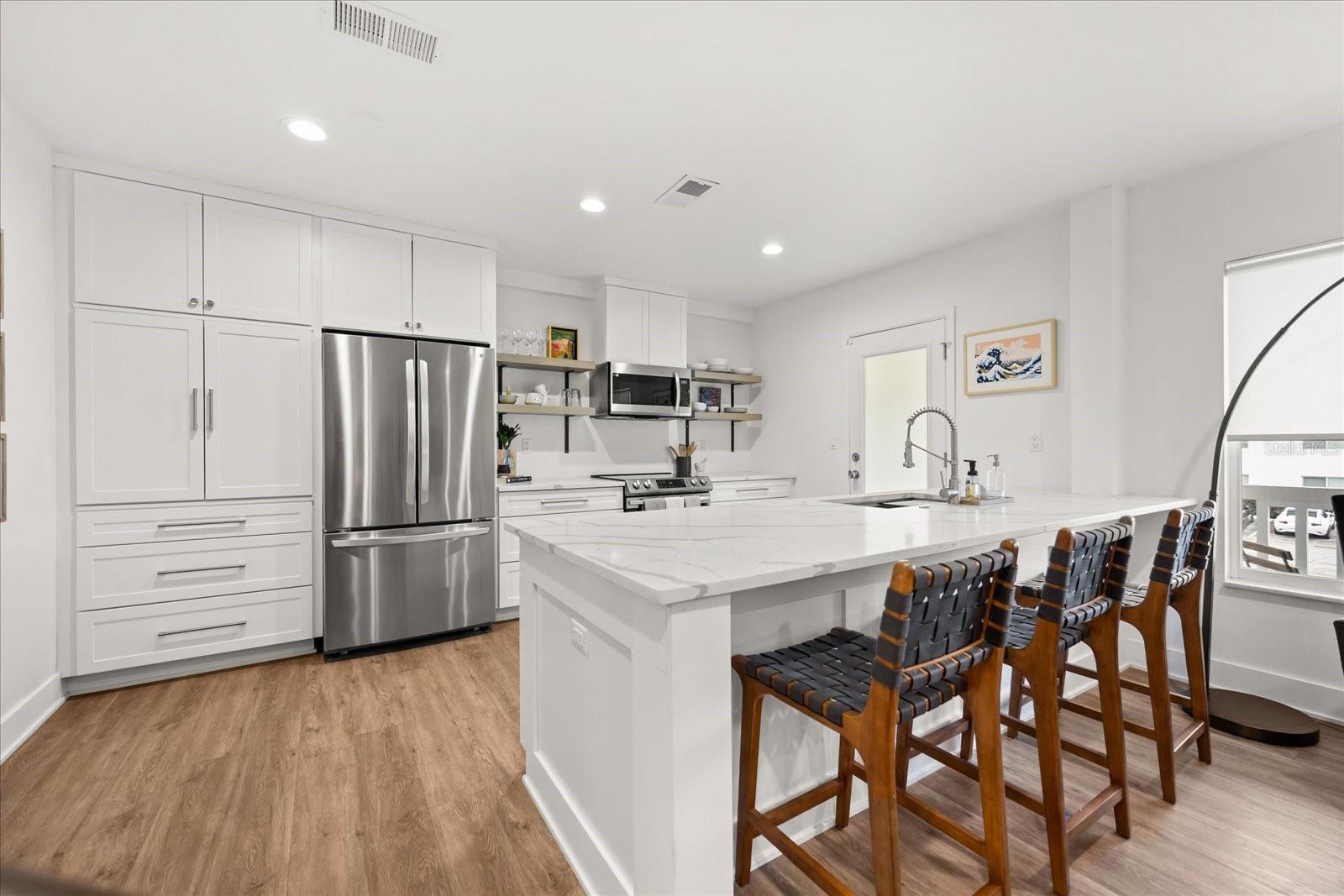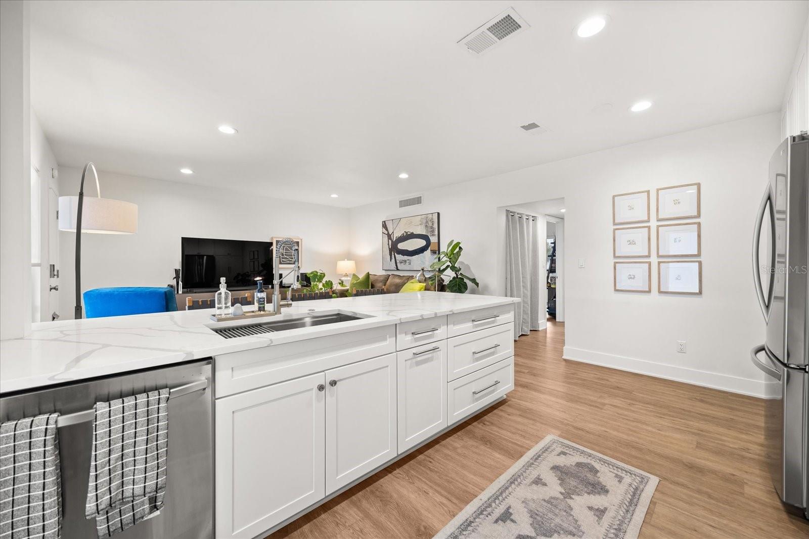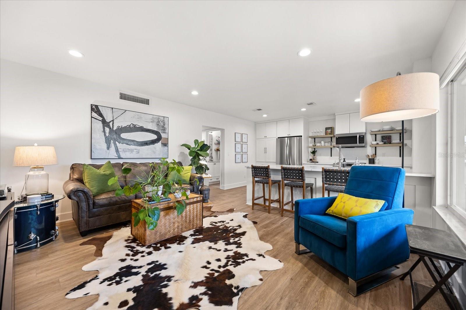 This luxury condominium is in the established complex of Lake Maitland Terrace which sits on the shores of Lake Maitland, Winter Park Chain of Lakes. This immaculately maintained complex includes 11, 2-story, mid-century modern buildings sprawled across several acres, creating beautiful green space and picturesque views across the lake. This unit is special. A complete renovation with every detail accounted for, it is turnkey with enduring design. Warm wood floors are carried through spaces, kitchen has been opened to living room and flanked with windows allowing natural light to shine. Kitchen features white 42-inch shaker style cabinetry, quartz counters, subway tile backsplash, open shelving and stainless appliances. Counter seating is inviting and creates great kitchen function with loads of counter space for the aspiring chef. Primary suite is spacious with large closet storage, and renovated bath. Secondary bedroom and additional bath add to the flexibility of the unit, a guest room or home office. Indoor laundry makes this lock-and-go lifestyle even more appealing. Custom window treatments, closet system storage, updated HVAC, and fresh paint throughout. The location is pristine with walkability to the Enzian independent theatre, Lake Lily Park with a recreational trail and park, and home to community events, many restaurants and more. A short distance to Winter Park Village and Park Avenue and zoned for incredible schools with Dommerich Elementary, Maitland Middle & Winter Park Highschool. Complex is amenity-rich with sidewalks, community pool, generous dock, shuffleboards and more. Make this rare opportunity yours to own a little slice of this Maitland treasure.