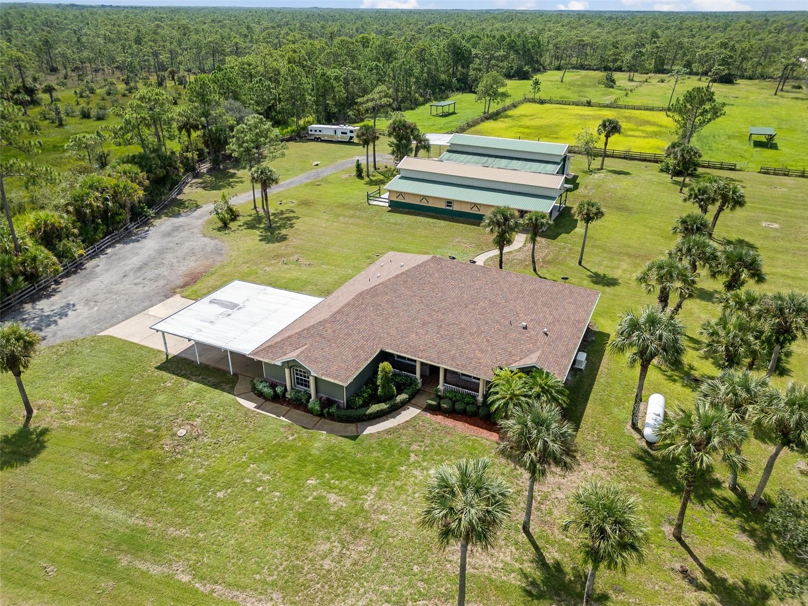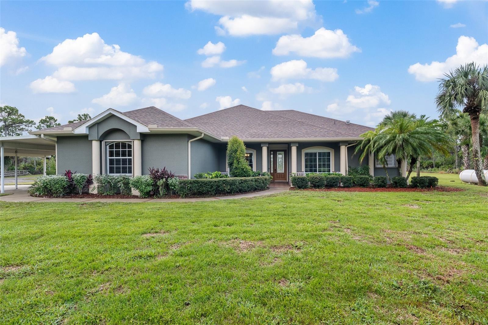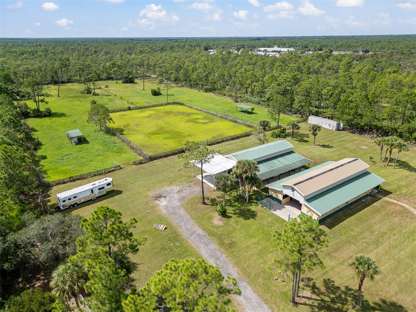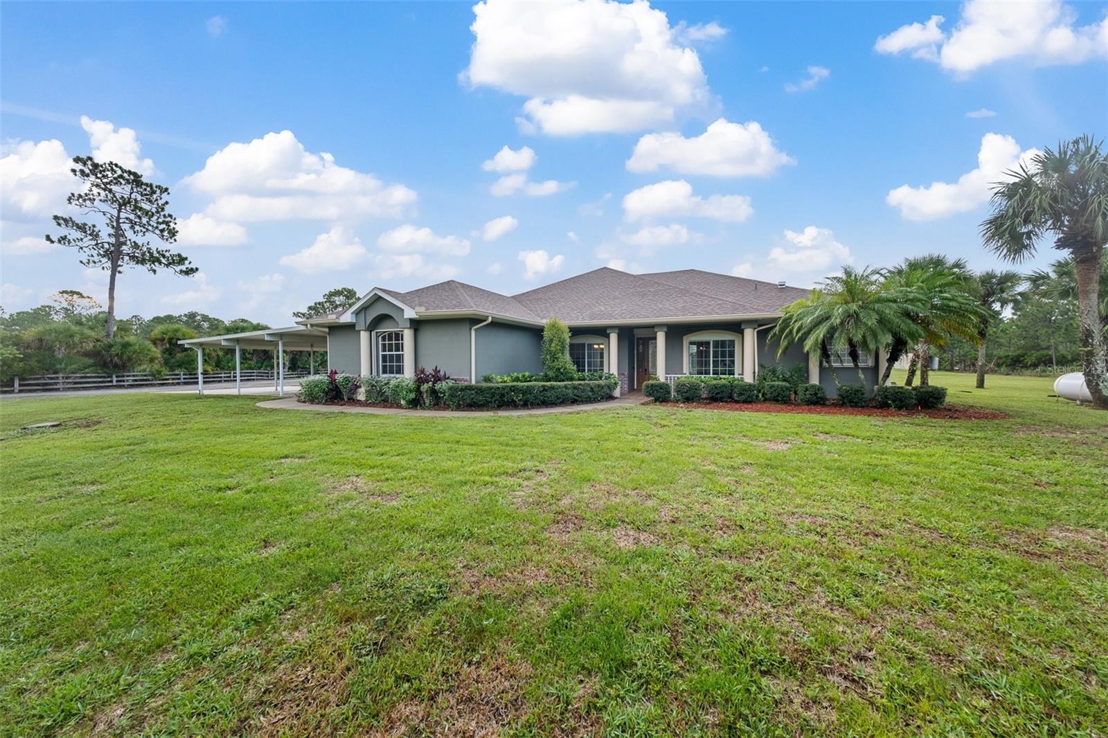 Welcome to your serene escape at 1145 Ramblebrook Street in beautiful Grant-Valkaria, Florida. This stunning 9.68-acre equestrian estate offers luxury, space, and privacy, blending rural tranquility with modern amenities. Property Highlights incl. 9.68 acres of open pastures, ideal for grazing and horseback riding. Home Size:2,152 sq. ft., 3 bedrooms, 2 bathrooms. Garage: Oversized 3-car garage with plenty of storage space. Ceilings: 10-foot ceilings throughout for an open and airy feel. Interior Features: Kitchen: Stone floors in the kitchen and laundry room. Granite countertops with elegant glass/tile full backsplashes. Samsung touchscreen appliances, including a refrigerator, dishwasher, microwave, and flat-top stove/oven. Soft-close cabinets and drawers for a smooth experience. Primary Bedroom Suite with Ensuite Bath and French doors leading to a 34' x 12' tiled screened porch. Two large walk-in closets for ample storage. Luxurious En-suite bath featuring: Private watercloset Double vanity, Jacuzzi soaking tub, Spacious walk-in tiled shower. Linen closet for additional storage. Second Bathroom tile floors with a tiled tub/shower combo. Porches 341 sq. ft. tiled screened porch with large sliding doors that push into the wall. 187 sq. ft. open porch for outdoor relaxation. Outbuilding include Horse Stable: 3,000 sq. ft. with epoxy floors, electricity, and water. 10 horse stalls, 4 washing stations, office/storage room, and a second storage room. Shop/RV Storage:2,880 sq. ft. with RV hookups and dump station. Full bathroom and laundry hookups. Carports: Two carports at 1,088 sq. ft. and 896 sq. ft. Recent Upgrades (2022-2023): 2022 New exterior and interior paint. New kitchen stone flooring, mudroom, and hardwood floors throughout. Updated spare bathroom vanity. New roof, kitchen appliances, countertops, soft-close cabinets. On-demand hot water heater. New AC unit. Fresh paint on horse stables. 2023: Generac 26kW whole-house generator with a 1,000-gallon propane tank. New exterior electrical panels for modern energy efficiency. This meticulously maintained estate offers the perfect blend of luxury living and functional equestrian facilities. Whether you’re a horse enthusiast or simply love the charm of rural living, this property delivers on all fronts. Schedule your private showing today!