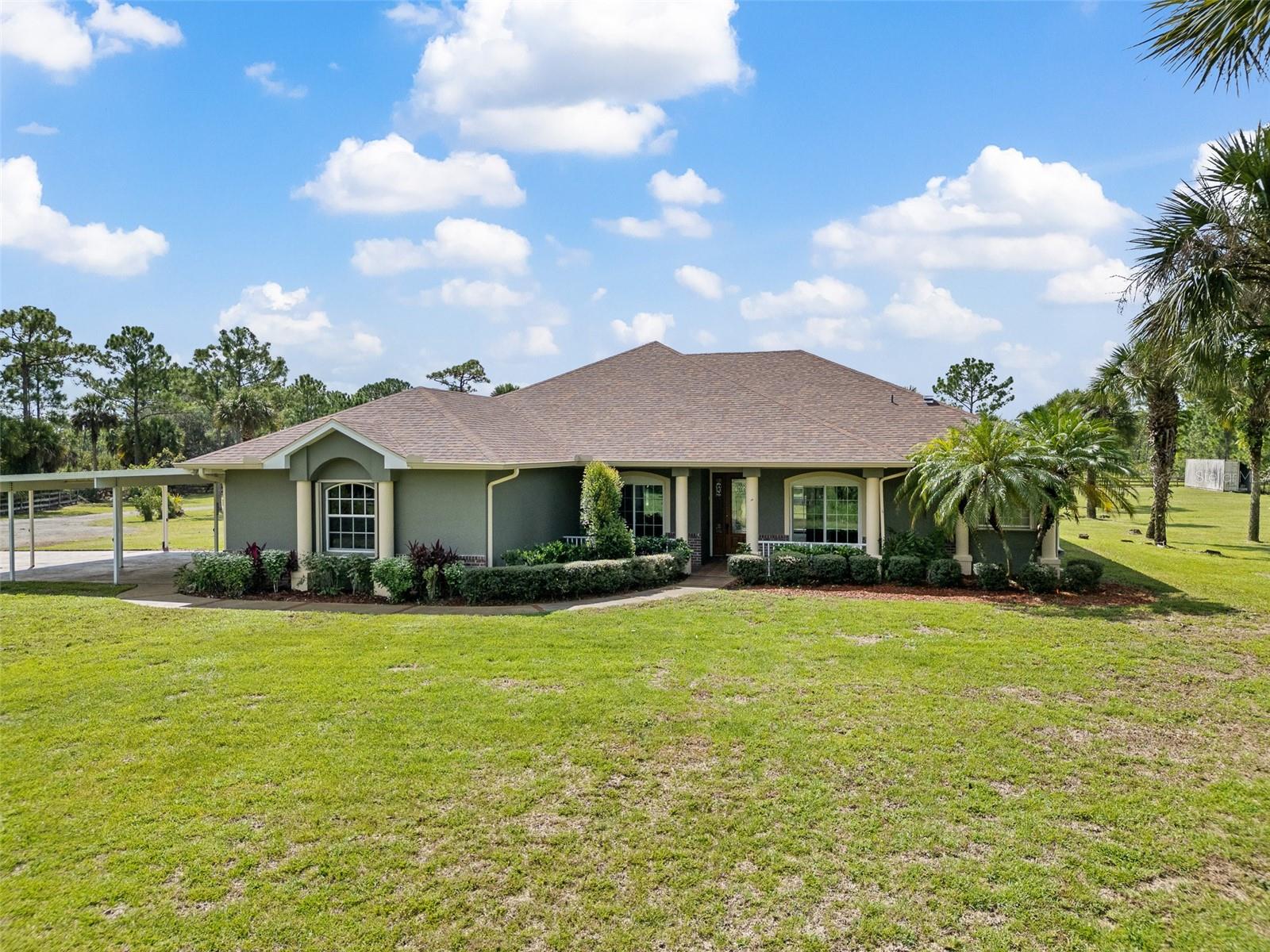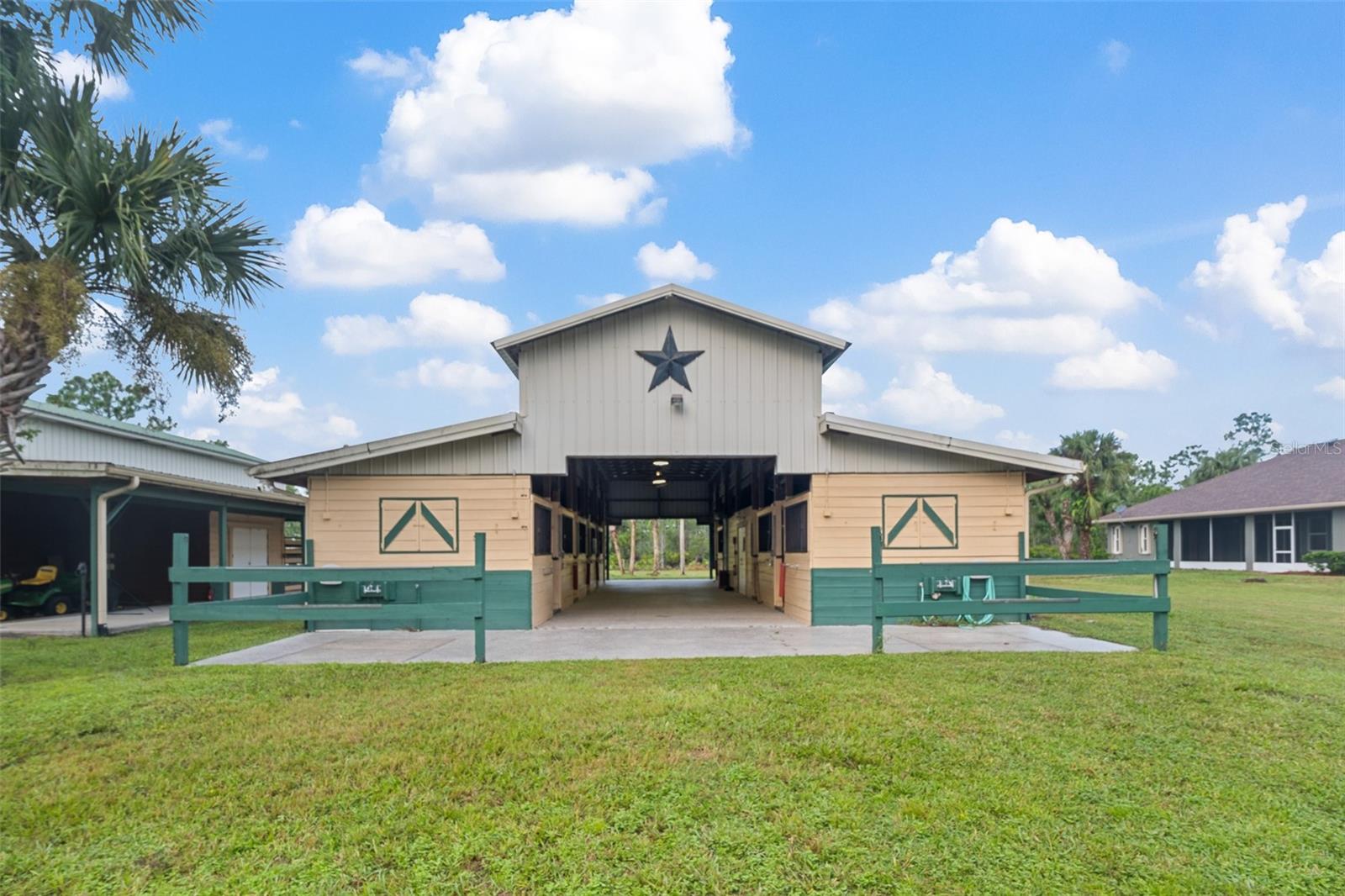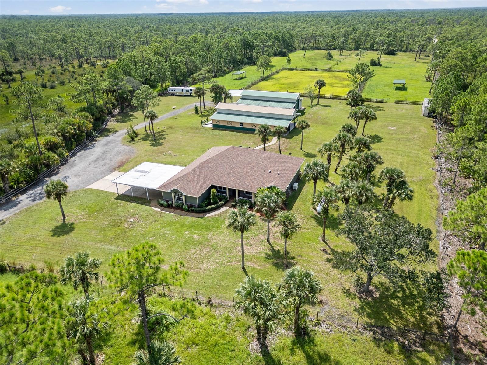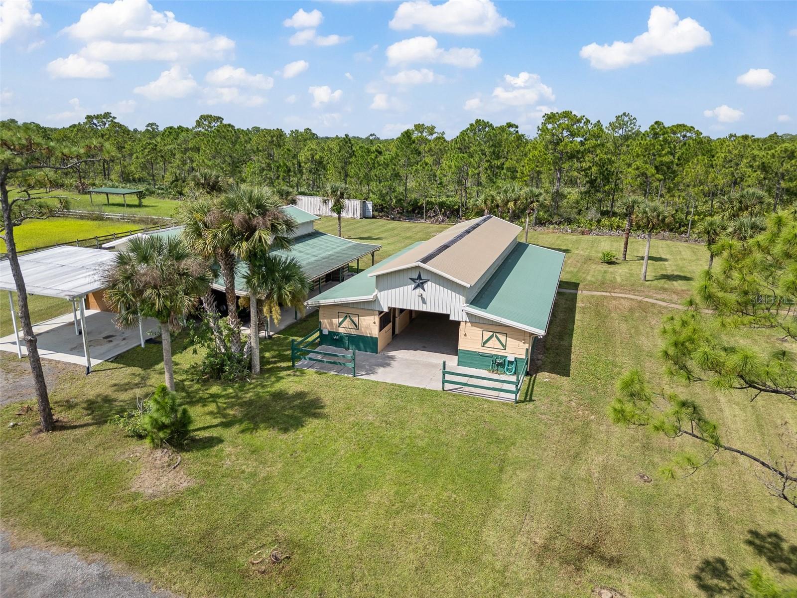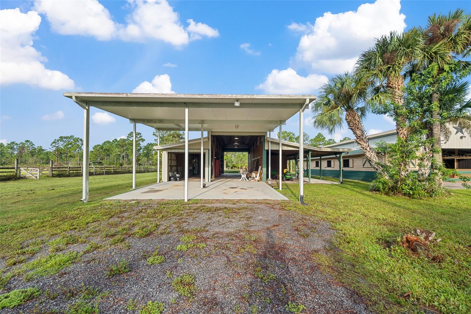 Welcome to your serene escape at 1145 Ramblebrook Street in beautiful Grant-Valkaria, Florida. This stunning 9.68-acre equestrian estate offers luxury, space, and privacy, blending rural tranquility with modern amenities. Property Highlights incl. 9.68 acres of open pastures, ideal for grazing and horseback riding. Home Size:2,152 sq. ft., 3 bedrooms, 2 bathrooms. Garage: Oversized 3-car garage with plenty of storage space. Ceilings: 10-foot ceilings throughout for an open and airy feel. Interior Features: Kitchen: Stone floors in the kitchen and laundry room. Granite countertops with elegant glass/tile full backsplashes. Samsung touchscreen appliances, including a refrigerator, dishwasher, microwave, and flat-top stove/oven. Soft-close cabinets and drawers for a smooth experience. Primary Bedroom Suite with Ensuite Bath and French doors leading to a 34' x 12' tiled screened porch. Two large walk-in closets for ample storage. Luxurious En-suite bath featuring: Private watercloset Double vanity, Jacuzzi soaking tub, Spacious walk-in tiled shower. Linen closet for additional storage. Second Bathroom tile floors with a tiled tub/shower combo. Porches 341 sq. ft. tiled screened porch with large sliding doors that push into the wall. 187 sq. ft. open porch for outdoor relaxation. Outbuilding include Horse Stable: 3,000 sq. ft. with epoxy floors, electricity, and water. 10 horse stalls, 4 washing stations, office/storage room, and a second storage room. Shop/RV Storage:2,880 sq. ft. with RV hookups and dump station. Full bathroom and laundry hookups. Carports: Two carports at 1,088 sq. ft. and 896 sq. ft. Recent Upgrades (2022-2023): 2022 New exterior and interior paint. New kitchen stone flooring, mudroom, and hardwood floors throughout. Updated spare bathroom vanity. New roof, kitchen appliances, countertops, soft-close cabinets. On-demand hot water heater. New AC unit. Fresh paint on horse stables. 2023: Generac 26kW whole-house generator with a 1,000-gallon propane tank. New exterior electrical panels for modern energy efficiency. This meticulously maintained estate offers the perfect blend of luxury living and functional equestrian facilities. Whether you’re a horse enthusiast or simply love the charm of rural living, this property delivers on all fronts. Schedule your private showing today!