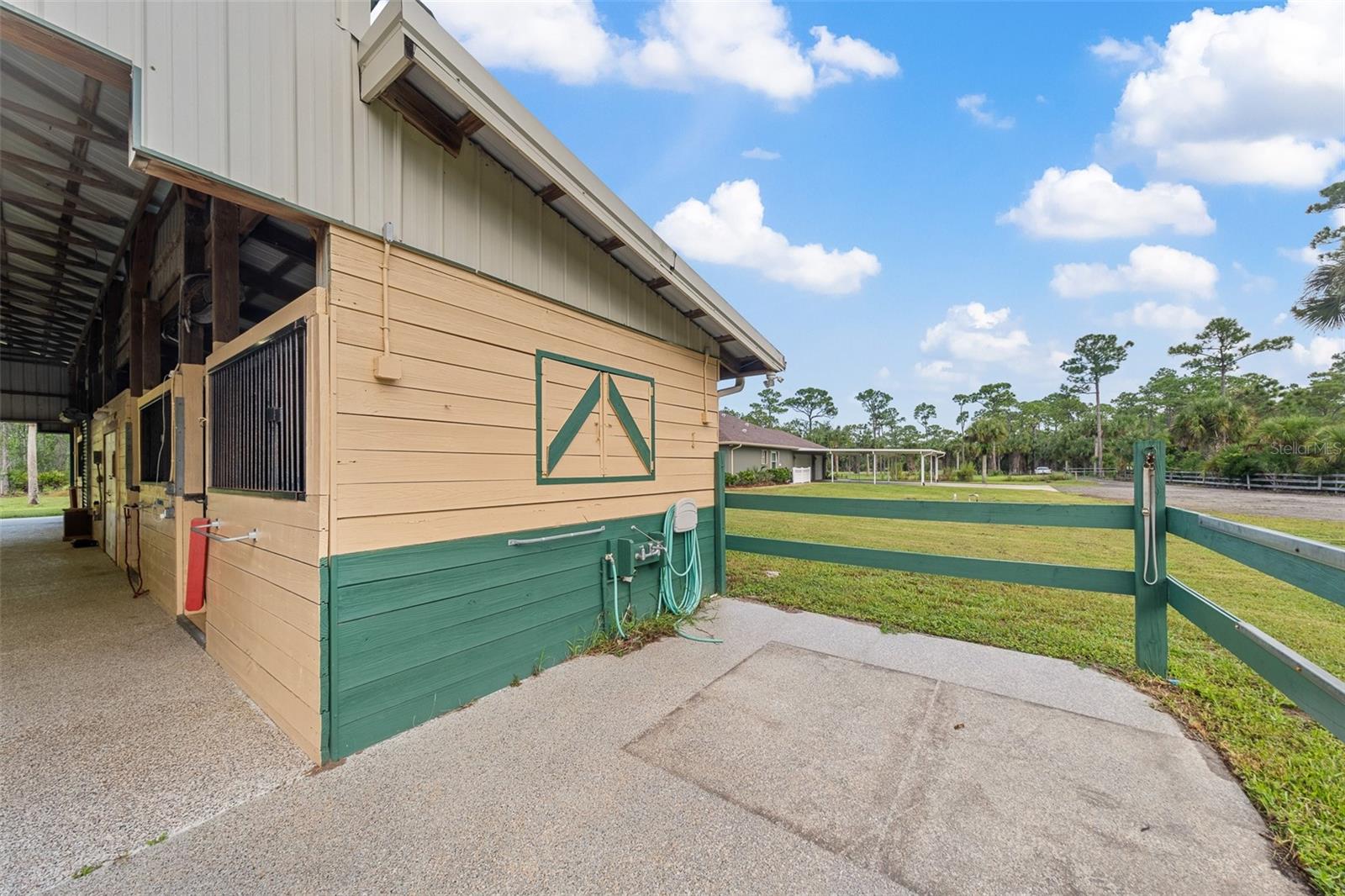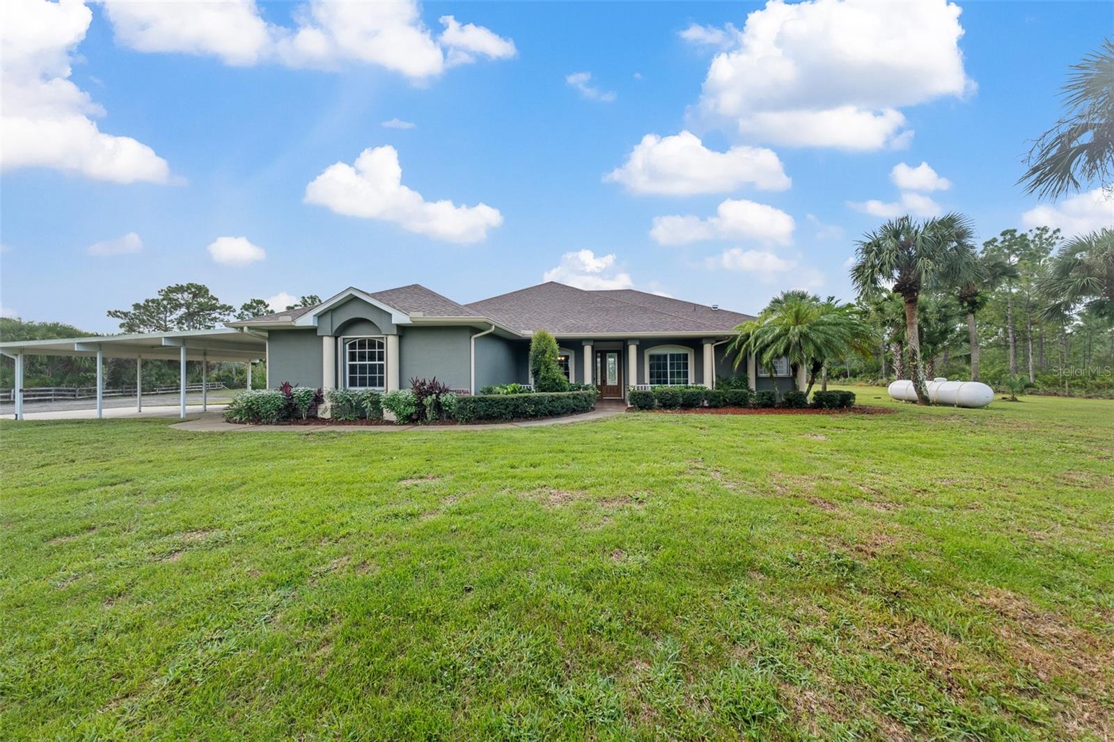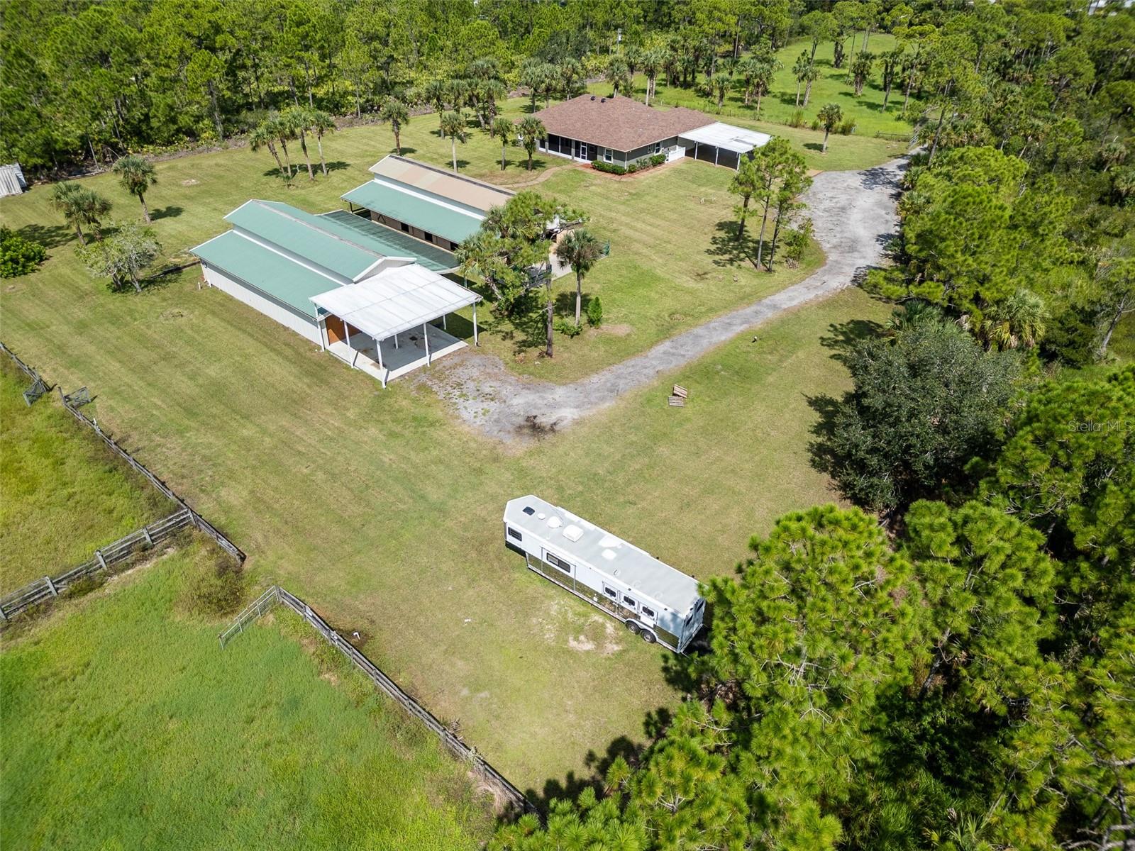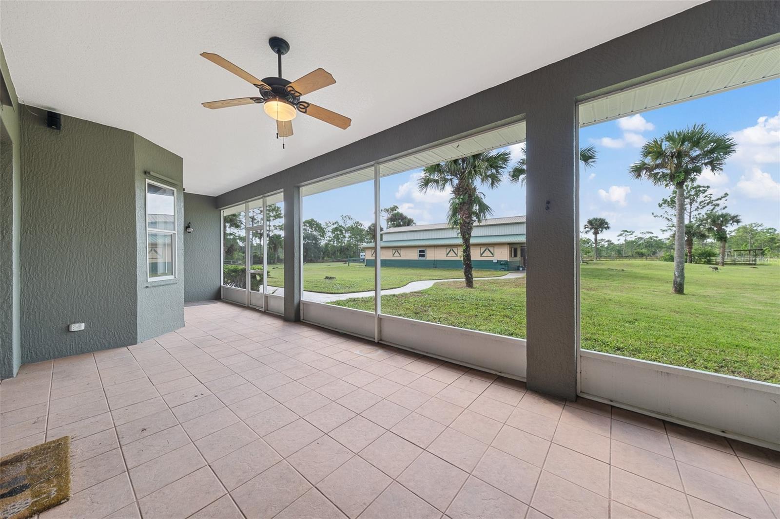 Welcome to your serene escape at 1145 Ramblebrook Street in beautiful Grant-Valkaria, Florida. This stunning 9.68-acre equestrian estate offers luxury, space, and privacy, blending rural tranquility with modern amenities. Property Highlights incl. 9.68 acres of open pastures, ideal for grazing and horseback riding. Home Size:2,152 sq. ft., 3 bedrooms, 2 bathrooms. Garage: Oversized 3-car garage with plenty of storage space. Ceilings: 10-foot ceilings throughout for an open and airy feel. Interior Features: Kitchen: Stone floors in the kitchen and laundry room. Granite countertops with elegant glass/tile full backsplashes. Samsung touchscreen appliances, including a refrigerator, dishwasher, microwave, and flat-top stove/oven. Soft-close cabinets and drawers for a smooth experience. Primary Bedroom Suite with Ensuite Bath and French doors leading to a 34' x 12' tiled screened porch. Two large walk-in closets for ample storage. Luxurious En-suite bath featuring: Private watercloset Double vanity, Jacuzzi soaking tub, Spacious walk-in tiled shower. Linen closet for additional storage. Second Bathroom tile floors with a tiled tub/shower combo. Porches 341 sq. ft. tiled screened porch with large sliding doors that push into the wall. 187 sq. ft. open porch for outdoor relaxation. Outbuilding include Horse Stable: 3,000 sq. ft. with epoxy floors, electricity, and water. 10 horse stalls, 4 washing stations, office/storage room, and a second storage room. Shop/RV Storage:2,880 sq. ft. with RV hookups and dump station. Full bathroom and laundry hookups. Carports: Two carports at 1,088 sq. ft. and 896 sq. ft. Recent Upgrades (2022-2023): 2022 New exterior and interior paint. New kitchen stone flooring, mudroom, and hardwood floors throughout. Updated spare bathroom vanity. New roof, kitchen appliances, countertops, soft-close cabinets. On-demand hot water heater. New AC unit. Fresh paint on horse stables. 2023: Generac 26kW whole-house generator with a 1,000-gallon propane tank. New exterior electrical panels for modern energy efficiency. This meticulously maintained estate offers the perfect blend of luxury living and functional equestrian facilities. Whether you’re a horse enthusiast or simply love the charm of rural living, this property delivers on all fronts. Schedule your private showing today!