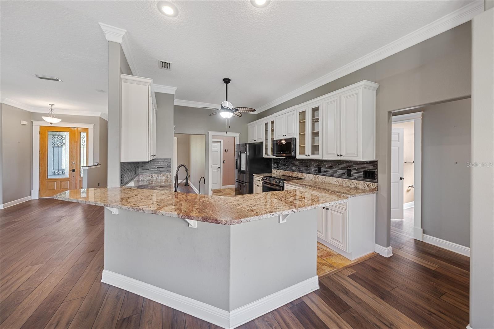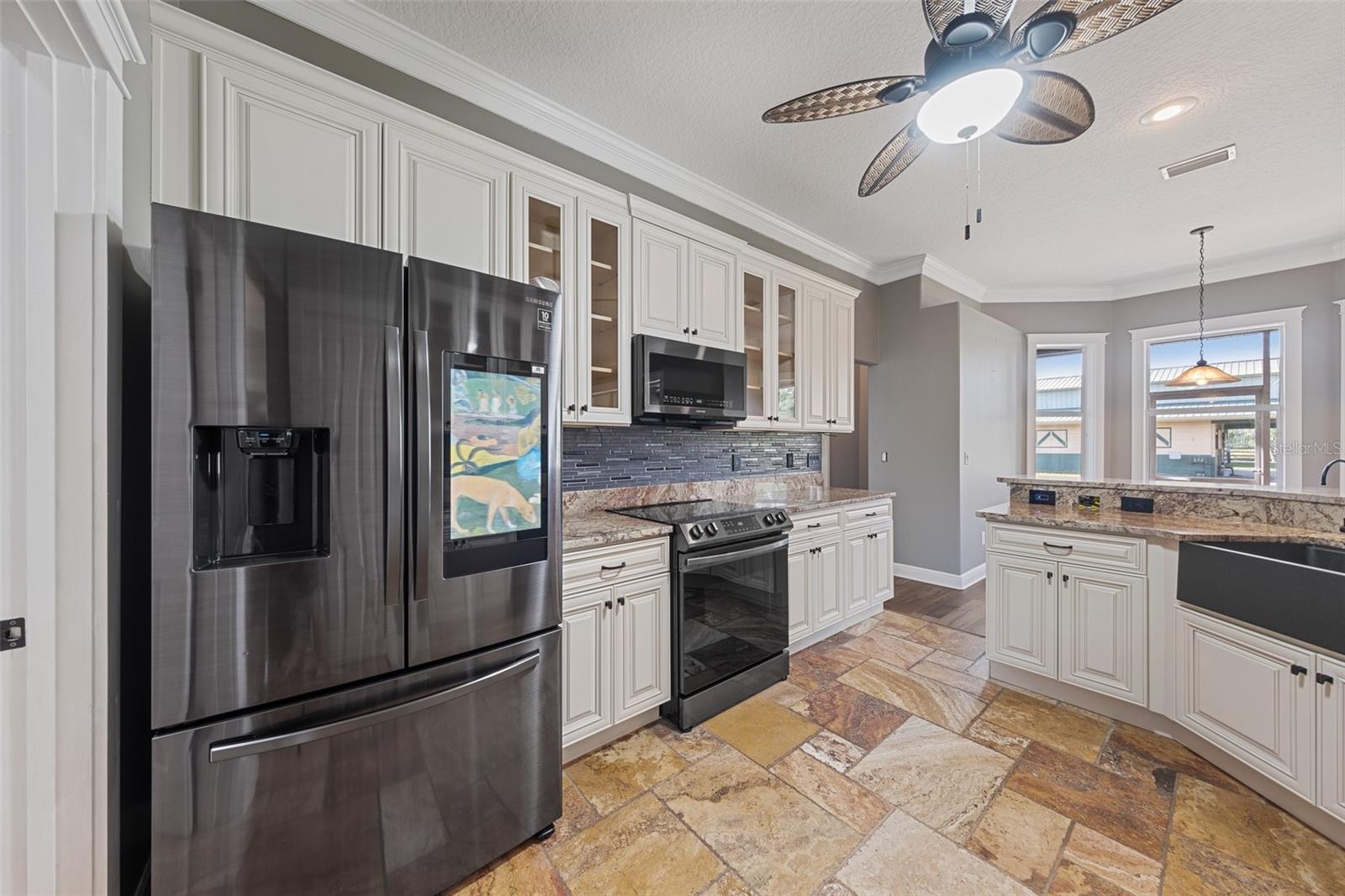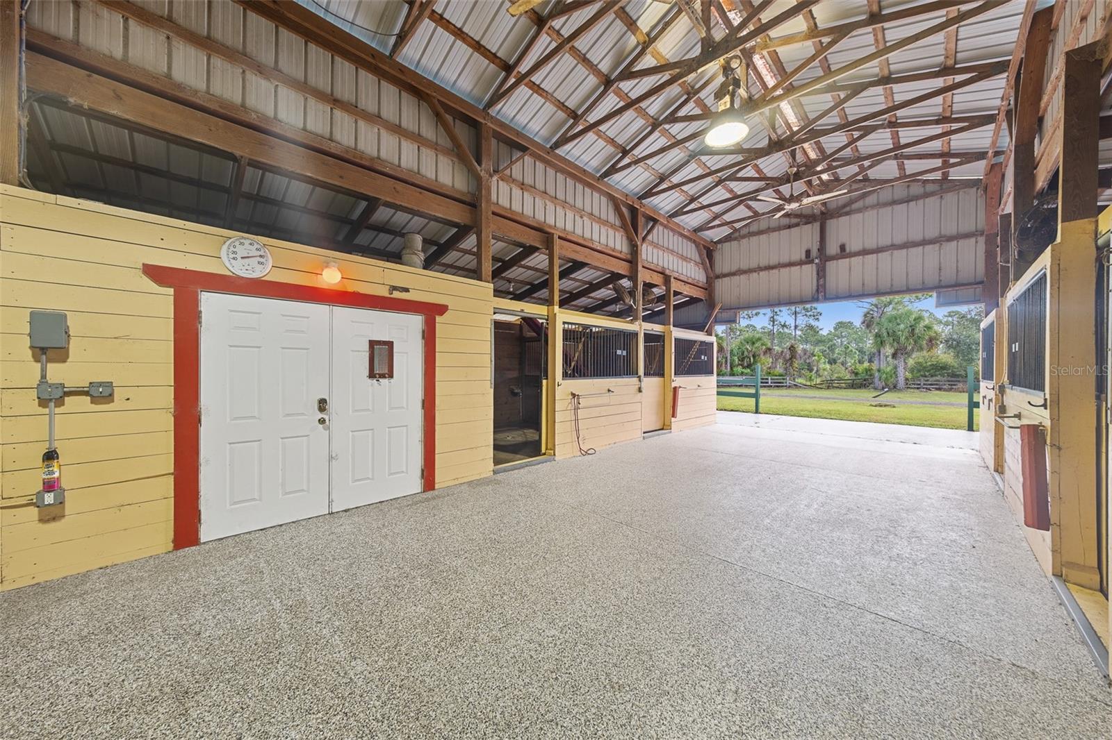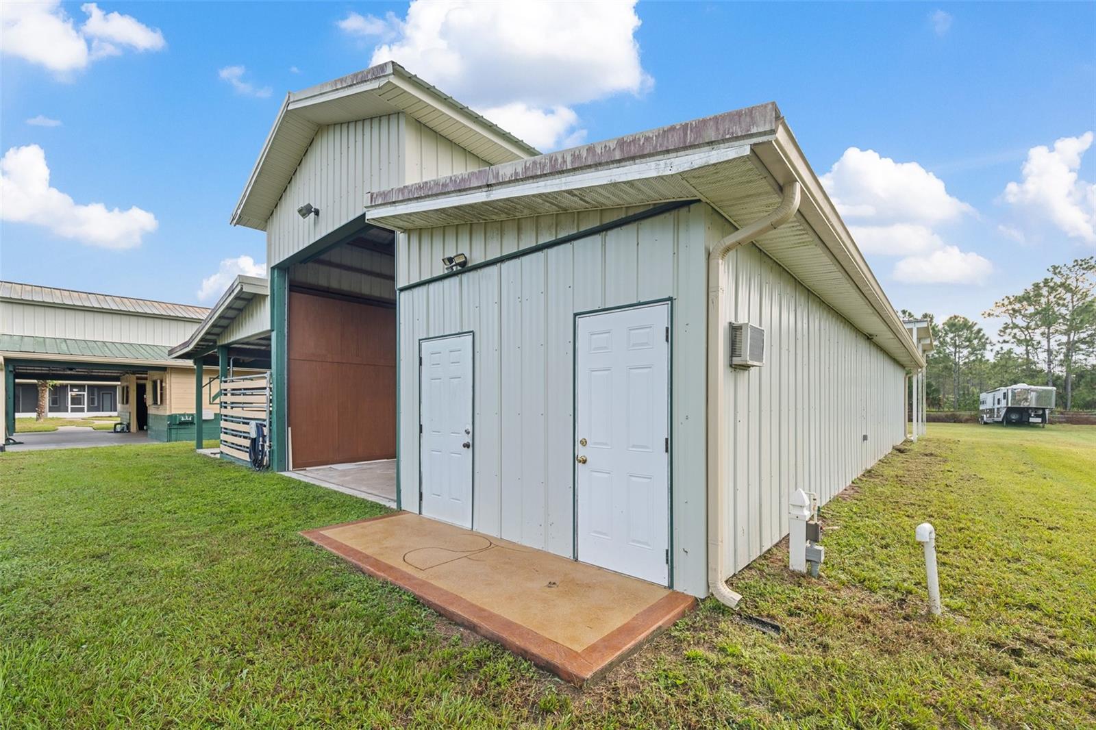 Welcome to your serene escape at 1145 Ramblebrook Street in beautiful Grant-Valkaria, Florida. This stunning 9.68-acre equestrian estate offers luxury, space, and privacy, blending rural tranquility with modern amenities. Property Highlights incl. 9.68 acres of open pastures, ideal for grazing and horseback riding. Home Size:2,152 sq. ft., 3 bedrooms, 2 bathrooms. Garage: Oversized 3-car garage with plenty of storage space. Ceilings: 10-foot ceilings throughout for an open and airy feel. Interior Features: Kitchen: Stone floors in the kitchen and laundry room. Granite countertops with elegant glass/tile full backsplashes. Samsung touchscreen appliances, including a refrigerator, dishwasher, microwave, and flat-top stove/oven. Soft-close cabinets and drawers for a smooth experience. Primary Bedroom Suite with Ensuite Bath and French doors leading to a 34' x 12' tiled screened porch. Two large walk-in closets for ample storage. Luxurious En-suite bath featuring: Private watercloset Double vanity, Jacuzzi soaking tub, Spacious walk-in tiled shower. Linen closet for additional storage. Second Bathroom tile floors with a tiled tub/shower combo. Porches 341 sq. ft. tiled screened porch with large sliding doors that push into the wall. 187 sq. ft. open porch for outdoor relaxation. Outbuilding include Horse Stable: 3,000 sq. ft. with epoxy floors, electricity, and water. 10 horse stalls, 4 washing stations, office/storage room, and a second storage room. Shop/RV Storage:2,880 sq. ft. with RV hookups and dump station. Full bathroom and laundry hookups. Carports: Two carports at 1,088 sq. ft. and 896 sq. ft. Recent Upgrades (2022-2023): 2022 New exterior and interior paint. New kitchen stone flooring, mudroom, and hardwood floors throughout. Updated spare bathroom vanity. New roof, kitchen appliances, countertops, soft-close cabinets. On-demand hot water heater. New AC unit. Fresh paint on horse stables. 2023: Generac 26kW whole-house generator with a 1,000-gallon propane tank. New exterior electrical panels for modern energy efficiency. This meticulously maintained estate offers the perfect blend of luxury living and functional equestrian facilities. Whether you’re a horse enthusiast or simply love the charm of rural living, this property delivers on all fronts. Schedule your private showing today!