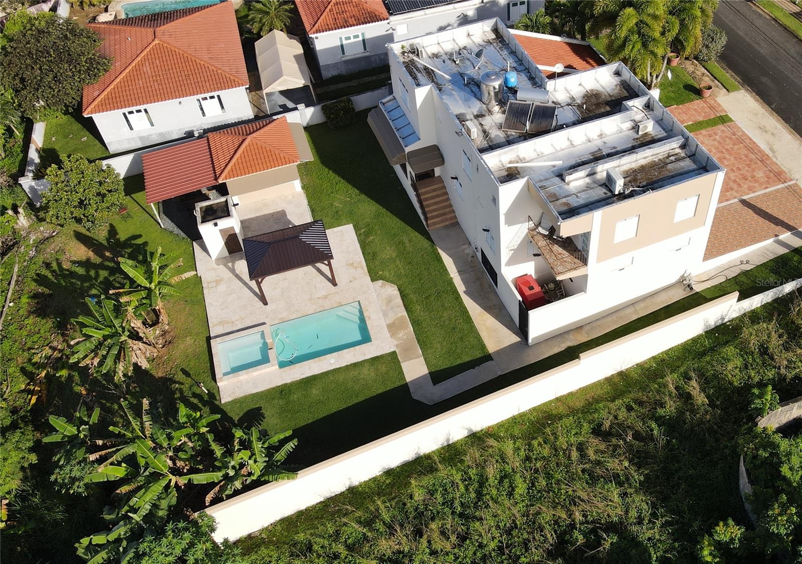 Beautiful property ready to move in a few minutes from shopping center, hospitals, schools, an highway. I has 2 levesl, 4 bedrooms, 3 full bathrooms and 2 half bathdrooms, living room, kitchen and dining room, receiver area, beautiful pool with gazebo and shower. Includes electric generator of 20 KW with automatic transfer swithc, stove, lamps, 600 gallosn cisterna, solar wather heater, 7 inverter consoles and diesel tank.