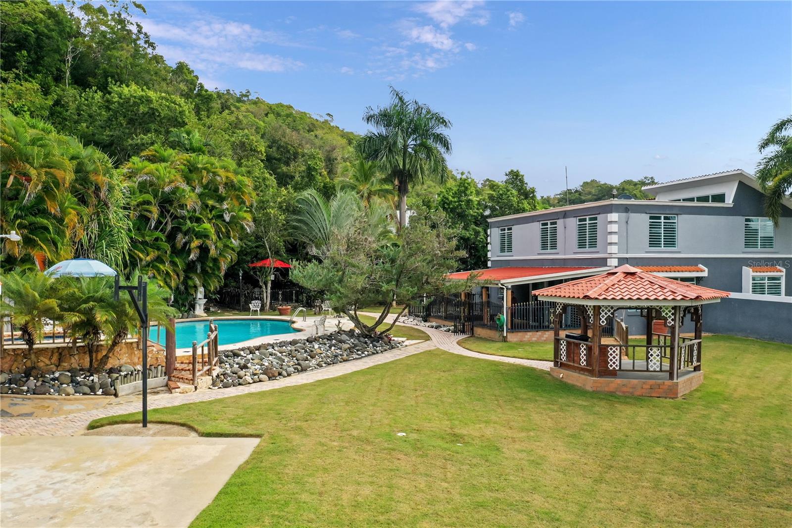 Welcome to your own slice of paradise in Manati, Puerto Rico! This exquisite property provides the epitome of luxury living, with its expansive lot, and prime location within Haciendas Hermanas Menas gated community. Step inside this stunning home and be greeted by a spacious and elegant interior. The open-concept layout flows seamlessly from the foyer to the living areas, creating a welcoming space. With four bedrooms, including a magnificent master suite, there's plenty of room for family and guests to enjoy comfort and privacy. The master bedroom boasts high ceilings and an ensuite bathroom, providing a serene retreat for rest and relaxation. Entertain in style in the outdoor oasis, where a resort-style pool beckons you to unwind beneath the sun. Surrounded by lush landscaping and a spacious terrace, this outdoor haven is perfect for hosting gatherings or simply enjoying the tranquility of island living. An adjacent bathroom adds convenience and functionality to the outdoor space. For those with a passion for cars or in need of ample storage space, this property provides both a two-car garage in the front and an additional four-car garage in the back. Whether you're a collector or simply need space for recreational vehicles, you'll find plenty of room to accommodate your needs. Conveniently located within a gated community with security, residents can enjoy peace of mind and privacy. And with two entrances, including one at the back perfect for boat owners, accessing the property is a breeze. But the luxury doesn't end there - this property also features a sauna, providing the ultimate in relaxation and rejuvenation. Whether you're looking to unwind after a long day or simply indulge in a little self-care. Don't miss your chance to own this exceptional property in Manati, Puerto Rico. Schedule your private showing today and discover the unparalleled beauty and luxury of island living!