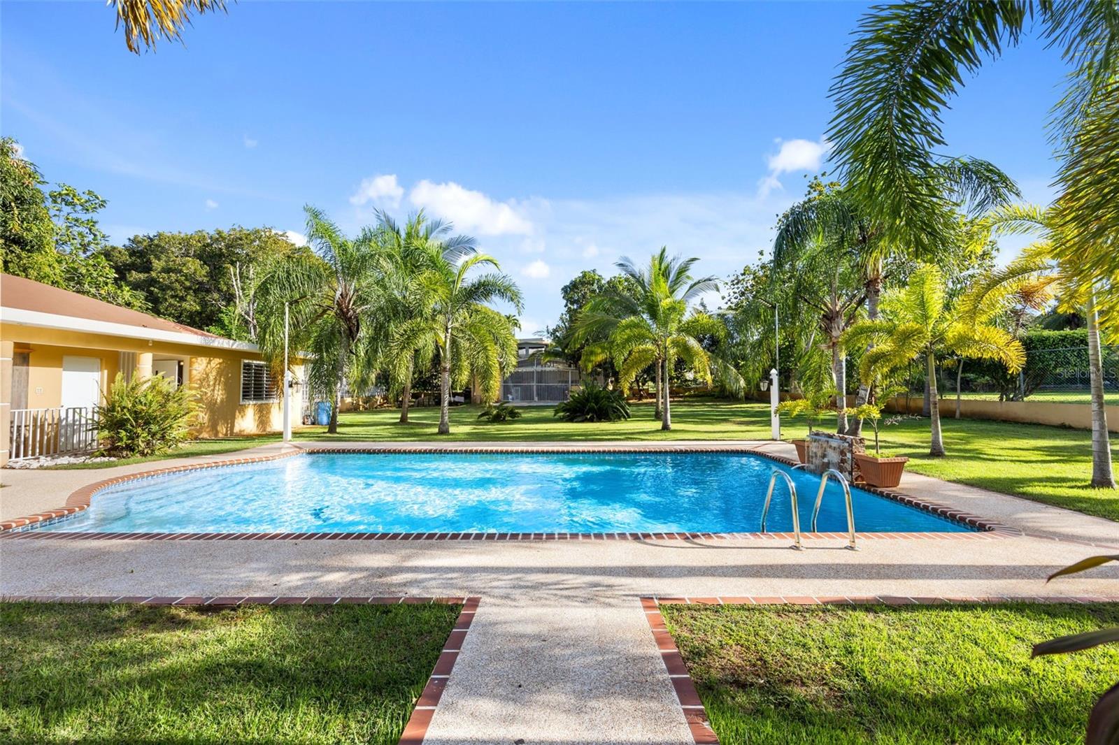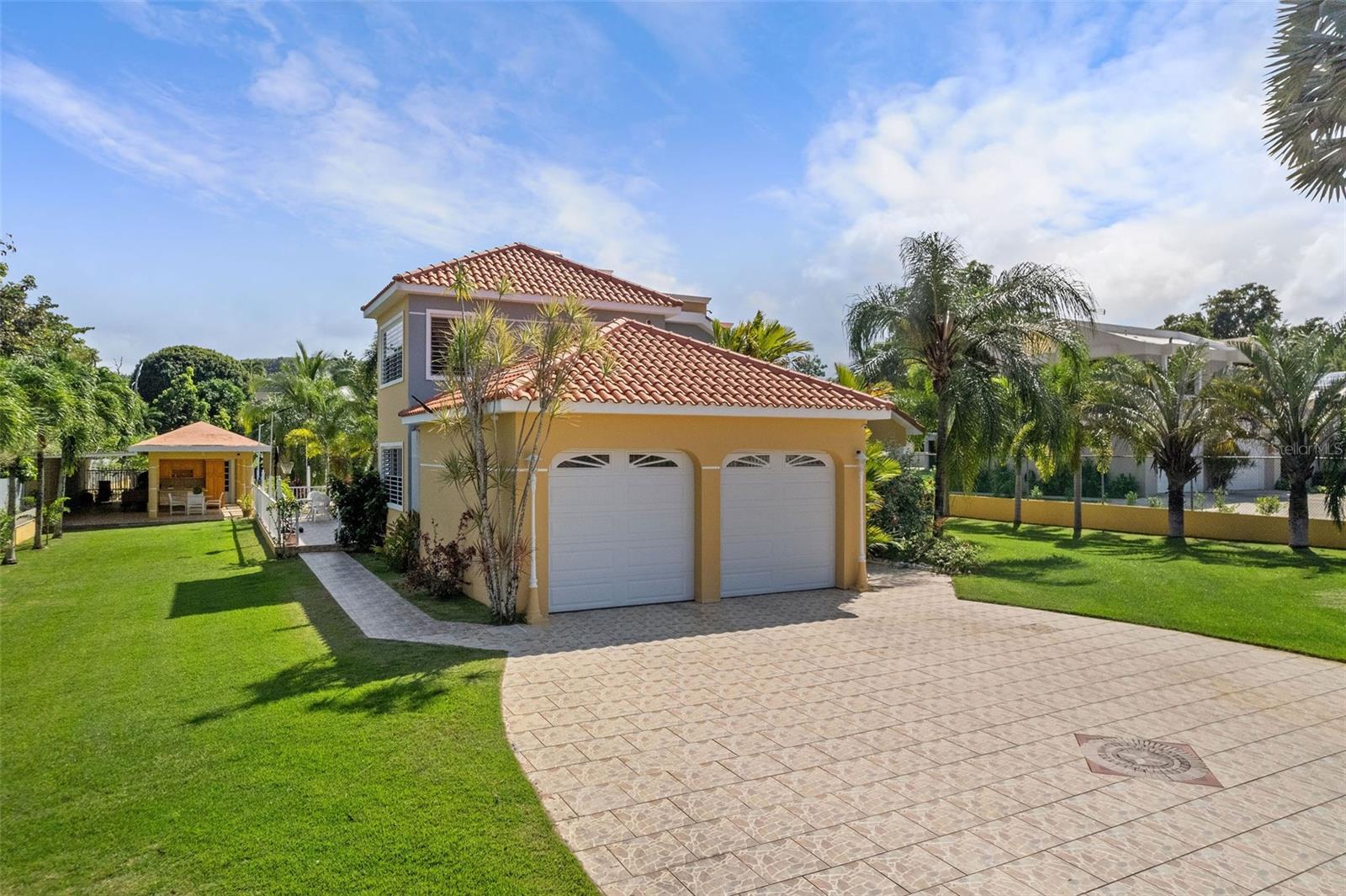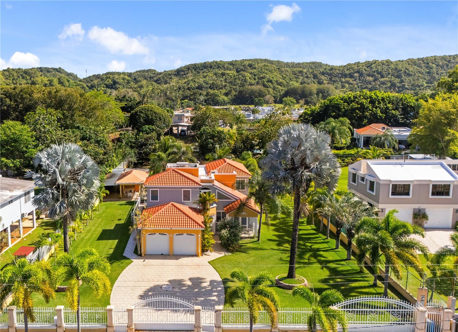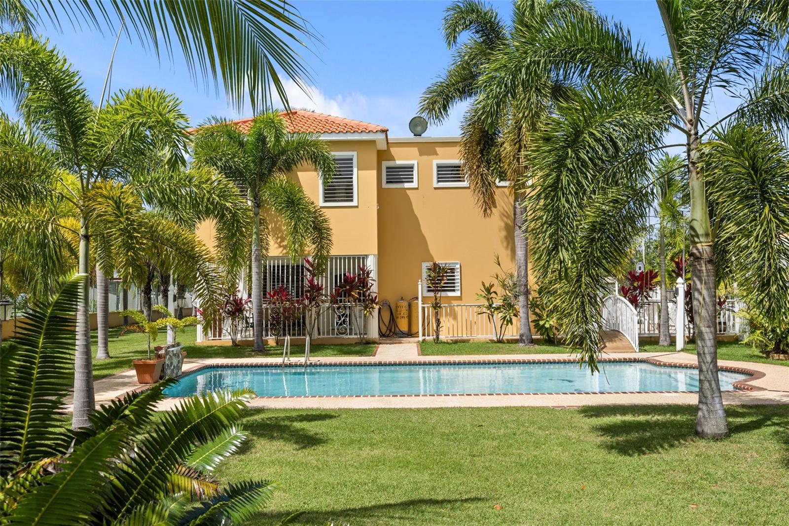 This one-of-a-kind abode spanning 5 bedrooms and 4.5 bathrooms in the most coveted neighborhood in Manati, on the north coast of the island, is a true gem. With more than 3,500 square feet of living space nestled in an extensive 2,655 square meters of flat land, this residence presents a rare acquisition opportunity. As you enter the main gates, you are welcomed with beautifully appointed landscapes and gardens that evoke serenity and tranquility. Be amazed by several outdoor and indoor terraces surrounded by palms and multiple fruit trees predominantly of mangos, papayas and avocados. Take a refreshing plunge in the pristine swimming pool and enjoy relaxing afternoons in the waterfall. This two-story home has a generous and comfortable layout. The main level features a jr. master suite with an en-suite bathroom. The kitchen is equipped with refined black granite countertops and backsplash accompanied with plenty of storage space in natural wood cabinetry. On the second level you will find two extensive bedrooms with plenty of closet space, one of the bedrooms feature an en-suite bathroom. The primary suite has plenty of light and space. It includes an en-suite primary bathroom with a jacuzzi and walk-in closet. There is an additional maid’s room conveniently featuring a full bathroom and kitchen. Hacienda Las Palmas is a boutique gated community surrounded by the largest homes in the area, the neighborhood is located a mere five-minute drive to one of the best beaches in Puerto Rico, Mar Chiquita and Los Tubos Beach, the latter being an exceptional beach for surfers. Close to supermarkets, pharmacies, hospitals and a seven-minute drive from the 22 highway, this well located home has everything that you need and more.