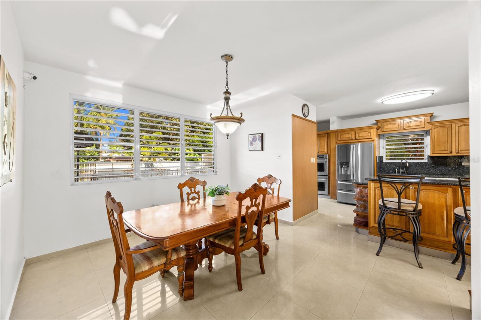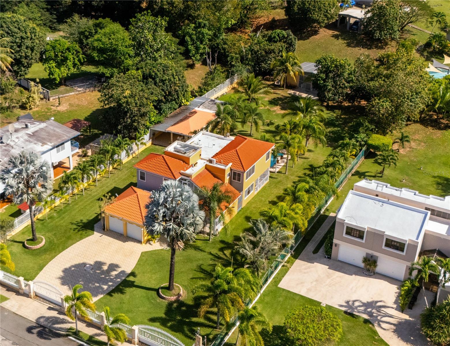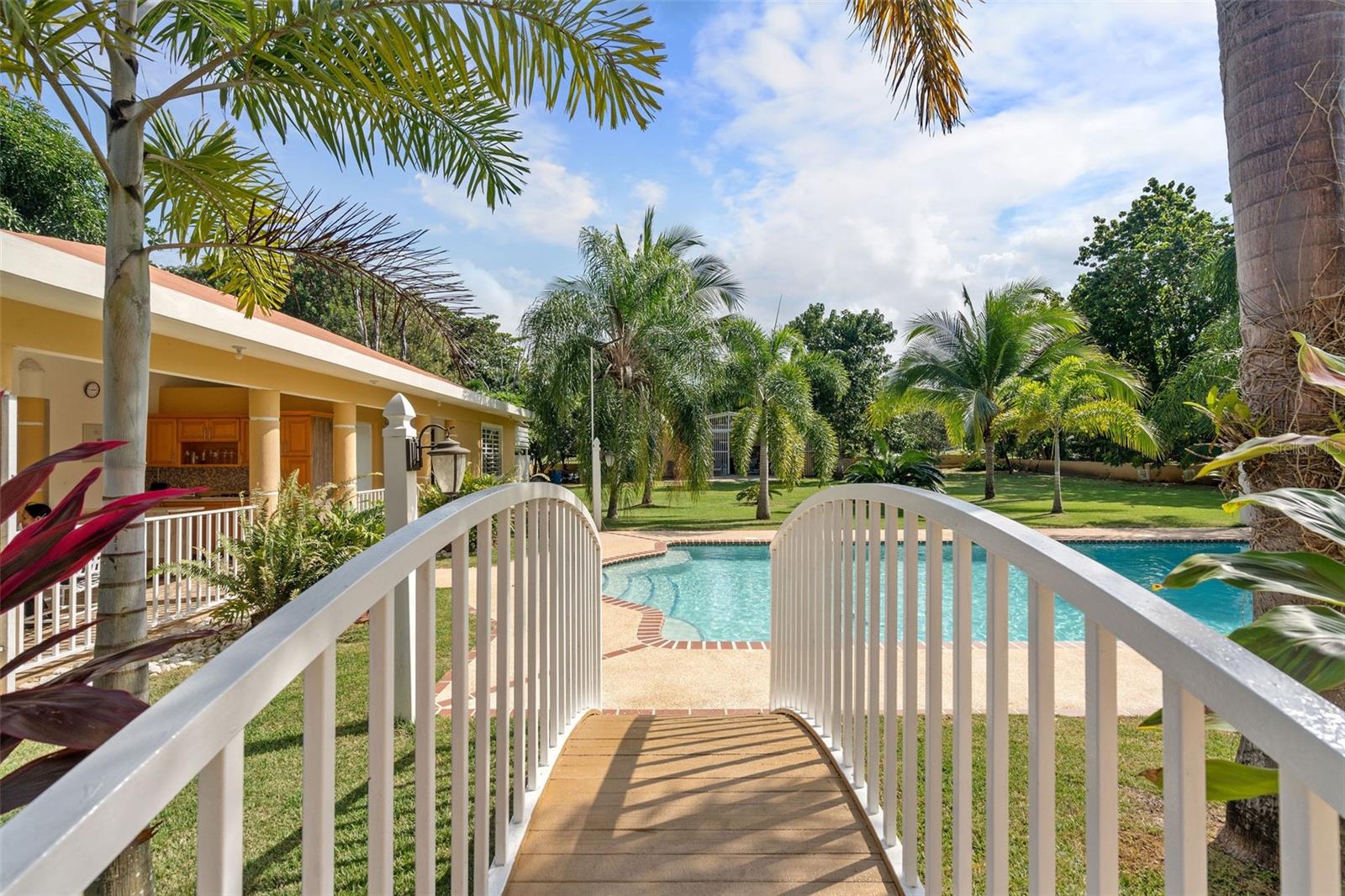 This one-of-a-kind abode spanning 5 bedrooms and 4.5 bathrooms in the most coveted neighborhood in Manati, on the north coast of the island, is a true gem. With more than 3,500 square feet of living space nestled in an extensive 2,655 square meters of flat land, this residence presents a rare acquisition opportunity. As you enter the main gates, you are welcomed with beautifully appointed landscapes and gardens that evoke serenity and tranquility. Be amazed by several outdoor and indoor terraces surrounded by palms and multiple fruit trees predominantly of mangos, papayas and avocados. Take a refreshing plunge in the pristine swimming pool and enjoy relaxing afternoons in the waterfall. This two-story home has a generous and comfortable layout. The main level features a jr. master suite with an en-suite bathroom. The kitchen is equipped with refined black granite countertops and backsplash accompanied with plenty of storage space in natural wood cabinetry. On the second level you will find two extensive bedrooms with plenty of closet space, one of the bedrooms feature an en-suite bathroom. The primary suite has plenty of light and space. It includes an en-suite primary bathroom with a jacuzzi and walk-in closet. There is an additional maid’s room conveniently featuring a full bathroom and kitchen. Hacienda Las Palmas is a boutique gated community surrounded by the largest homes in the area, the neighborhood is located a mere five-minute drive to one of the best beaches in Puerto Rico, Mar Chiquita and Los Tubos Beach, the latter being an exceptional beach for surfers. Close to supermarkets, pharmacies, hospitals and a seven-minute drive from the 22 highway, this well located home has everything that you need and more.