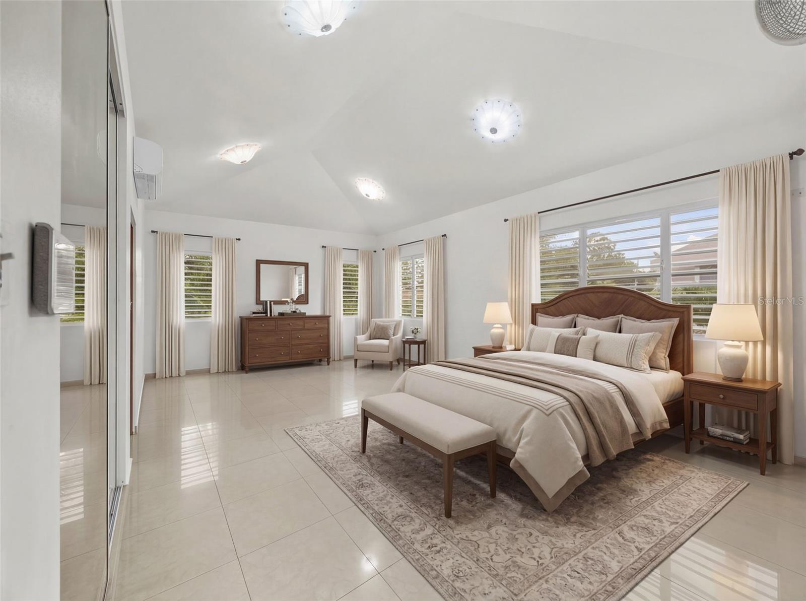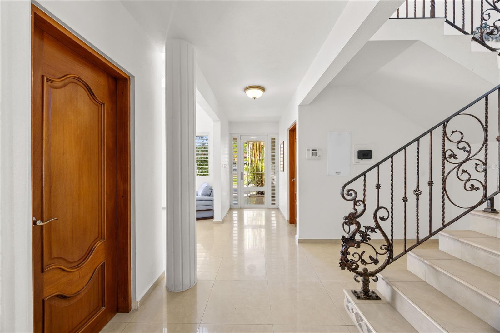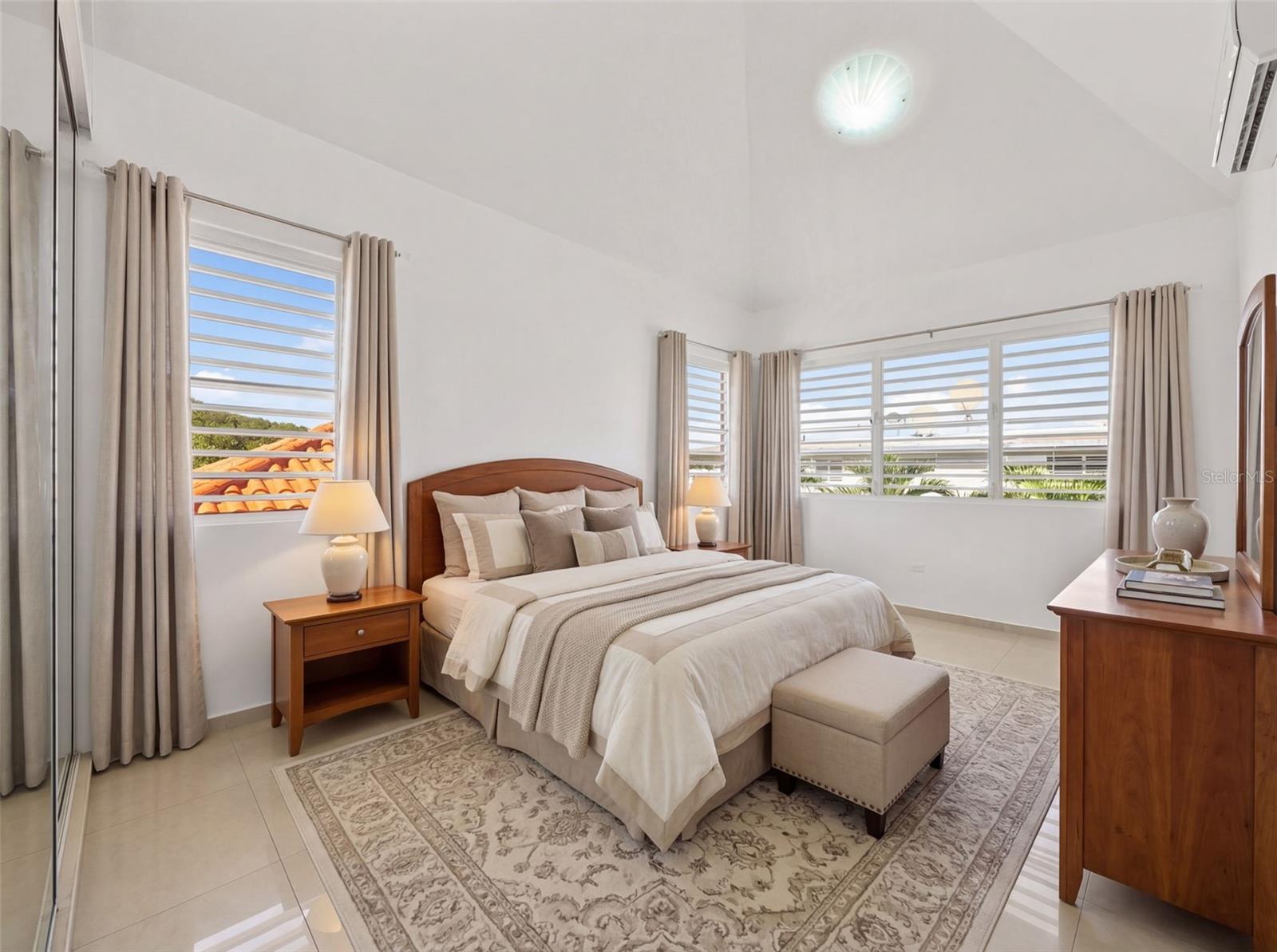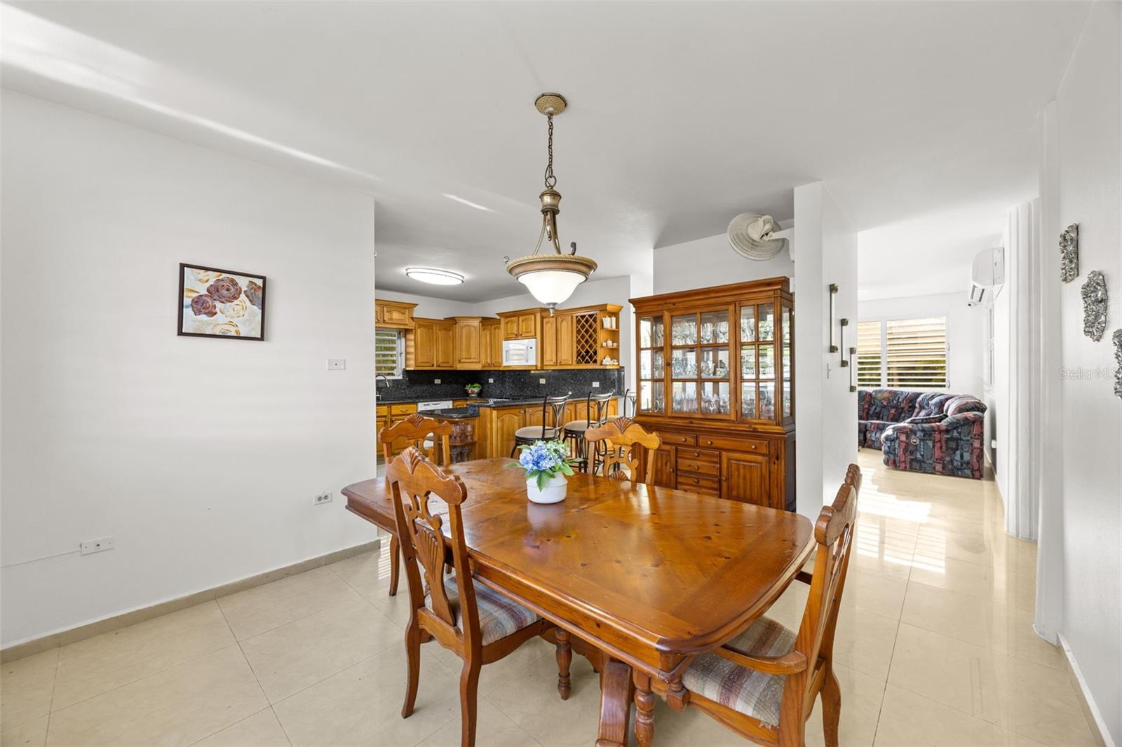 This one-of-a-kind abode spanning 5 bedrooms and 4.5 bathrooms in the most coveted neighborhood in Manati, on the north coast of the island, is a true gem. With more than 3,500 square feet of living space nestled in an extensive 2,655 square meters of flat land, this residence presents a rare acquisition opportunity. As you enter the main gates, you are welcomed with beautifully appointed landscapes and gardens that evoke serenity and tranquility. Be amazed by several outdoor and indoor terraces surrounded by palms and multiple fruit trees predominantly of mangos, papayas and avocados. Take a refreshing plunge in the pristine swimming pool and enjoy relaxing afternoons in the waterfall. This two-story home has a generous and comfortable layout. The main level features a jr. master suite with an en-suite bathroom. The kitchen is equipped with refined black granite countertops and backsplash accompanied with plenty of storage space in natural wood cabinetry. On the second level you will find two extensive bedrooms with plenty of closet space, one of the bedrooms feature an en-suite bathroom. The primary suite has plenty of light and space. It includes an en-suite primary bathroom with a jacuzzi and walk-in closet. There is an additional maid’s room conveniently featuring a full bathroom and kitchen. Hacienda Las Palmas is a boutique gated community surrounded by the largest homes in the area, the neighborhood is located a mere five-minute drive to one of the best beaches in Puerto Rico, Mar Chiquita and Los Tubos Beach, the latter being an exceptional beach for surfers. Close to supermarkets, pharmacies, hospitals and a seven-minute drive from the 22 highway, this well located home has everything that you need and more.
