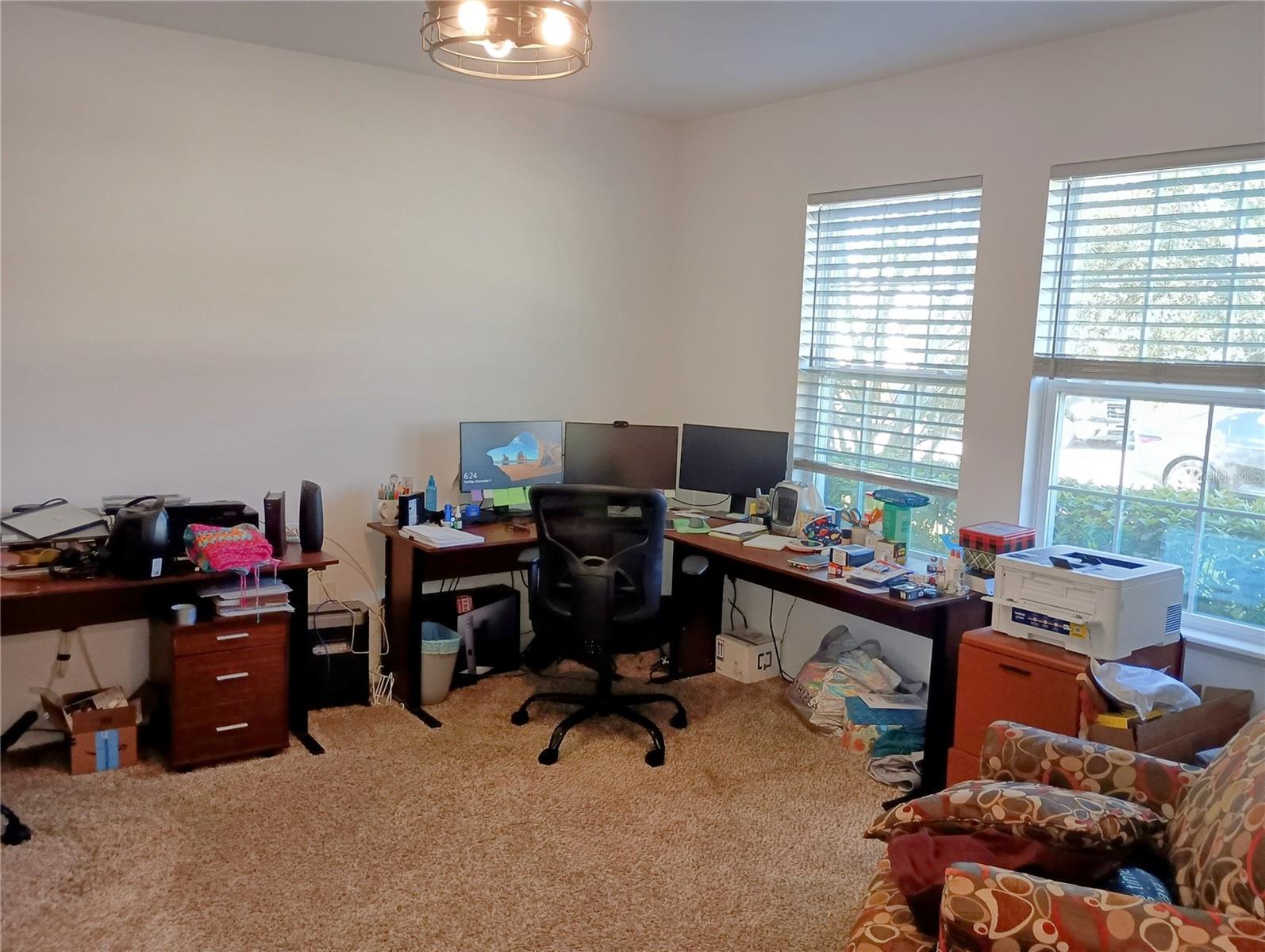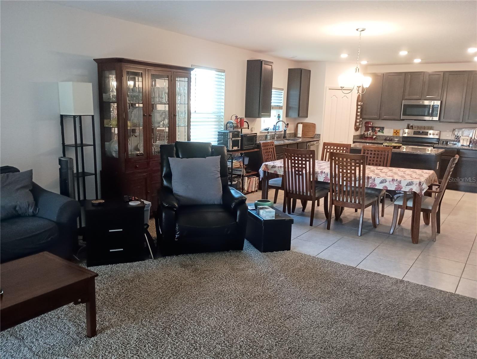 NEW PRICE IMPROVEMENT! Welcome to a 3-bedroom, 2-bath home with an office, media room and screened-in lanai. As soon as you enter, you will feel the openness of the floor plan. There’s an office in the front room with an abundance of natural light from the oversized window. The kitchen has an island, stainless steel appliances, granite countertops and tall, spacious walnut cabinets for all of your cooking needs. It all opens to a dining area and great room with plenty of room for your entire family. The screened-in lanai overlooks the completely fenced back yard for your relaxation. The main bedroom features a tray ceiling and walk-in closet and the bathroom has a large soaking tub, separate shower and dual sinks. Open the barn door to an additional enclave with a media room, two more bedrooms and a bathroom with a shower/tub combo. The house also boasts a 3-car garage with beautiful accents outside. All of this and close to Clermont with state-of-the-art medical facilities, shopping, restaurants, weekly farmer’s market and plenty of special events throughout the year. It is only a short drive to the attractions and airport in the Orlando area. Make your appointment today to see this home with an incredibly unique floor plan.