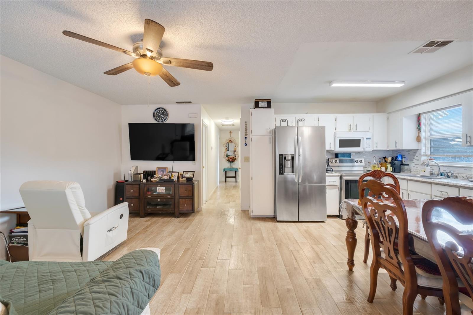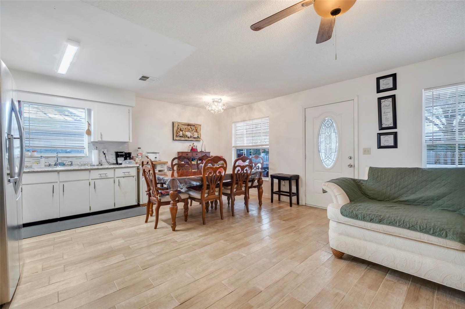 Charming 3-bedroom, 1.5 bath remodeled home located in a well-established neighborhood with No HOA! The open floor plan has been redesigned opening up the kitchen area to the living room. Home Improvements that were done was the Kitchen cabinets relocation, countertops and Backsplash, Newer appliances, All new flooring was installed through out home and Main Bathroom shower, toilet and vanity have all been replaced. Mechanicals have been upgraded as well that consist of a New AC (2023), WH(2022), Water Softener System (2023) and Gutters (2023) were installed along with new Interior / Exterior paint (2022) and Roof (2020). This home is Situated on a fully fenced in .32 acre lot that offers a large spacious Front and backyard, perfect for outdoor entertaining, gardening, or creating your own private retreat. Located in the heart of Mascotte, this home also provides easy access to Groveland, Clermont and the Florida Turnpike, making commutes and travel convenient.