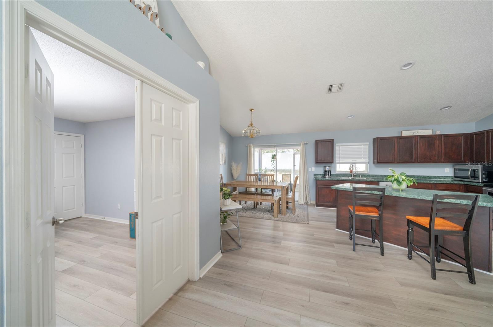 Located in the Heart of Lake County, the 100 year old City of Mascotte Florida awaits. With a population of just over 6000 people, Mascotte is a city just West of Orlando and Clermont, East of Sumter County, South of Leesburg and North of Disney. It is there you will find this 3 bedroom 2 bath home where the direction of your journey is always worth the travel, but never to far to travel. Located in the neighborhood of The Cardinal Pines Estates, this beautifully maintained 3 bedroom 2 bath home, has high ceilings and a flex room with not one, but two doors to enter and exit from. The rear door of the Flex Room is convenient for guests as it leads into the Jack n Jill bathroom, which is accessible from both bedroom one and bedroom two. In this home, all three bedrooms have plenty of space to satisfy that furniture that is a "MUST HAVE" when moving in the new home! The primary bedroom is on the opposite side of the great room and kitchen area with a walk in closet and private bathroom, with the garden tub and walk in shower. The laminate flooring has been replaced in all rooms except bedrooms, where there is carpeting. THIS HOME HAS A NEWER ROOF and NEWER WATER HEATER (with in the last 6-7 years) < NEW A/C 2021<PAINT 2022< DISHWASHER AND WASHER /DRYER 2023 and VINYL FENCING 2024. The Open FLOOR PLAN is great for all sizes of families and plenty large enough for entertaining a few or a whole house of friends. The kitchen is loaded with cabinets, stainless steel appliances and plenty of space for your favorite gathering table! Whether you are just starting your Home Ownership Plan or thinking about an addition to the family, this home fits perfectly for it's size, location, updated conveniences, fenced in yard and BEST OF ALL, the pricing. We Can Show It and You can Own It!! Call us today to schedule your private showing!