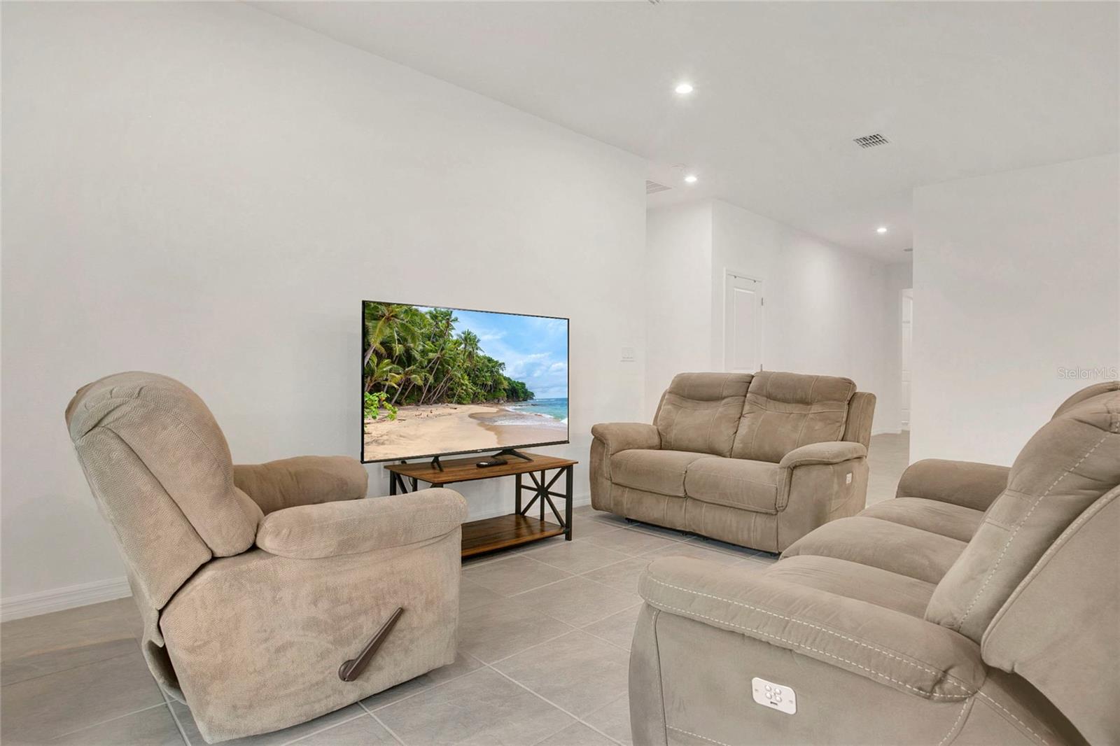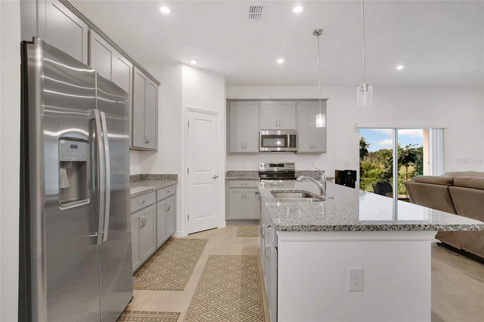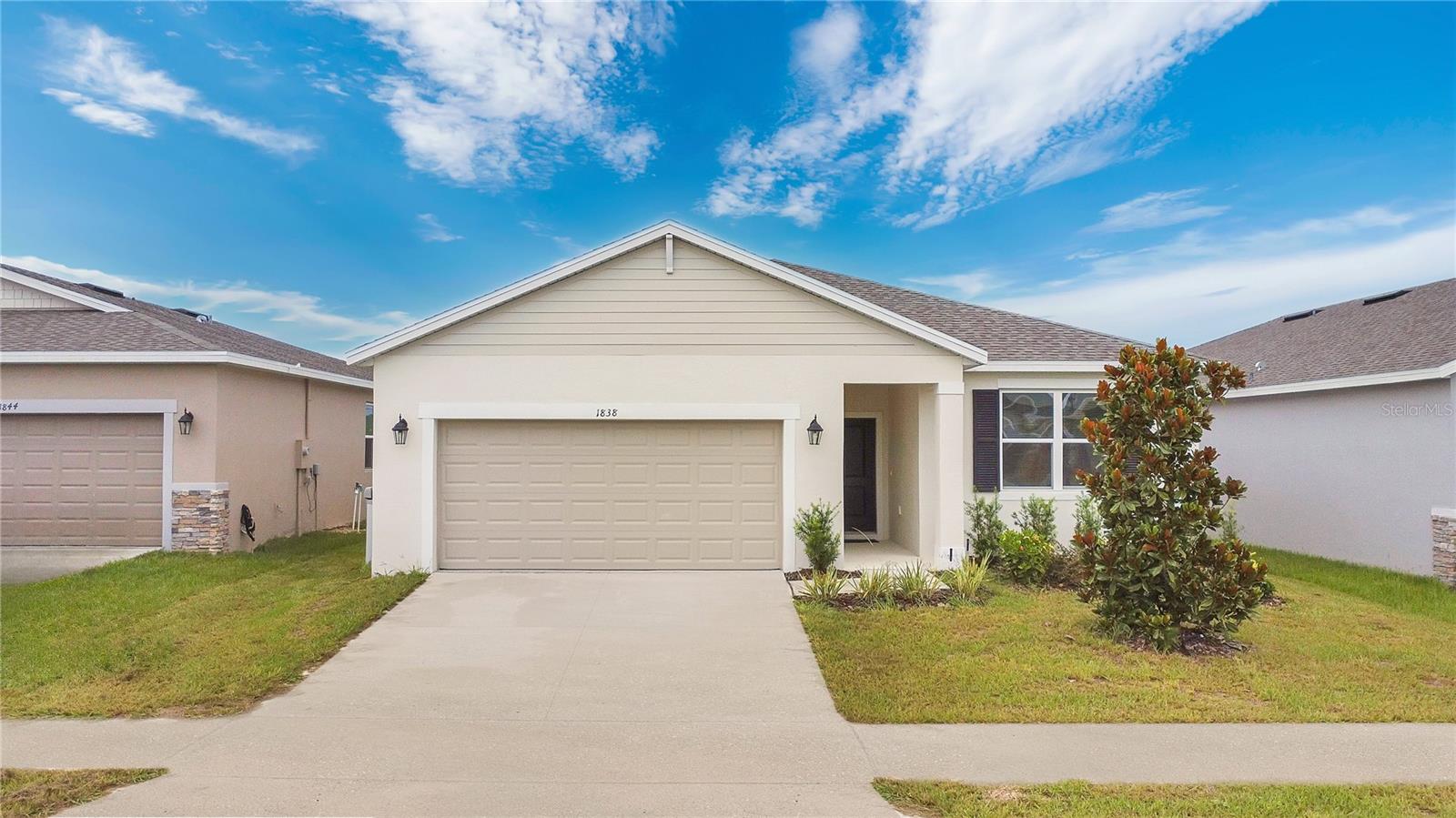Own this Home with no money down. Welcome to the Seaton model at Sunset Lakes Estates, a bright, one-story, 4-bed, 3-bath home offering 2,001?sq?ft of thoughtfully designed living space. Freshly built in 2024 by Stanley Martin Homes, this residence is ideally situated just off SR-50 and SR-17, placing you within a short drive of downtown Clermont, historic Mount Dora, and just 45 minutes from Orlando’s premier attractions — Disney World, Universal Studios, and more. Step inside to discover an open-concept layout flooded with natural light. The eat-in kitchen, featuring a pantry, adjacent dining area, and ample counters/appliances, that flows into the spacious great room which is perfect for everyday family life and entertaining. The sliding doors in the family room extend your living outdoors to a large covered lanai overlooking a small pond. The split floor plan provides privacy and comfort with the secluded primary suite impresses with dual sinks, walk-in closet, and linen storage, and three additional bedrooms on the opposite side of the home with a well-appointed guest bath, and a convenient laundry room. Sunset Lakes Estates is a welcoming new-home neighborhood offering sidewalks, street lighting, and easy freeway access. Homeowners enjoy maintenance-free yards and a close proximity to schools. If you're searching for a charming, low-maintenance home with modern finishes and a great location—look no further.