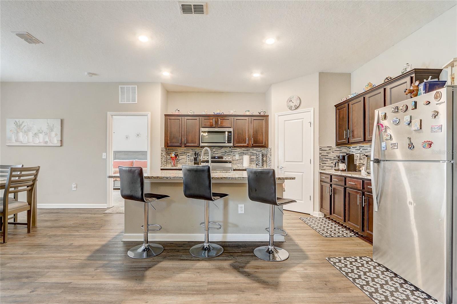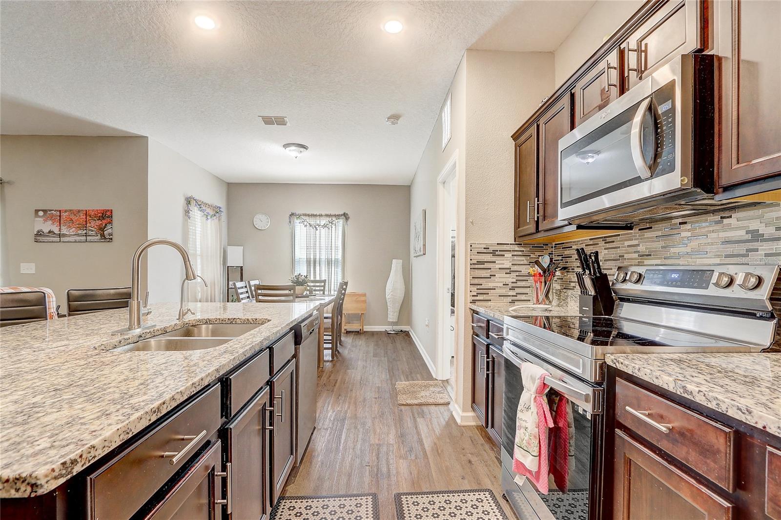 Welcome to this inviting 3-bedroom, 2-bath home in the GATED Shearwater Estates community. With 1,711 sq. ft. of ample space, it features an open floor plan, upgraded luxury vinyl flooring, and a spacious living and dining area. The kitchen offers granite countertops, solid wood cabinets, a large island, and a generous walk-in pantry. The split-bedroom layout provides privacy, while the screened and extended lanai offers extra room to relax or entertain. Energy-efficient design, a roomy laundry area, FULLY FENCED backyard, and 2-car garage add to the comfort. Enjoy a friendly neighborhood setting just minutes from major roads and local conveniences. Come see this well-cared-for home in person. It might be the perfect fit! Mortgage savings may be available for buyers of this listing.