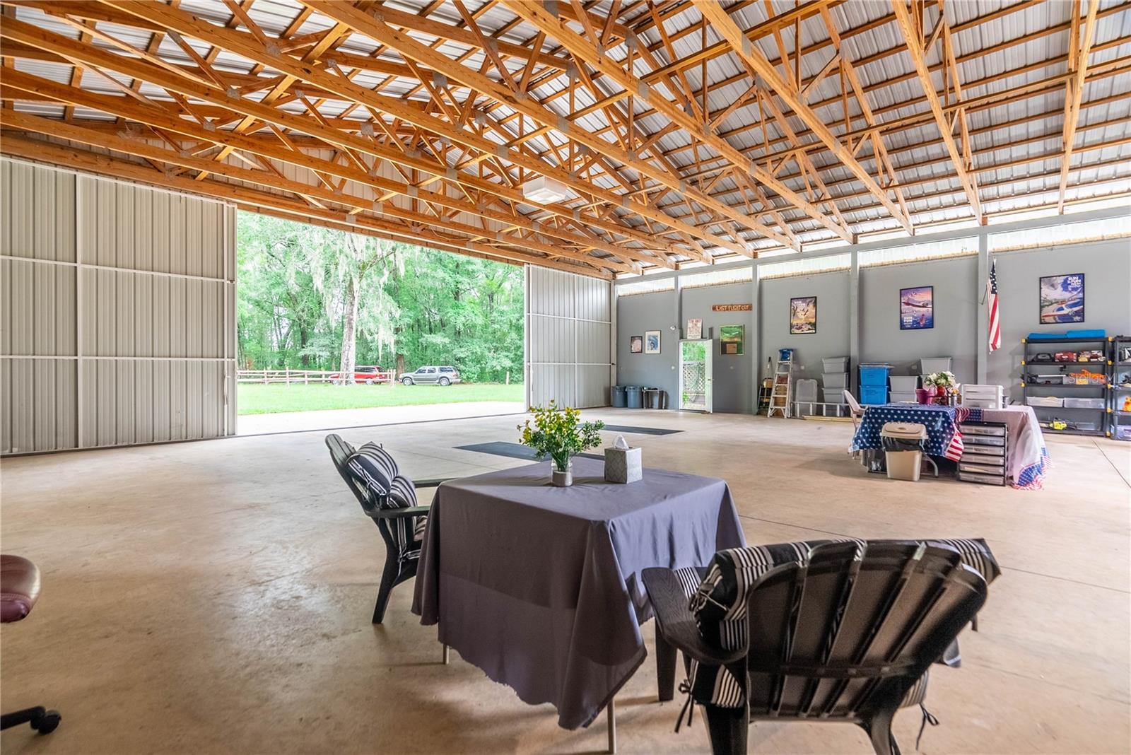 Great price reduction. HANGAR HOME on 10.4 Acres is believed to be the biggest lot in the neighborhood. The oversized hangar has room for 2 planes and an RV. Flying Oaks is a pristine aviation community in the country with lots of greenery; Most lots are one to four acres with hangars and homes. Runway18/36 is a lighted turf runway 3375' long by 50' wide. The runway is reasonably close to the home. FL10 Little River Airport is a private airport for its residents. Flying Oaks, Flying Little River, Aero Place Estates and Little River Acres are all subdivisions of FLR homeowners Association. This airpark in Northern Central Florida is a fantastic place to keep your prized aircraft. Imagine hopping on your plane flying East before dawn while watching the Sunrise on the Atlantic Ocean. Rather a sunset person? Then fly West to watch the sunset on the Gulf of Mexico. Love short trips? Fly over and land on Dog Island for a picnic. Jacksonville, Tallahassee, Gainesville, or Valdosta Georgia are also a short jaunt by plane. There are endless possibilities for your fun flight itinerary in sunny FL so let’s get back to Hangar talk. The hangar is 49'WX56'L and is approximately 2,744 sq ft, North hangar doors are 14' height and slide sideways to open out to 49ft. Inside hangar has many electrical outlets,sink,refrigerator,direct access to the bathroom & an area with a clean out & hook up for RV. The South side has a sliding hangar door 14ft height. On the East side of the hangar is an RV carport w/ cleanout & electric hookup. The apartment on the Westside of the hangar has1 bedroom, a living room that has a closet so it could serve as a 2 bedroom, dining room, kitchen, & bathroom. The main rooms have built in speakers for playing ambient music. The Living room is quite versatile and could be used as an office, home theater, flight simulation and gaming room, fitness area, or guest suite. The kitchen and dining area is quite cozy. Inside the bathroom is an indoor air-conditioned laundry room. The 12'W by 56'L screened porch overlooks the vast foliage, magnificent green trees, and the small creek that runs through the West side of the property. There is a hook up at the South end of the porch for a hot tub. The hangar sits at a much higher elevation than the creek. The property line goes beyond the other side of the creek. Most of the land on this property is very private, in fact the street that leads you to this property dead ends just before the creek. Nature abounds in the wooded areas. It is common to see wild turkey, deer, cardinals, pileated woodpeckers, and hawks. On the Southside of the property behind the hangar is another metal shed about 720 square feet with electric and lighting. The water heater is hooked up to solar panels. Cable and internet services are available. The property is on a well that is about 140ft deep. The Sellers hangar is in Flood Zone X. 70 pictures have been uploaded and the video link provides aerial and interior views of the hangar, home, and runway. There is plenty of land to build a main house and then the hangar apartment could be converted into a pilot’s lounge. This property offers the benefits of acreage and privacy in a warm climate surrounded by national and state parks where you can fish, boat, hike, canoe, swim, and dive twelve months out of the year. Are you yearning for Hangar Talk and more time to fly your aircraft? Time to Buy More time to Fly!